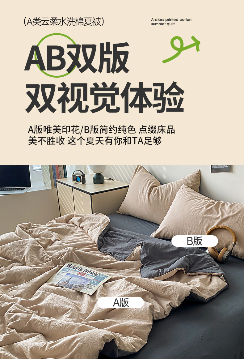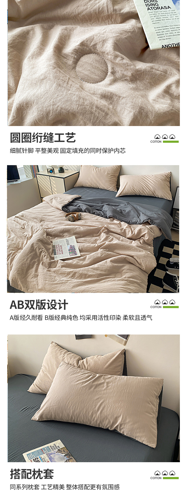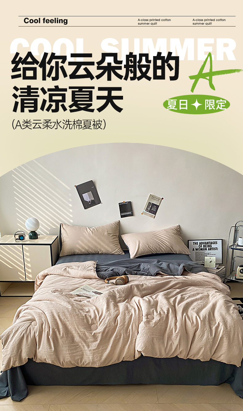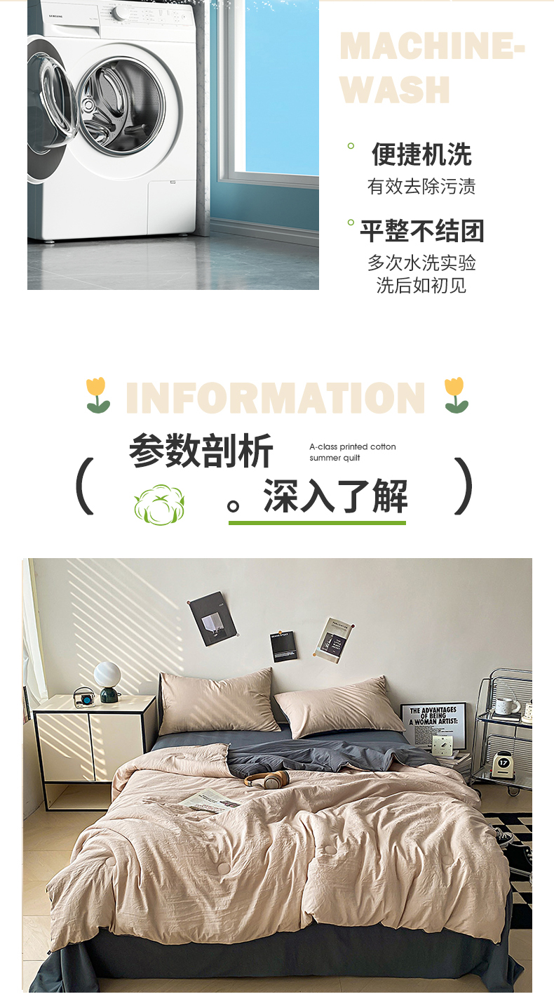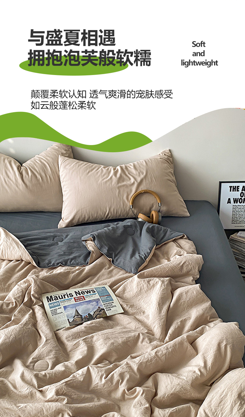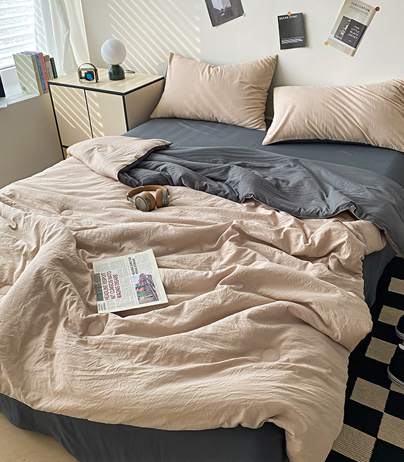 益多眠 2026新款水洗棉夏被四件套 奶茶+深灰
