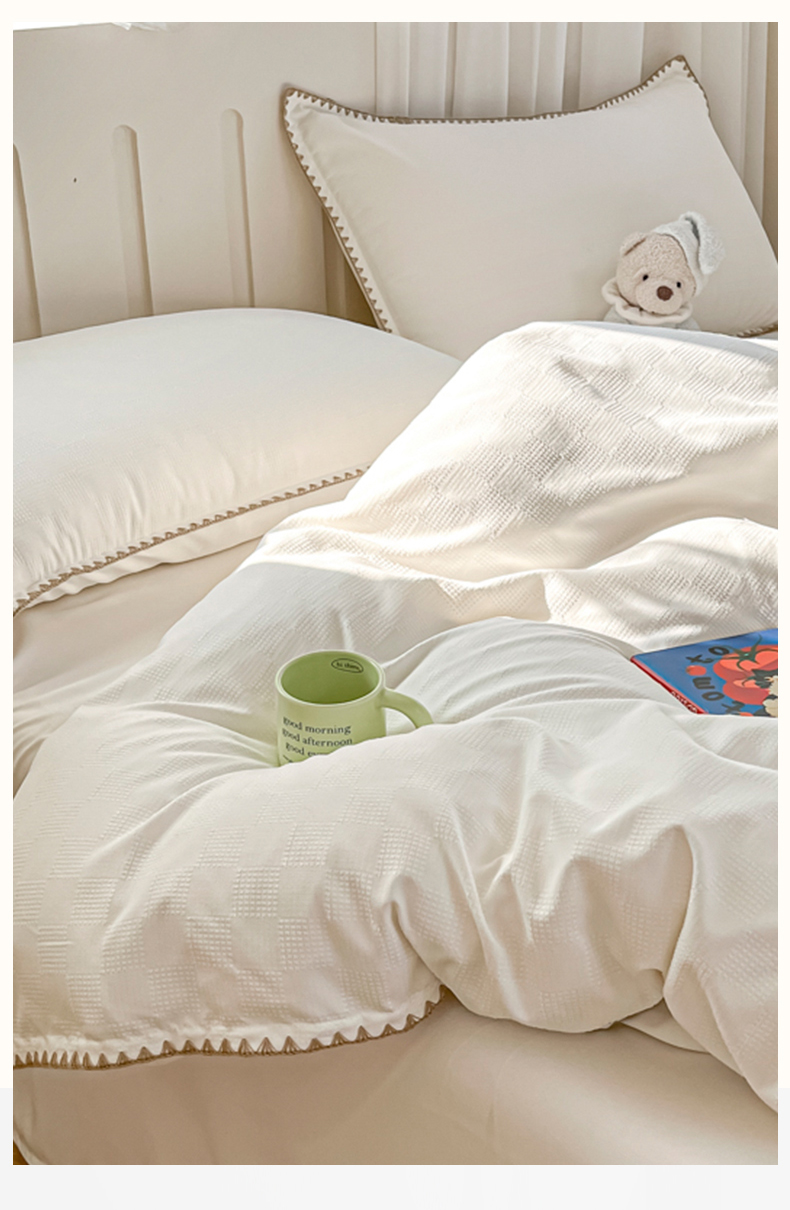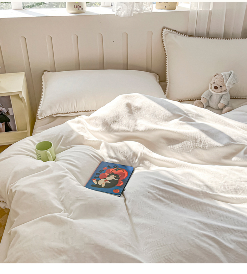 当前位置: 91家纺网 > 商品网购 > 床品套件 > 四件套 > 其它四件套 > 豪美鑫 2025新款亲肤棉华夫格四件套 华夫格-月光白