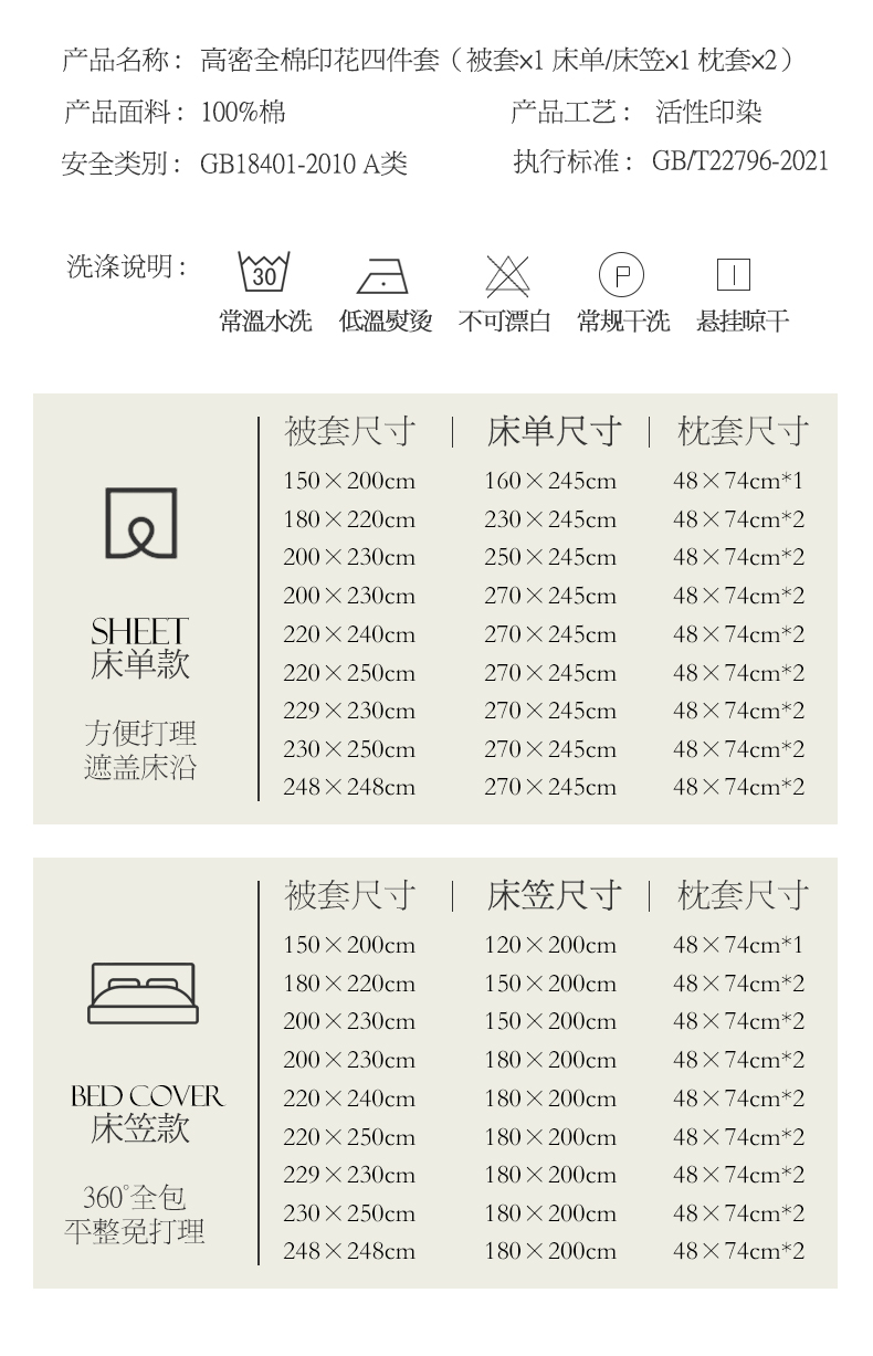 被套200*230床笠150*200枕套一对 | ¥98.00 |