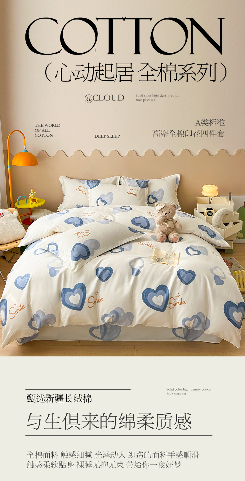 当前位置: 91家纺网 > 商品网购 > 床品套件 > 四件套 > 其它四件套 > 名优家纺 2025新款A类全棉纯棉韩版印花四件套 小欣喜
