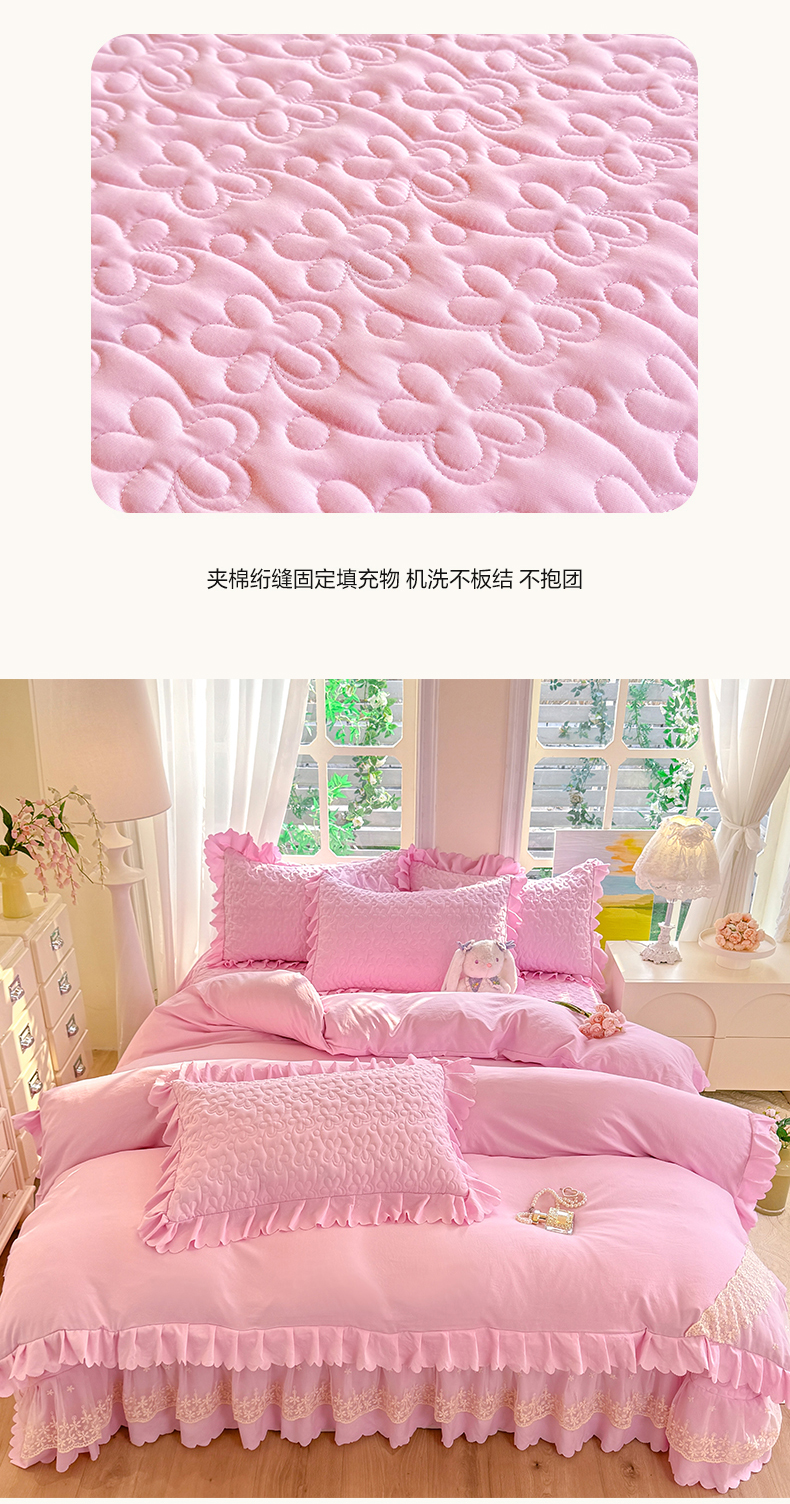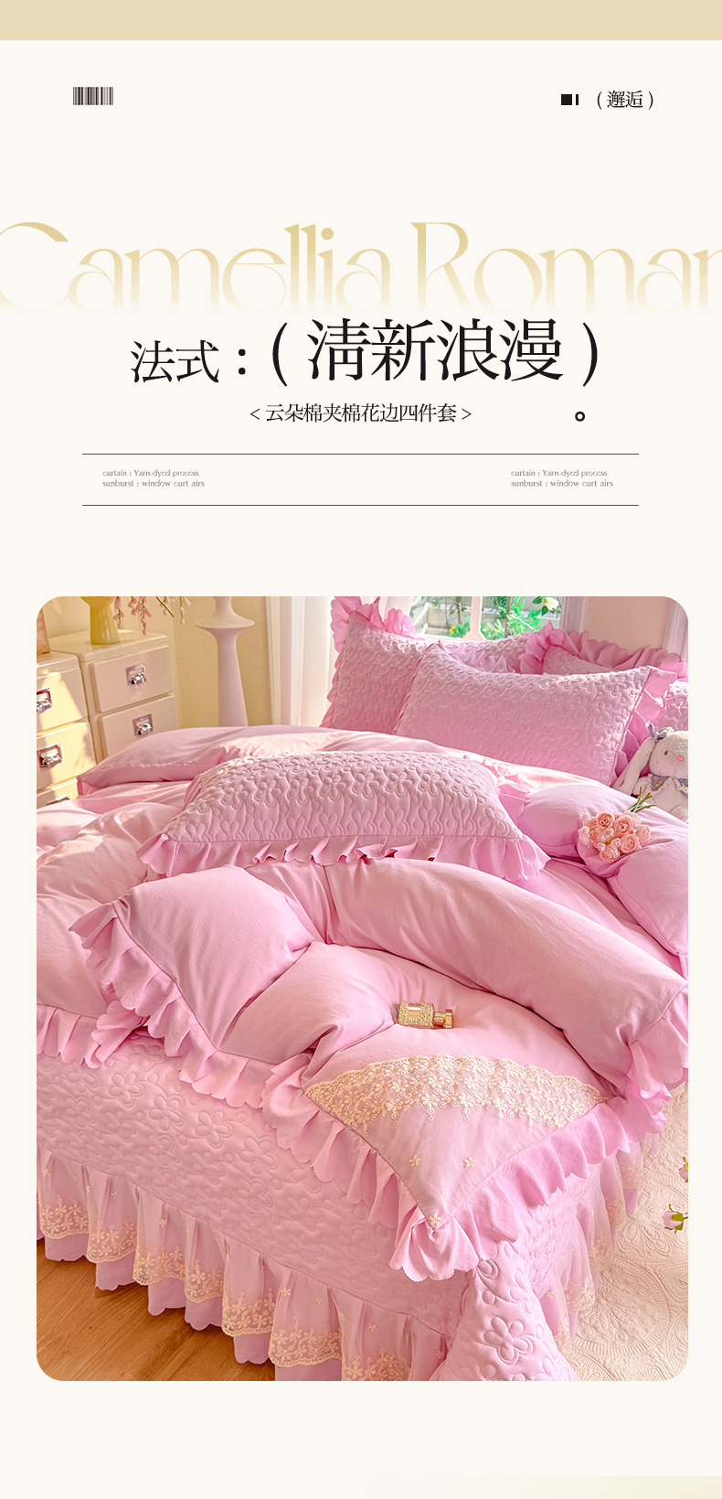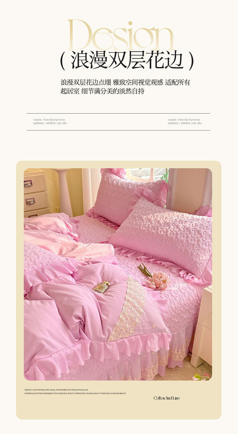 当前位置: 91家纺网 > 商品网购 > 床品套件 > 四件套 > 其它四件套 > 九诺家纺 2025新款花夕云朵棉蕾丝花边床盖四件套 花夕-樱花粉