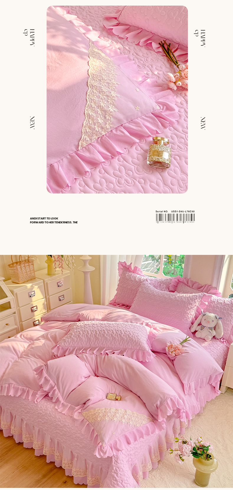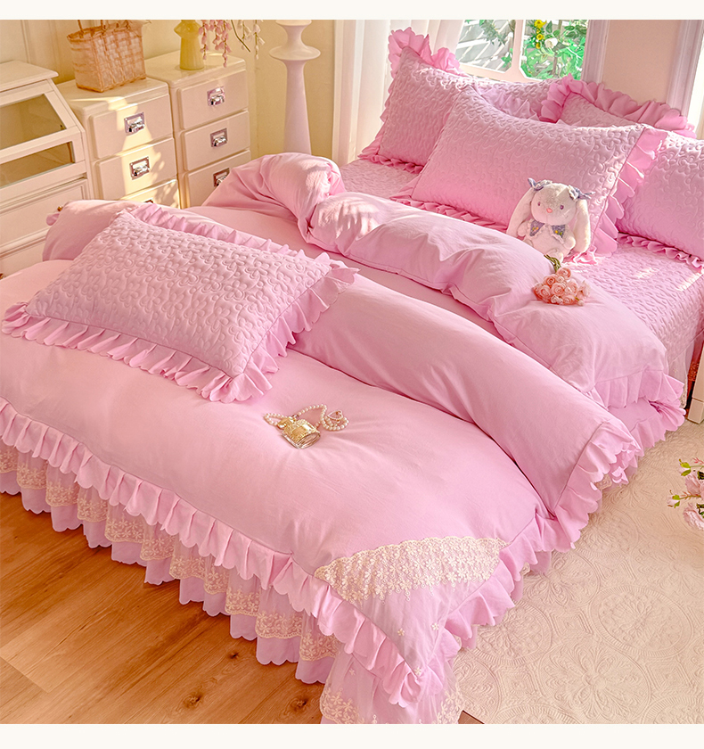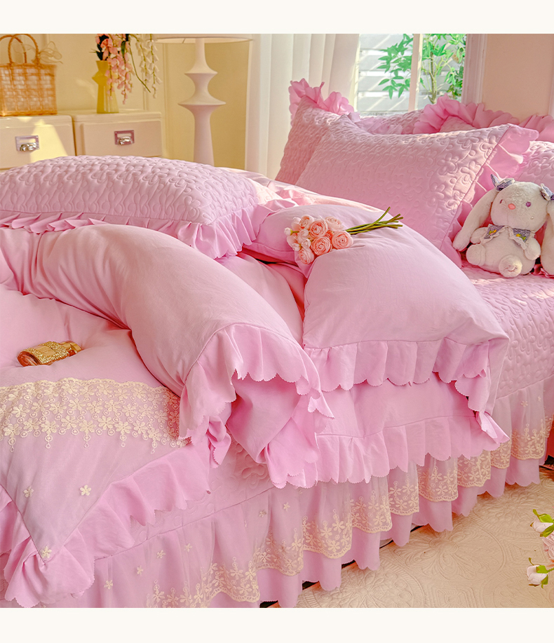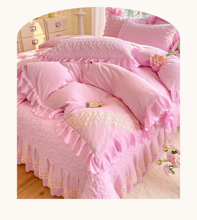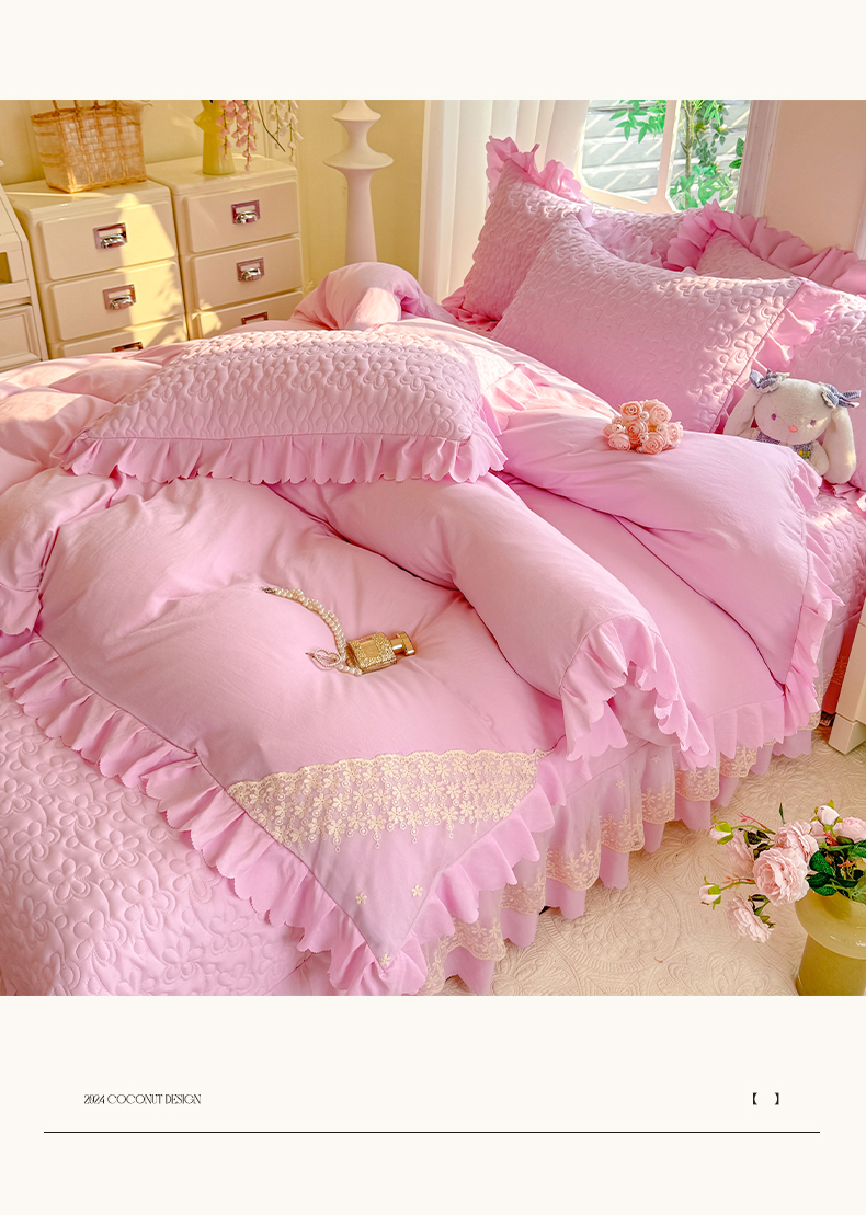 当前位置: 91家纺网 > 商品网购 > 床品套件 > 四件套 > 其它四件套 > 九诺家纺 2025新款花夕云朵棉蕾丝花边床盖四件套 花夕-樱花粉