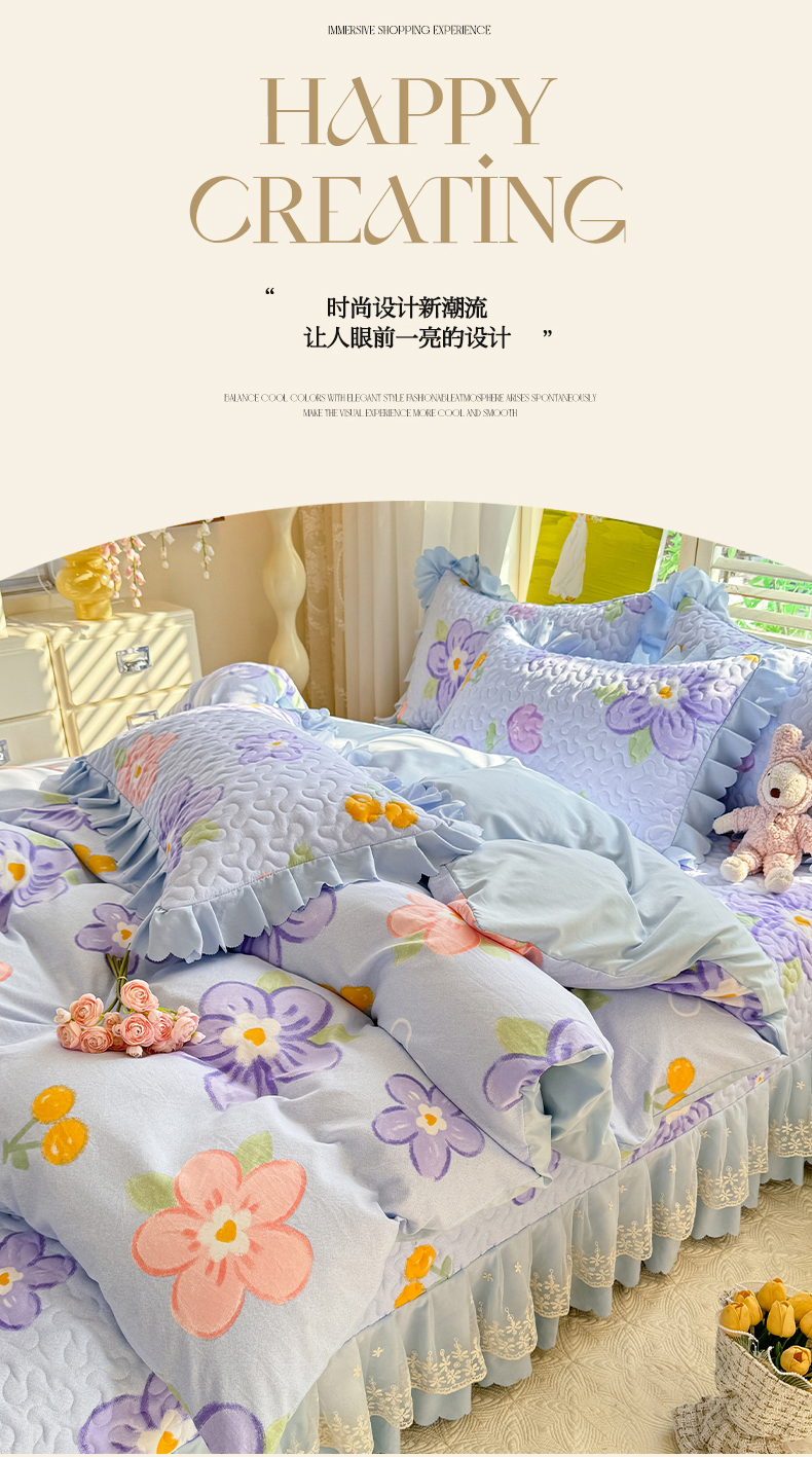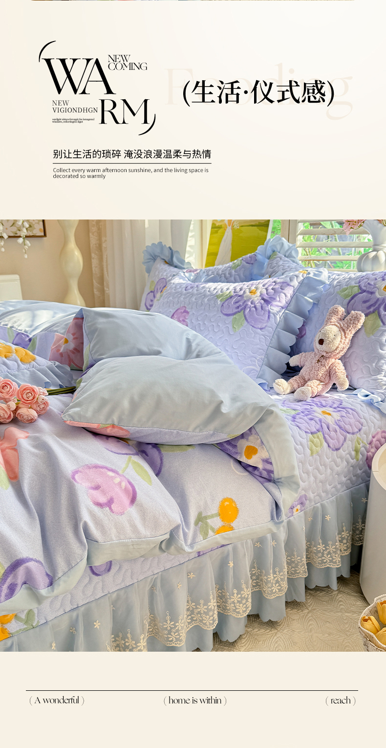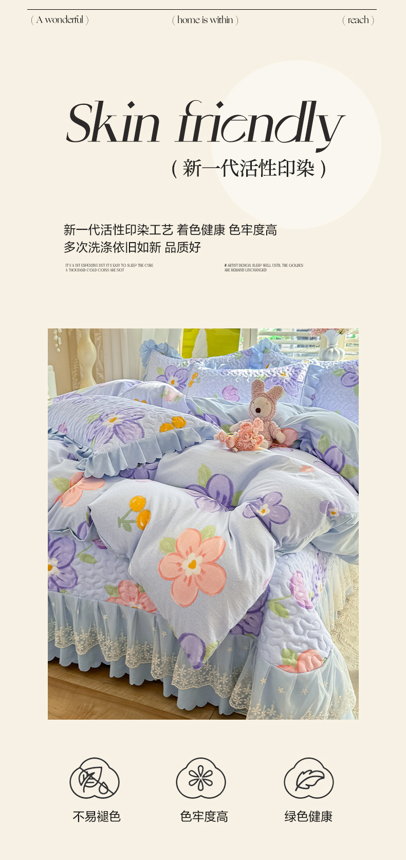 当前位置: 91家纺网 > 商品网购 > 床品套件 > 四件套 > 其它四件套 > 九诺家纺 2025新款韩式云朵棉印花床盖四件套 繁华