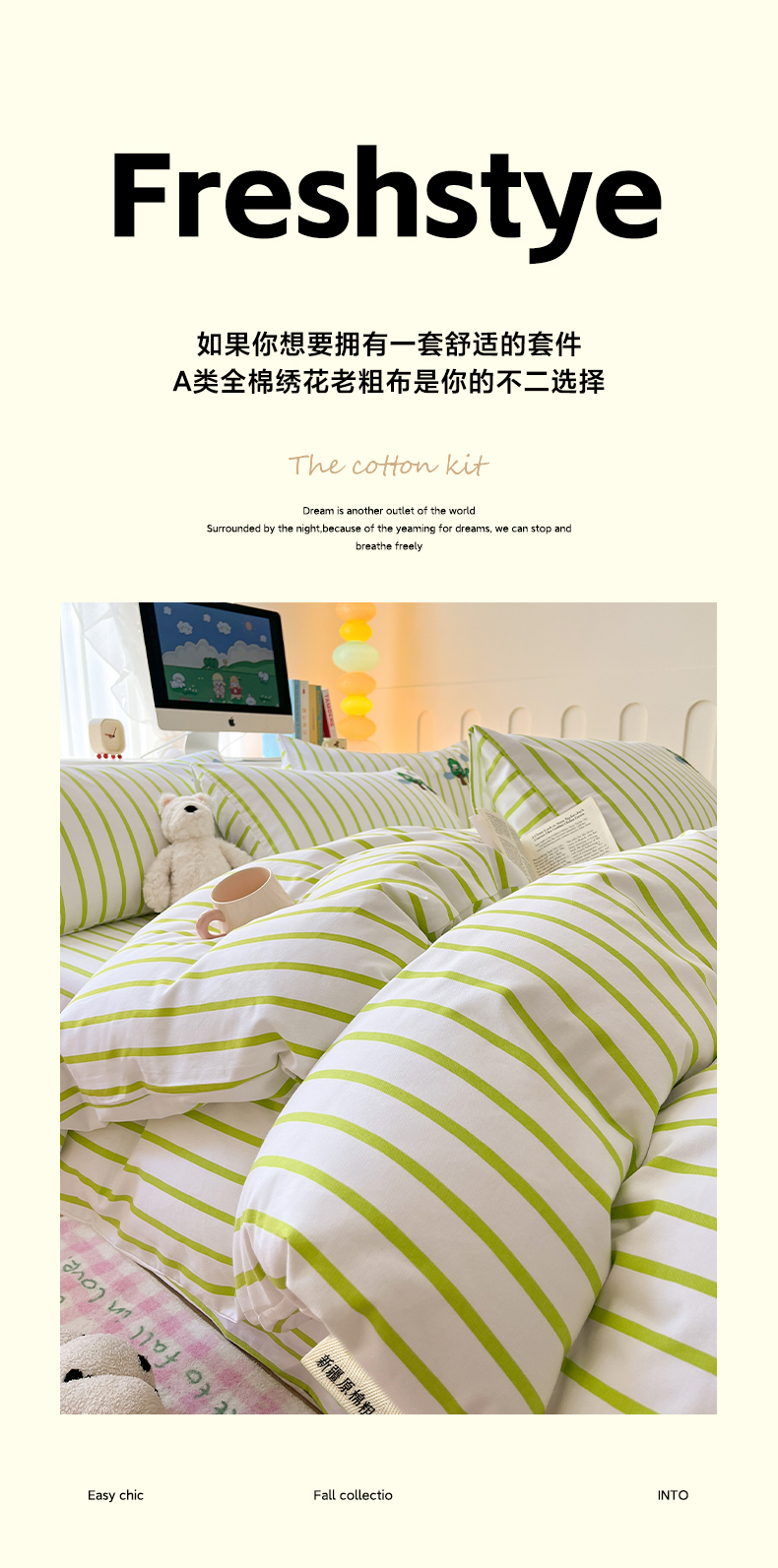 当前位置: 91家纺网 > 商品网购 > 床品套件 > 四件套 > 全棉普通四件套 > 雅居纺家纺 2025春夏新款全棉纯棉绣花老粗布四件套 发财树
