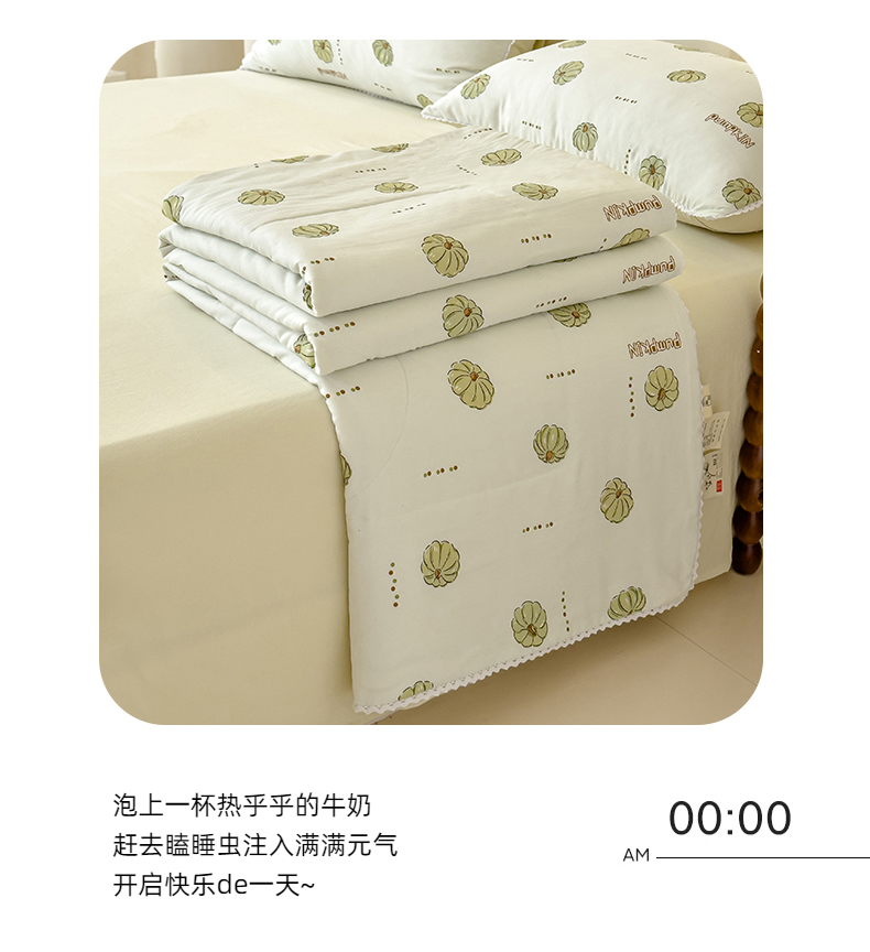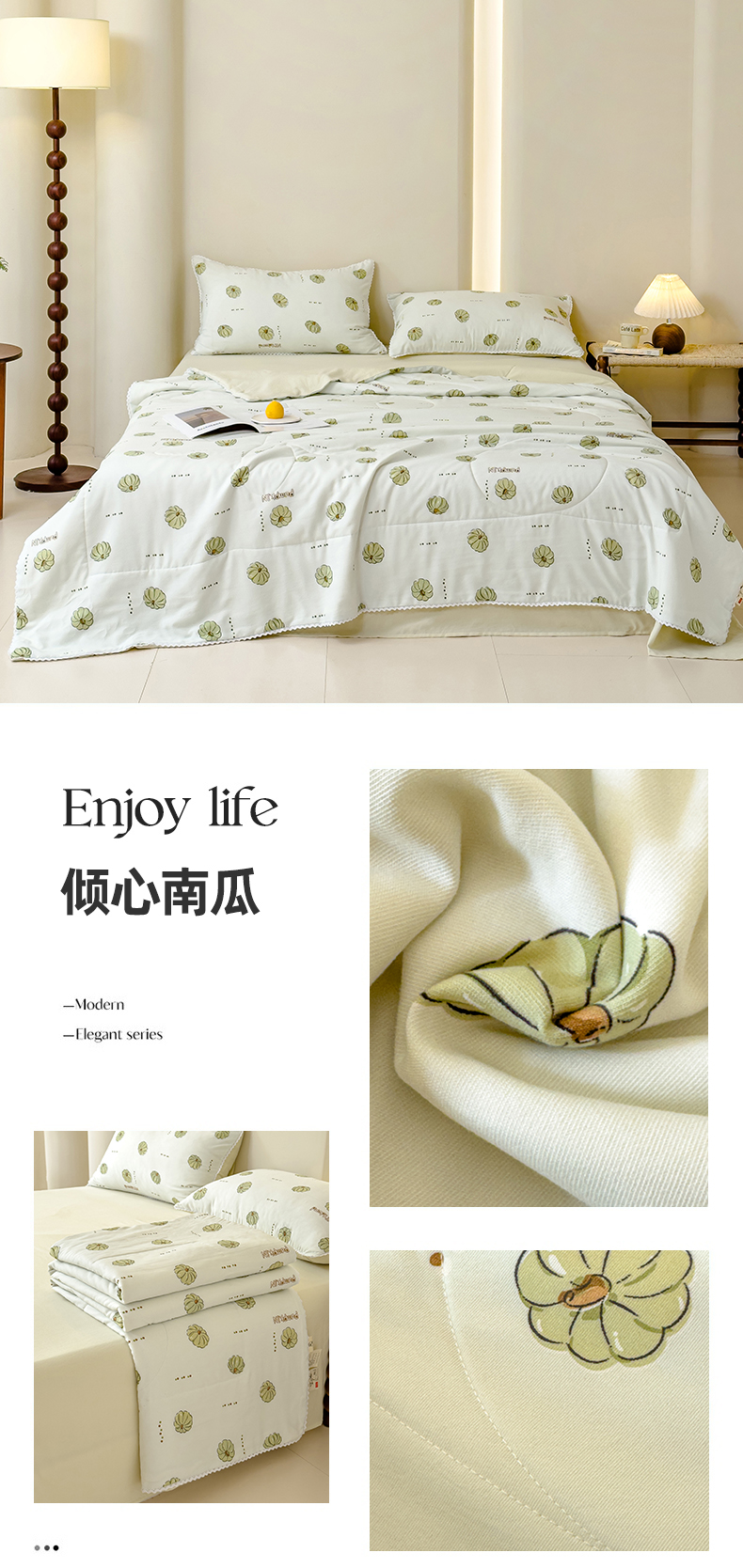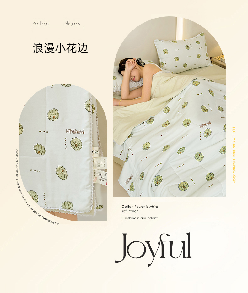 当前位置: 91家纺网 > 商品网购 > 被子 > 夏被 > 2025新款针织棉双层纱小花边棉花夏凉被 倾心南瓜