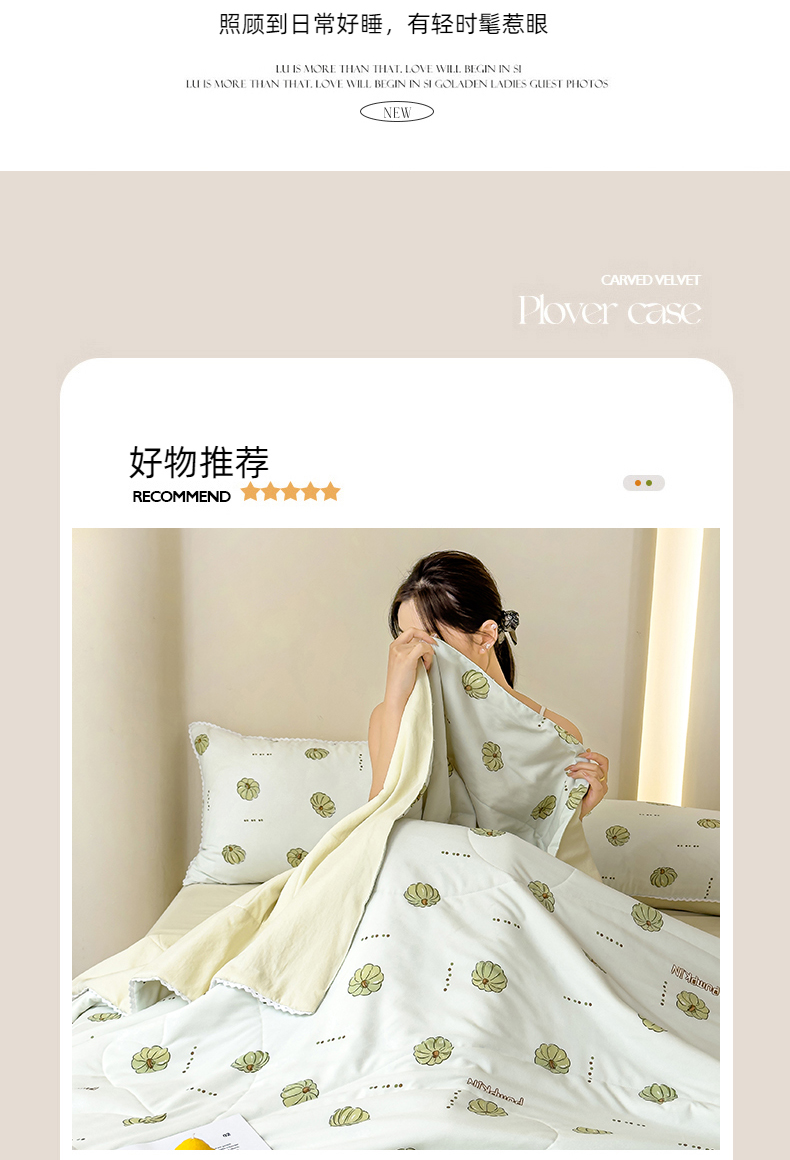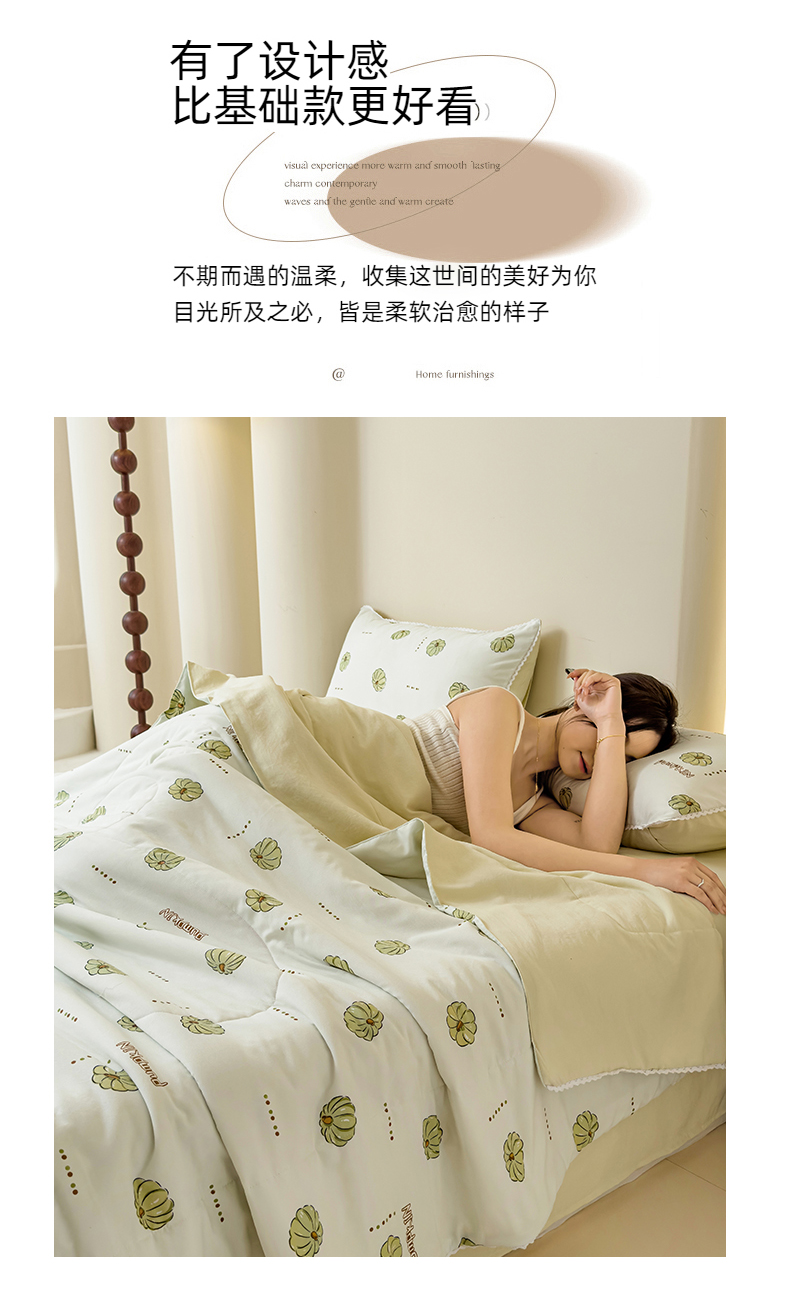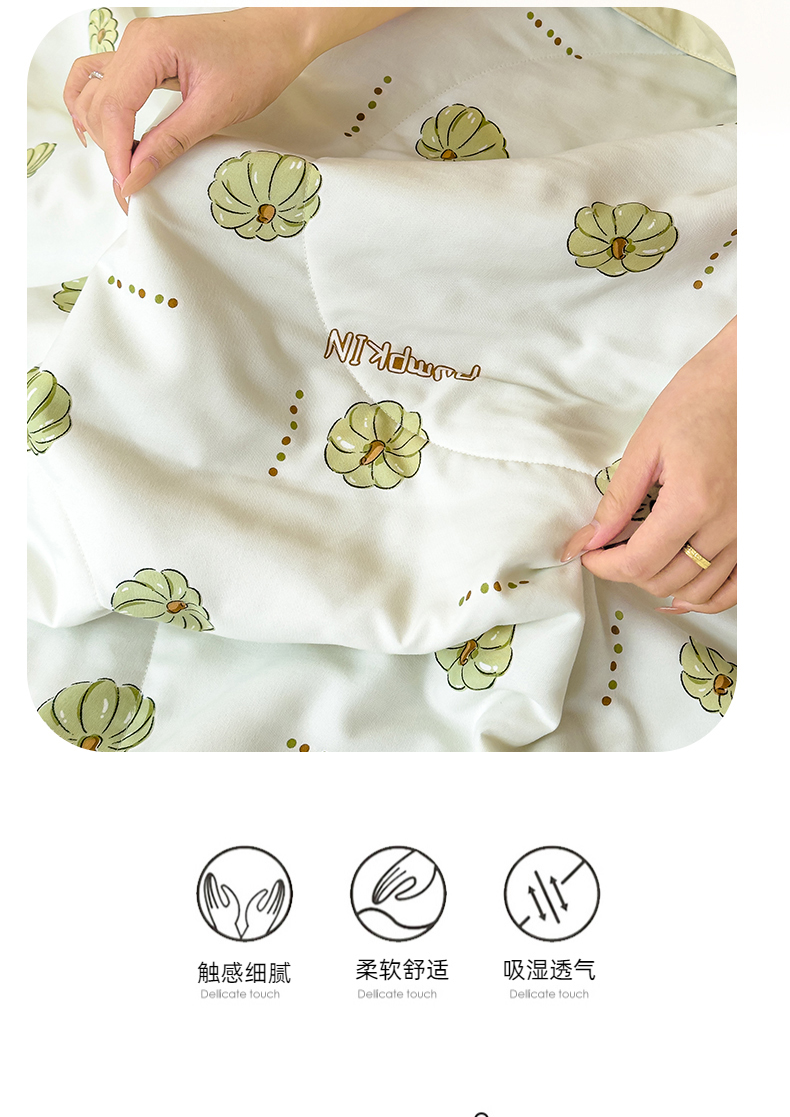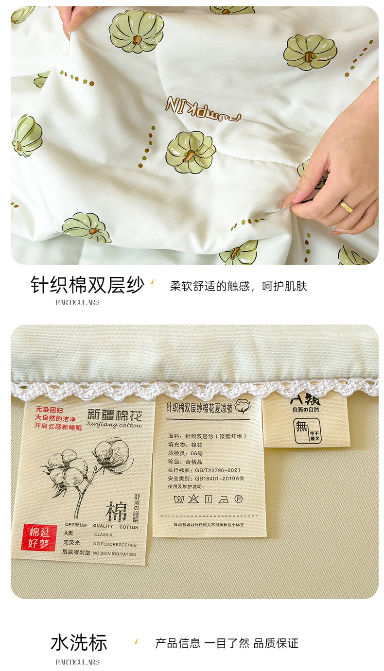 • 91家纺网 家纺一手货源 找家纺  2025新款针织棉双层纱小花边棉花夏凉被 倾心南瓜