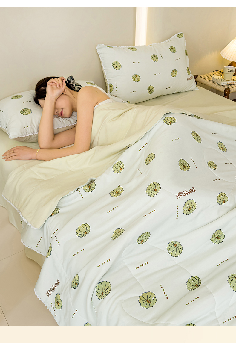 2025新款针织棉双层纱小花边棉花夏凉被 倾心南瓜