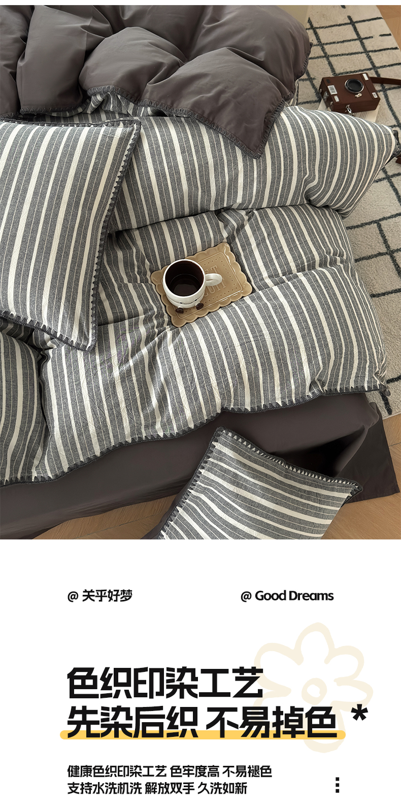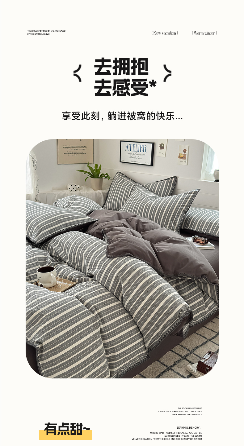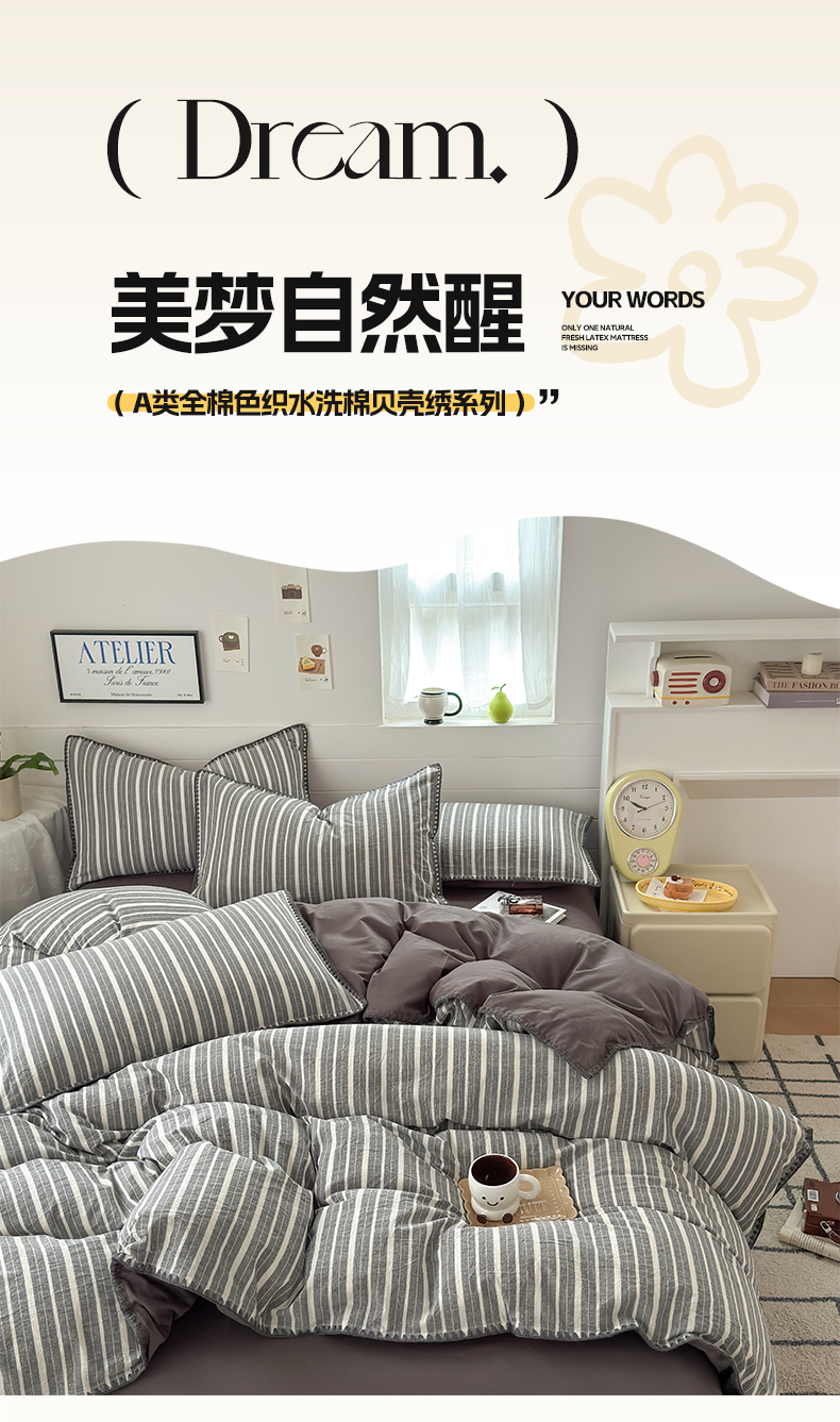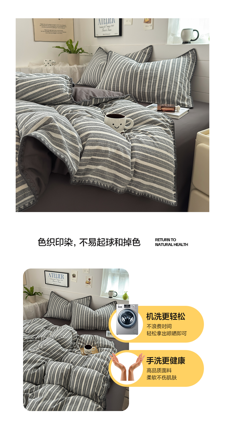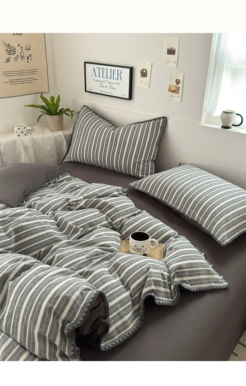 当前位置: 91家纺网 > 商品网购 > 床品套件 > 四件套 > 水洗棉四件套 > 2025新款A类全棉色织水洗棉贝壳绣条纹系列四件套 雅诗深灰