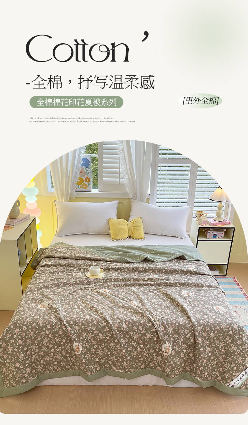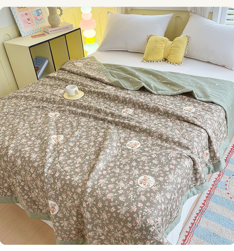2025新款A类全棉棉花夏被纯棉夏被 被子被芯 清茶小熊