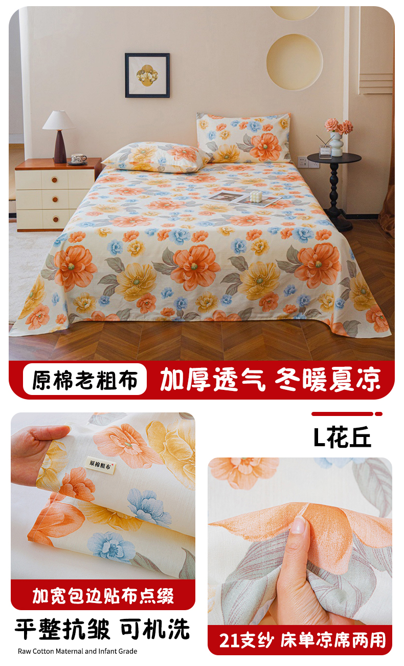 当前位置: 91家纺网 > 商品网购 > 床上用品 > 床单 > 2025新款原棉老粗布床单混纺含棉-床单 L象君