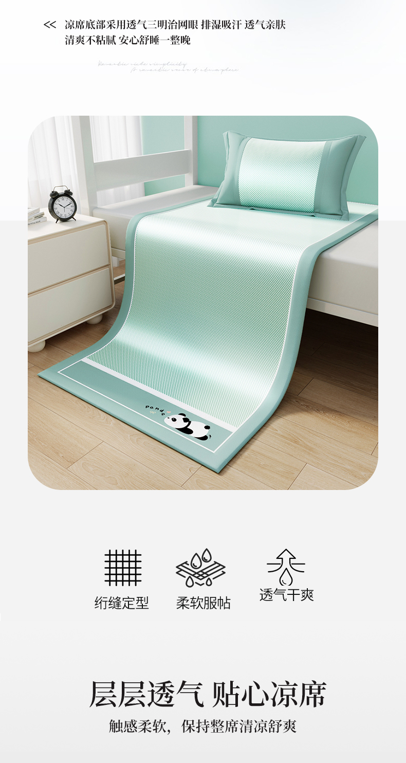 当前位置: 91家纺网 > 商品网购 > 床上用品 > 凉席 > 冰丝席 > 川悦生活 2025新款纯色凉感冰丝席-小床 眠眠熊猫-青绿