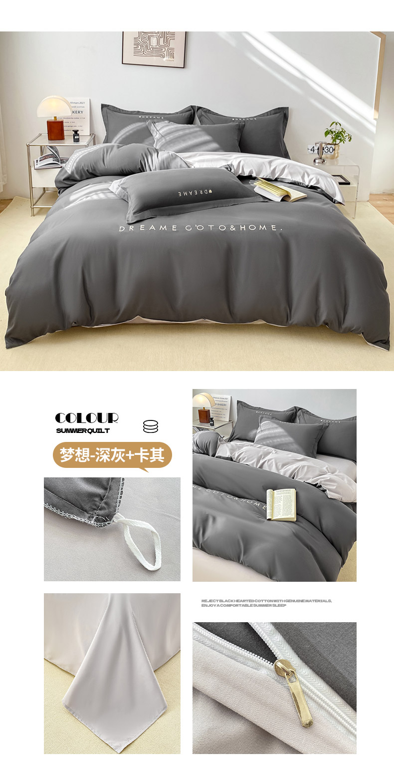 商品名称:芷凡家纺 2025新款水洗磨毛刺绣四件套-梦想 梦想-深灰+卡其