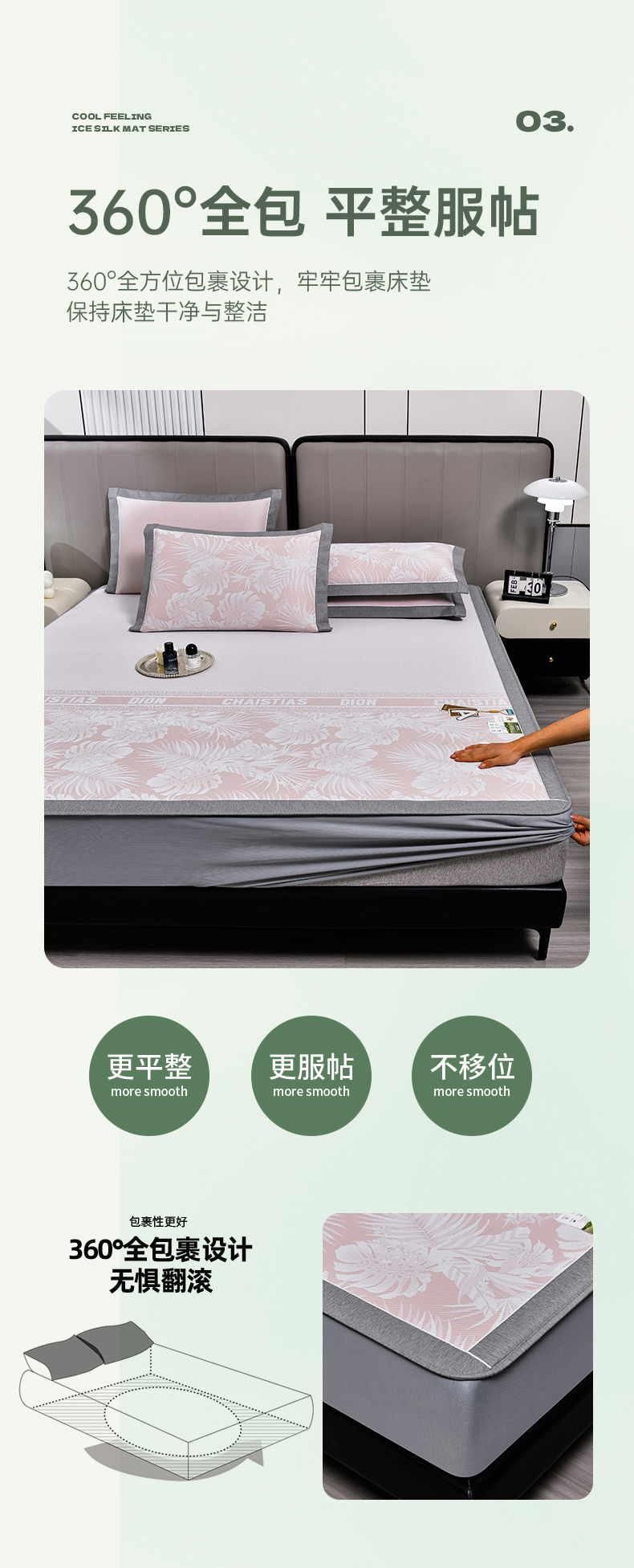 商品名称:小牛席业2025新款PE半定位大提花凉感冰丝系列(床笠款)凉席藤席冰藤席冰丝席草席竹席乳胶席凉感豆豆席 粉色