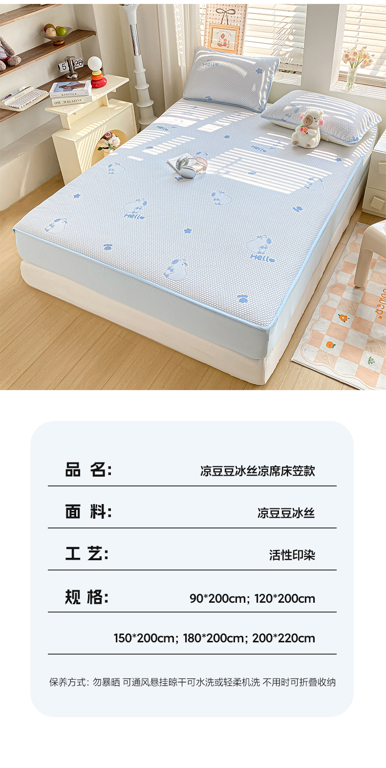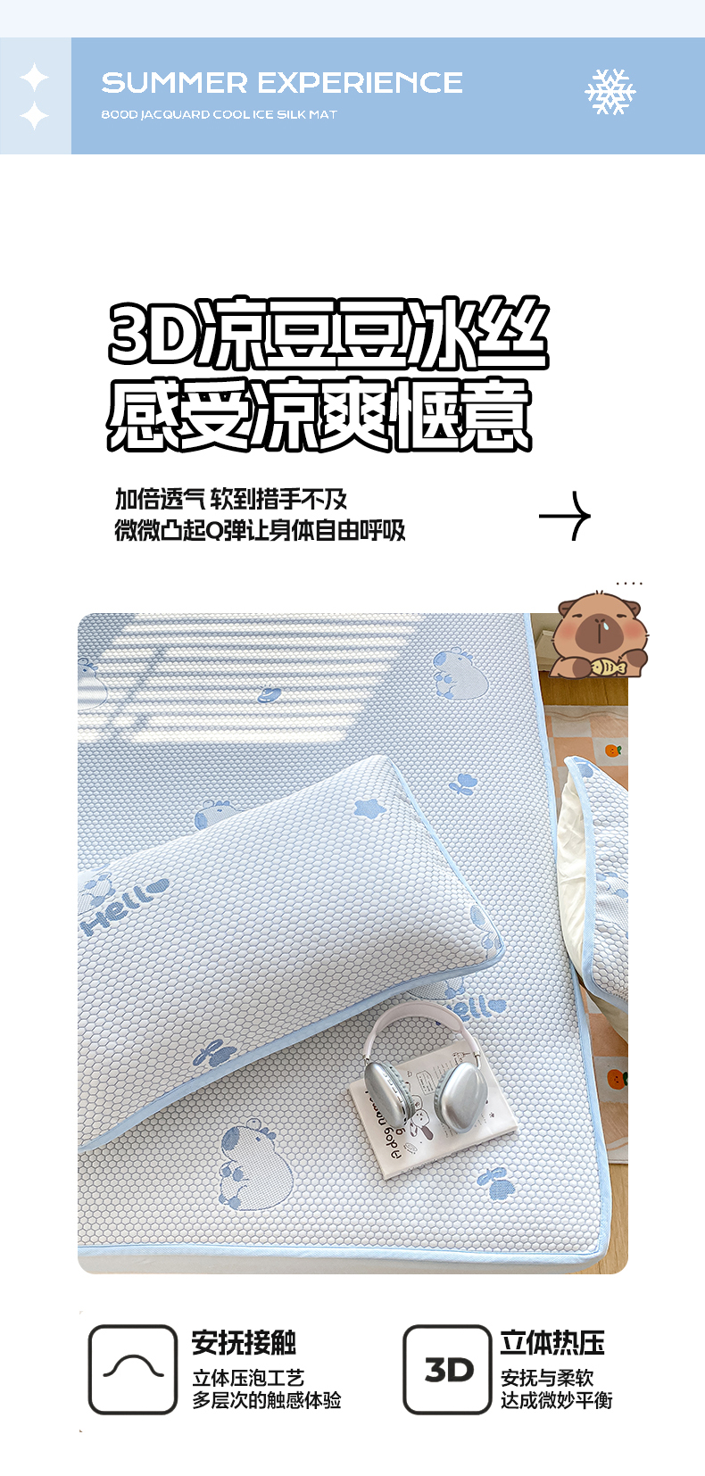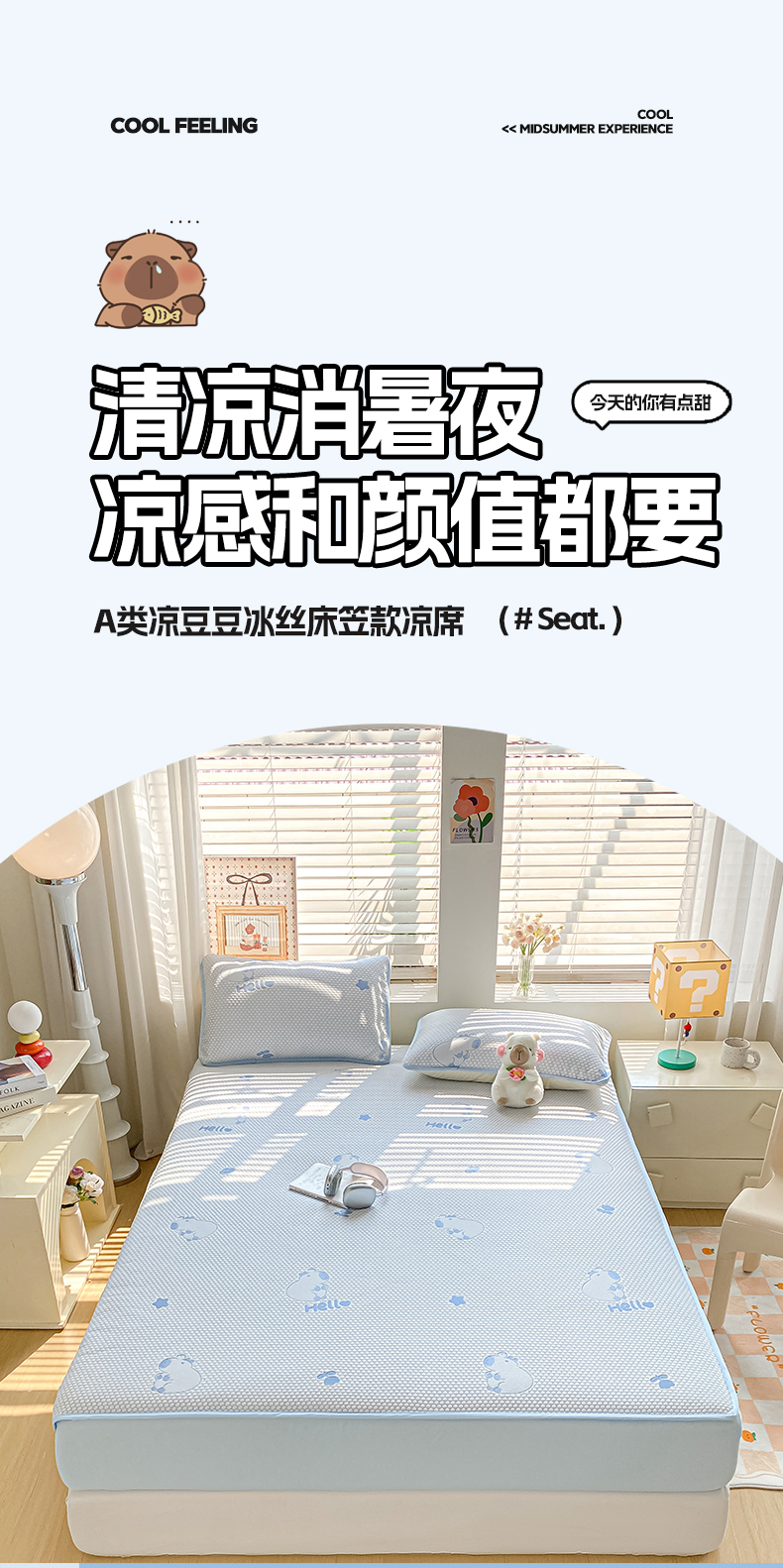 商品名称:(总)春寻家纺 2025新款直播爆款卡皮巴拉系列凉豆豆冰丝凉席三件套床单款床笠款可水洗机洗夏季凉感冰豆豆空调席软席子