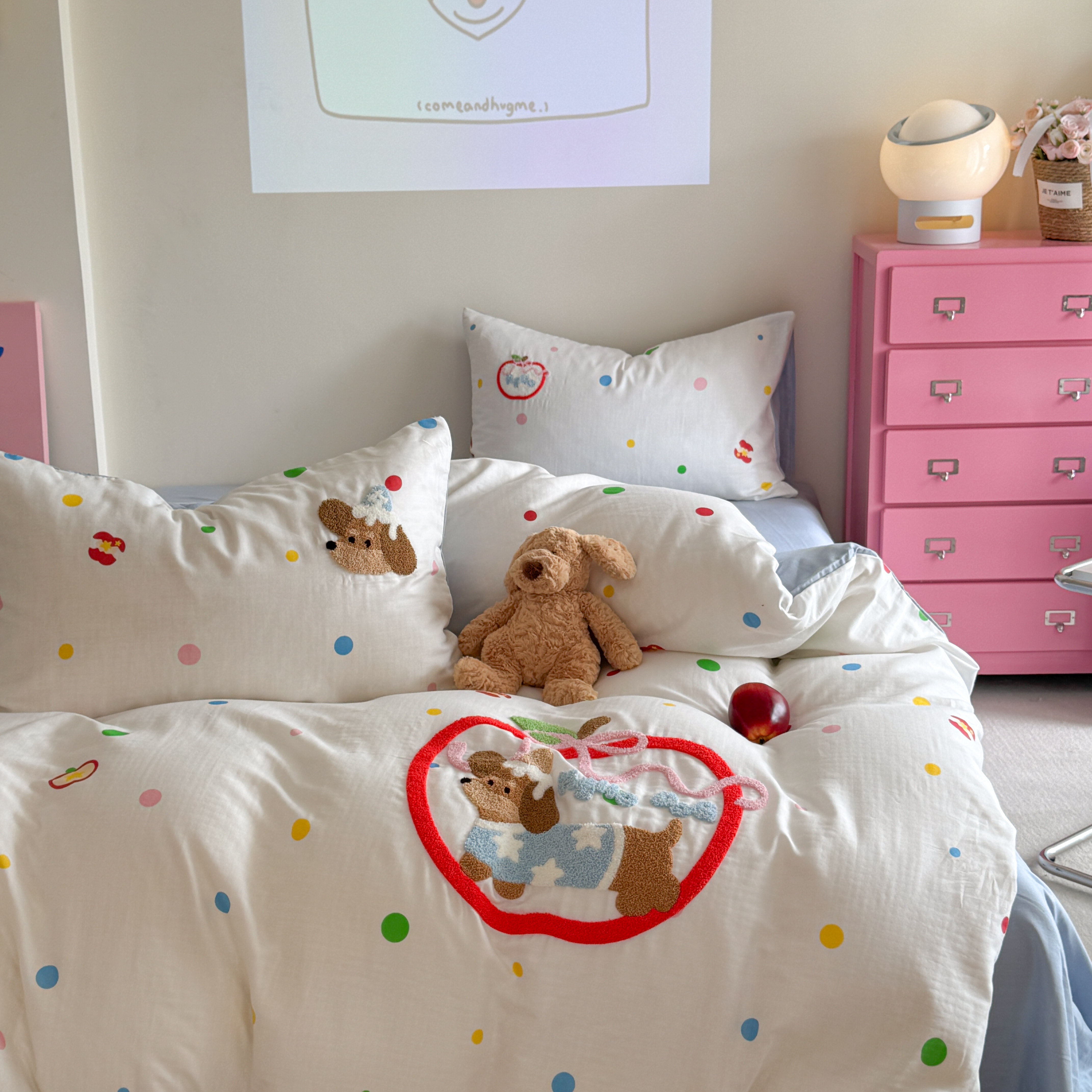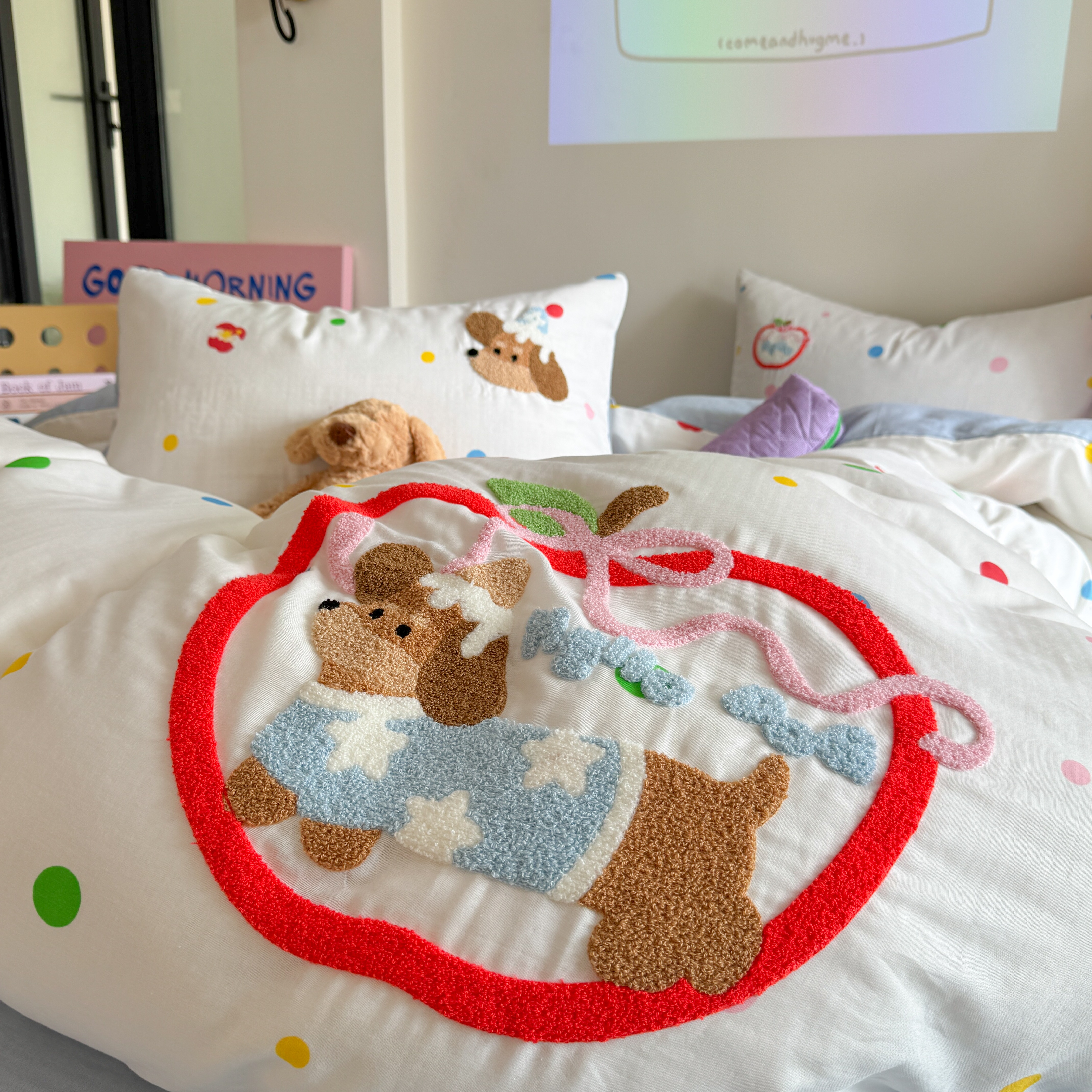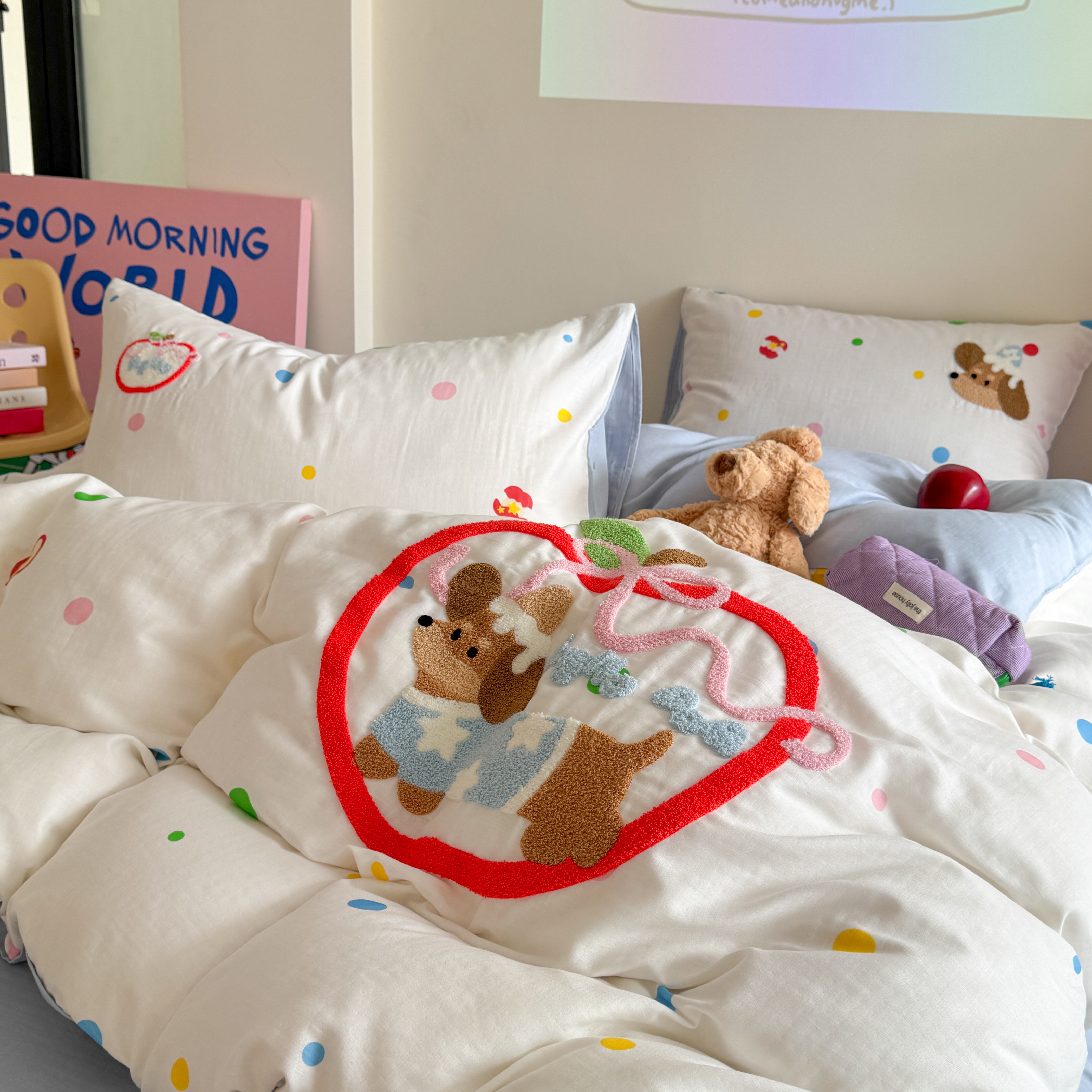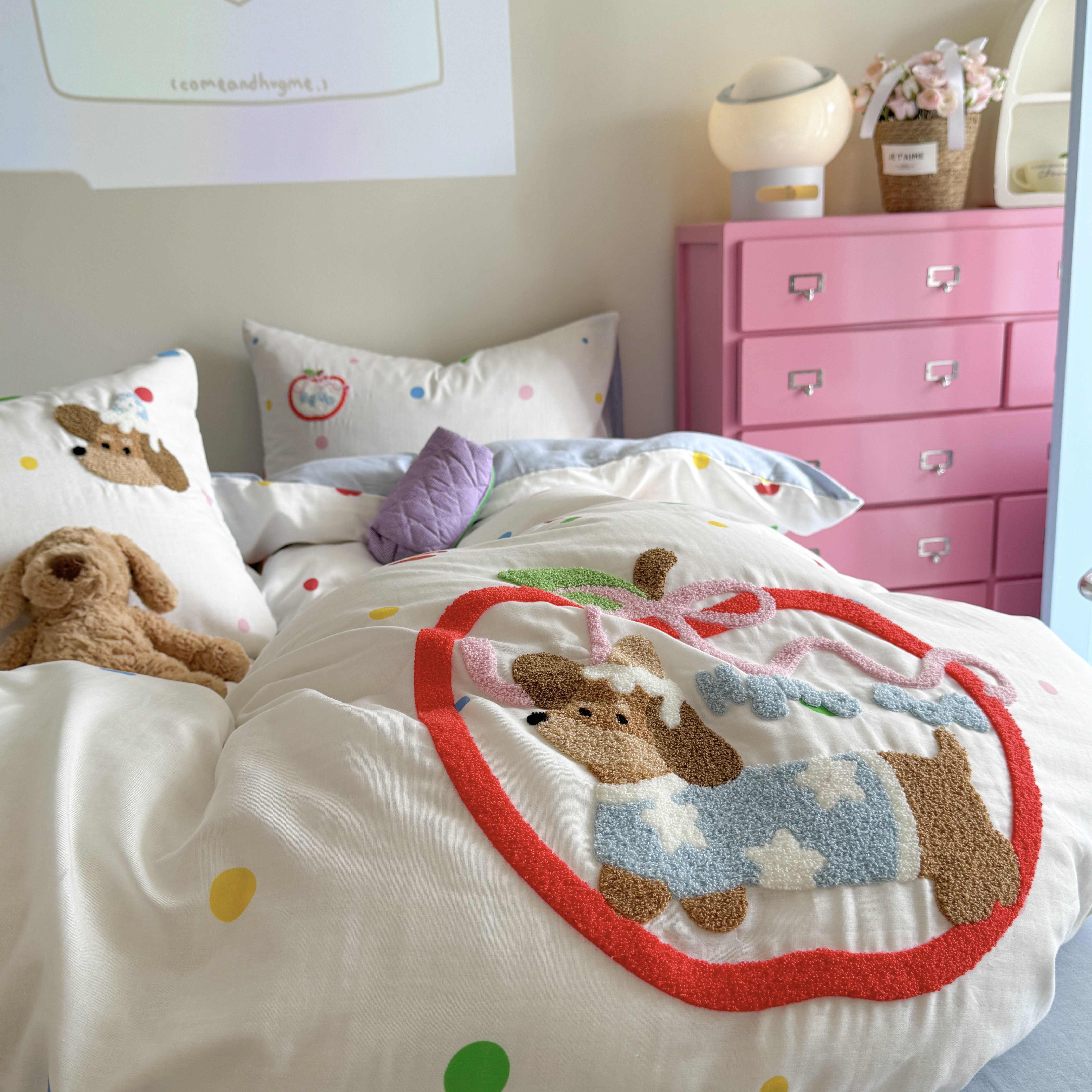 (总)柚子YOUTH 2025新款全棉纯棉工艺款13070贴布绣四件套,爱心小象,毛绒小狗,蘑菇女孩,星星法师