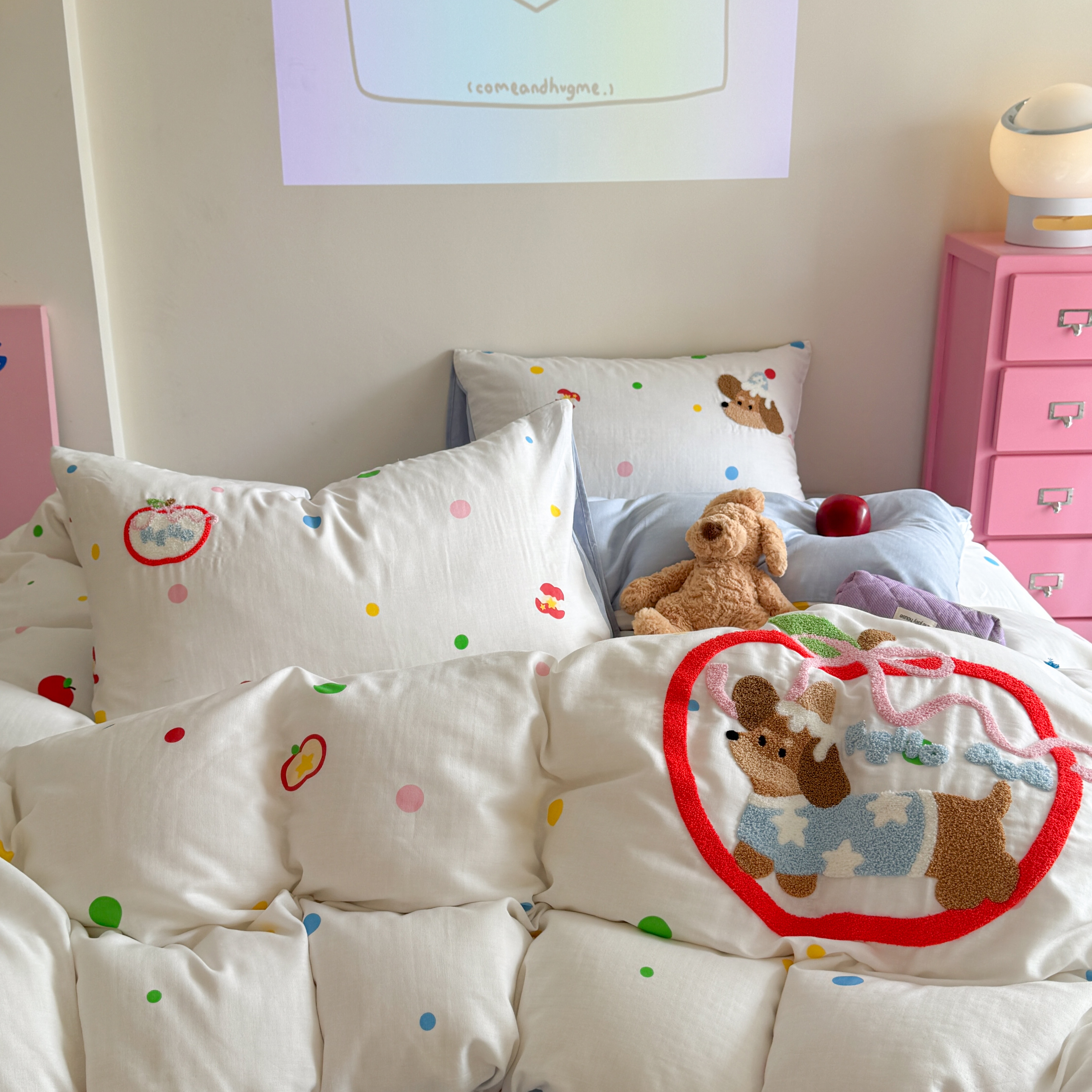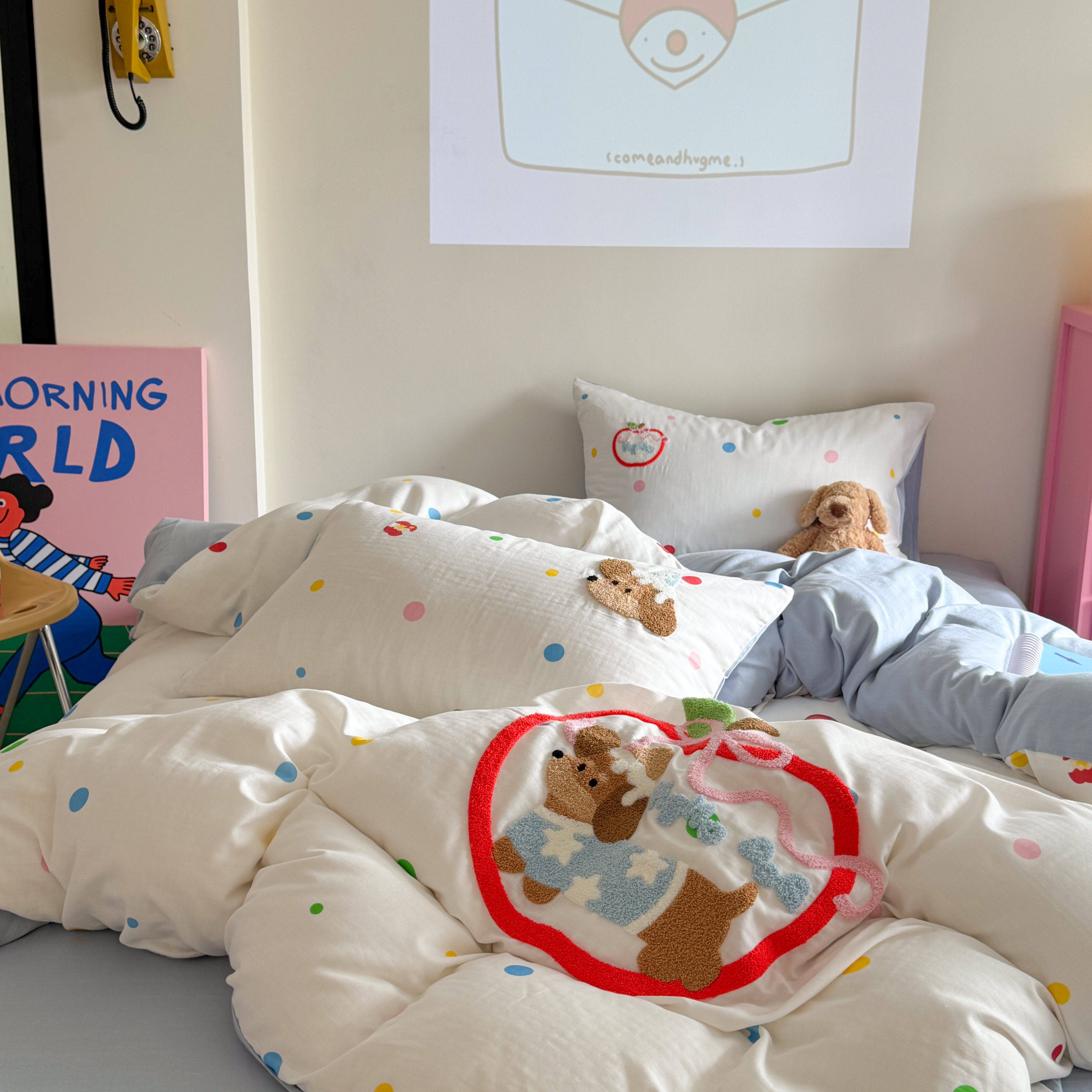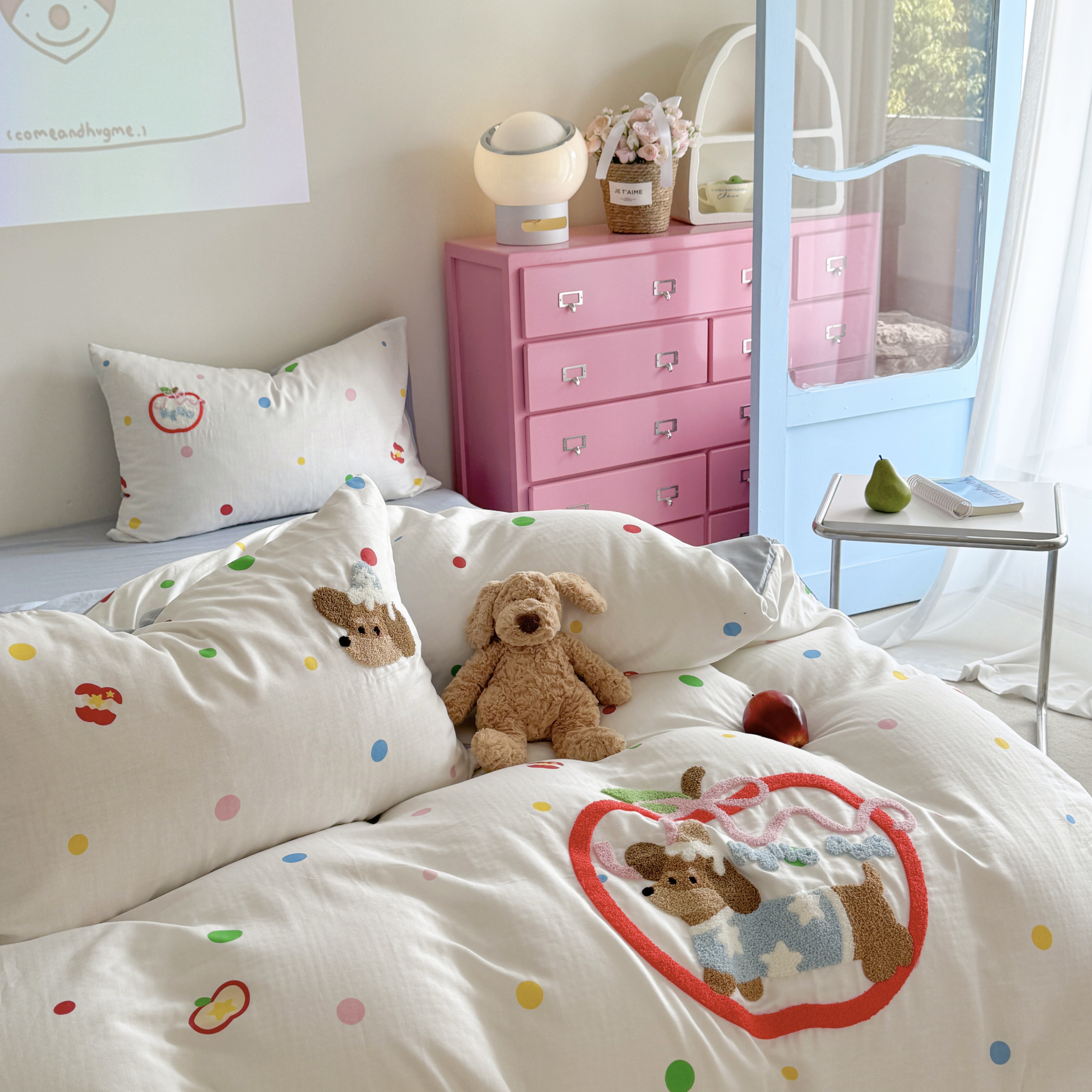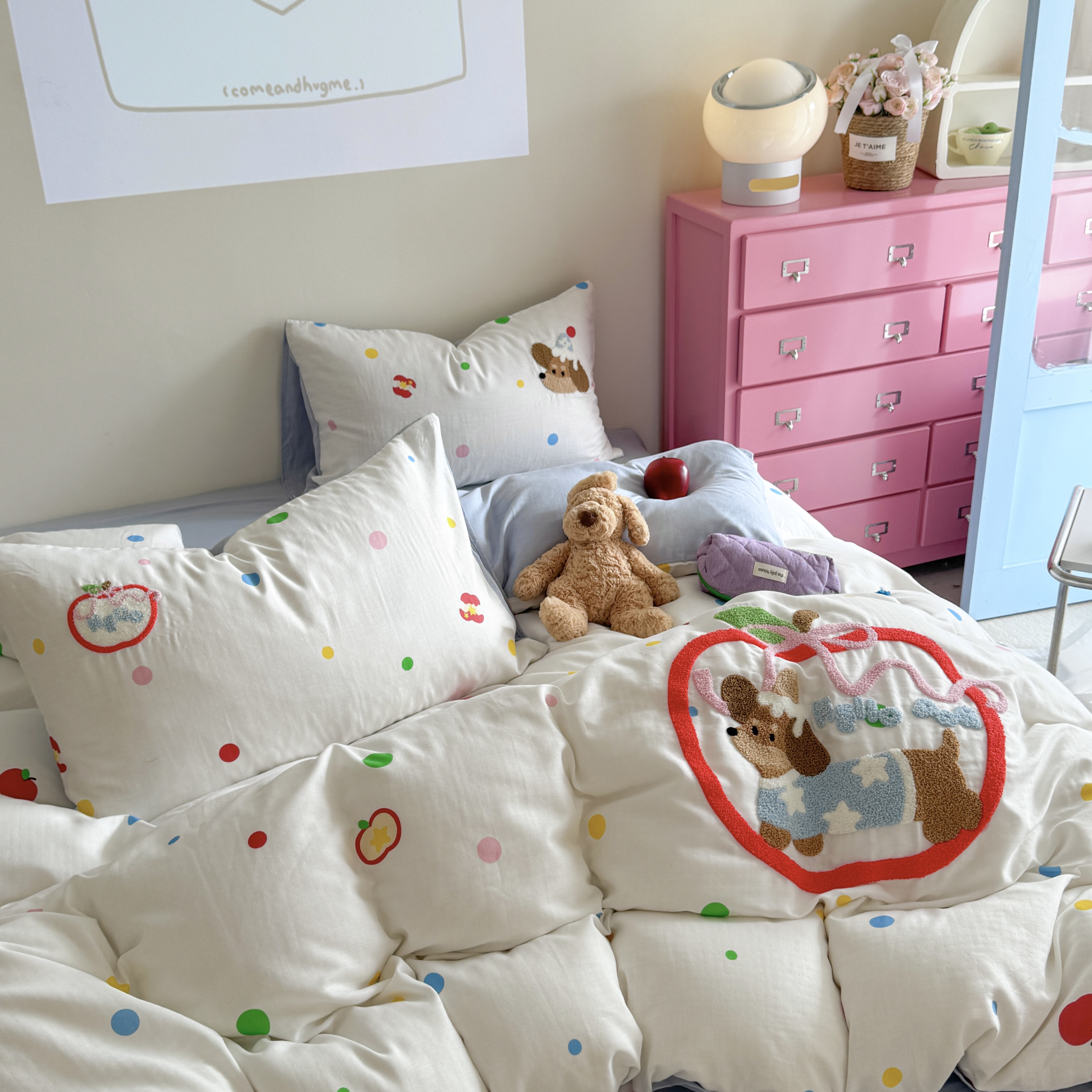 (总)柚子YOUTH 2025新款全棉纯棉工艺款13070贴布绣四件套,爱心小象,毛绒小狗,蘑菇女孩,星星法师