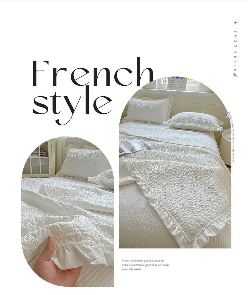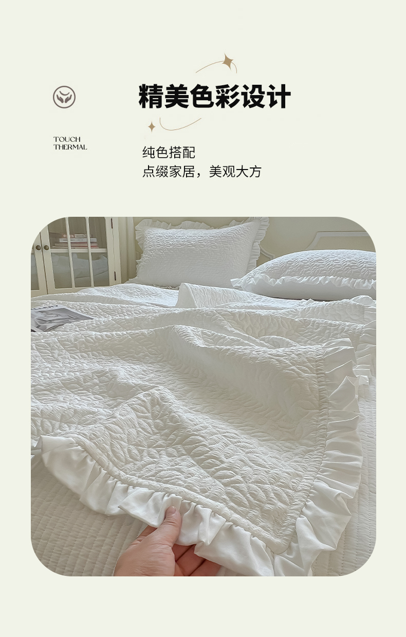 (总)乐卧家居 2026新款韩国INS风简约时尚绗缝荷叶边夏被,白色,粉色,黄色,灰色,蓝色,绿色,紫色,深紫