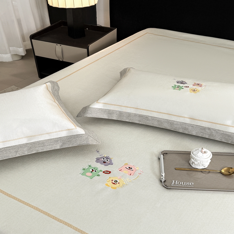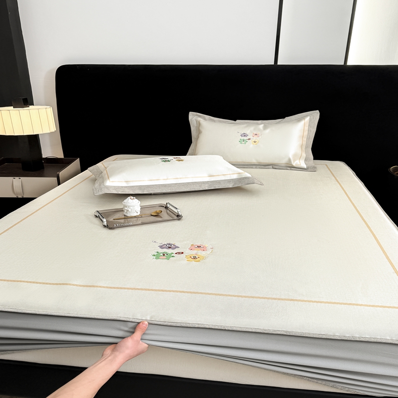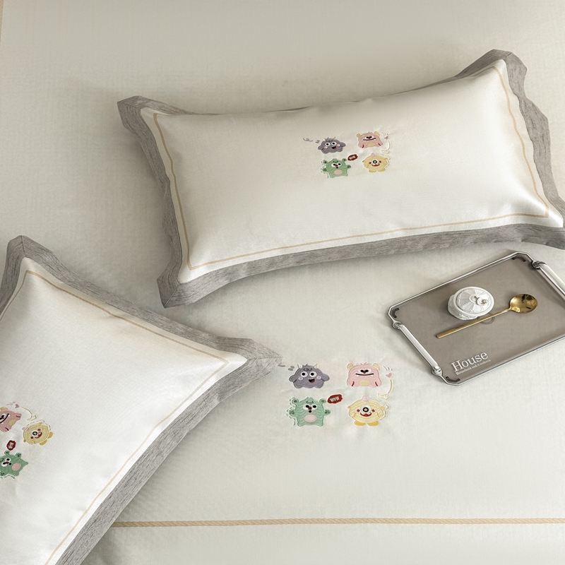 木希2025春夏新款可水洗冰丝席幻彩刺绣床笠系列-场景二 小怪兽