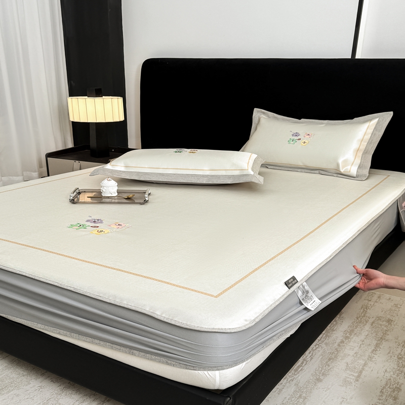 (总)木希2025春夏新款可水洗冰丝席幻彩刺绣床笠系列-场景一,爱心刺绣,格调爱心,脚丫刺绣,森林小熊,小怪兽,小秋秋乐园,熊猫乐园