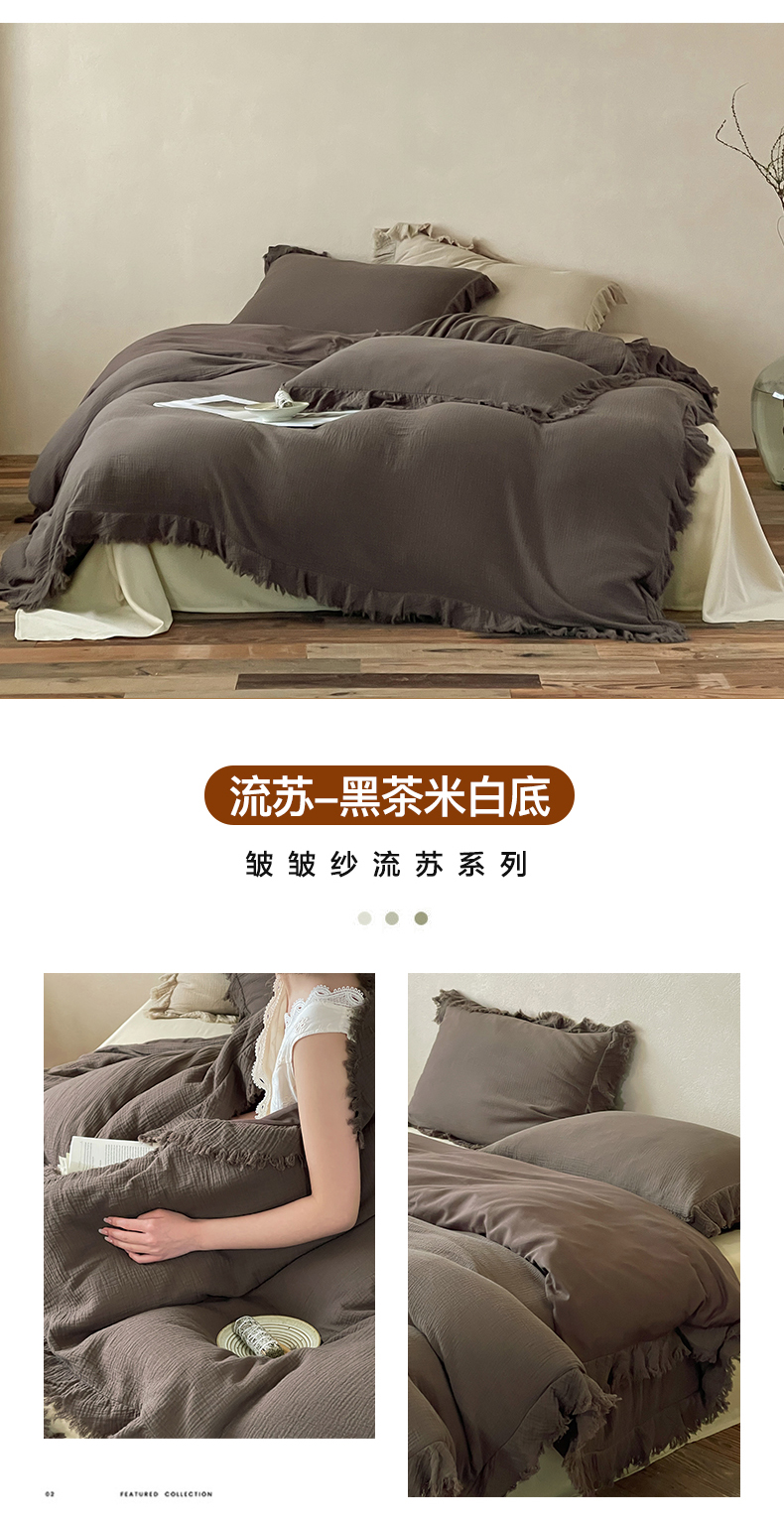 当前位置: 91家纺网 > 商品网购 > 床品套件 > 四件套 > 其它四件套 > 例外Home 2025新款皱皱流苏系列四件套 流苏-黑茶米白底