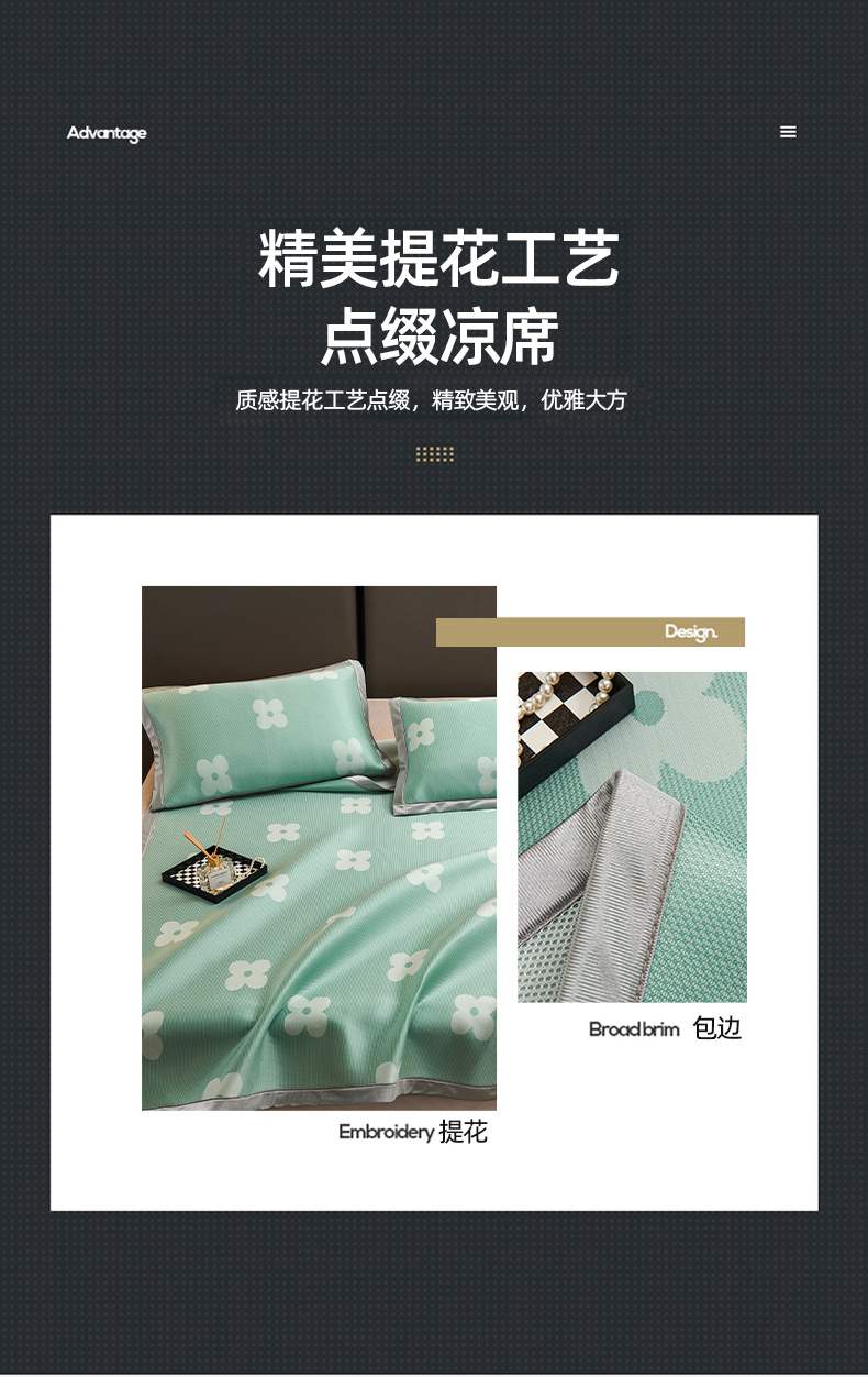 (总)悦织湾家纺2025新款三明治碳光提花冰藤席三件套2025新款夏凉席冰丝席子藤席轻奢时尚电商直播热销款