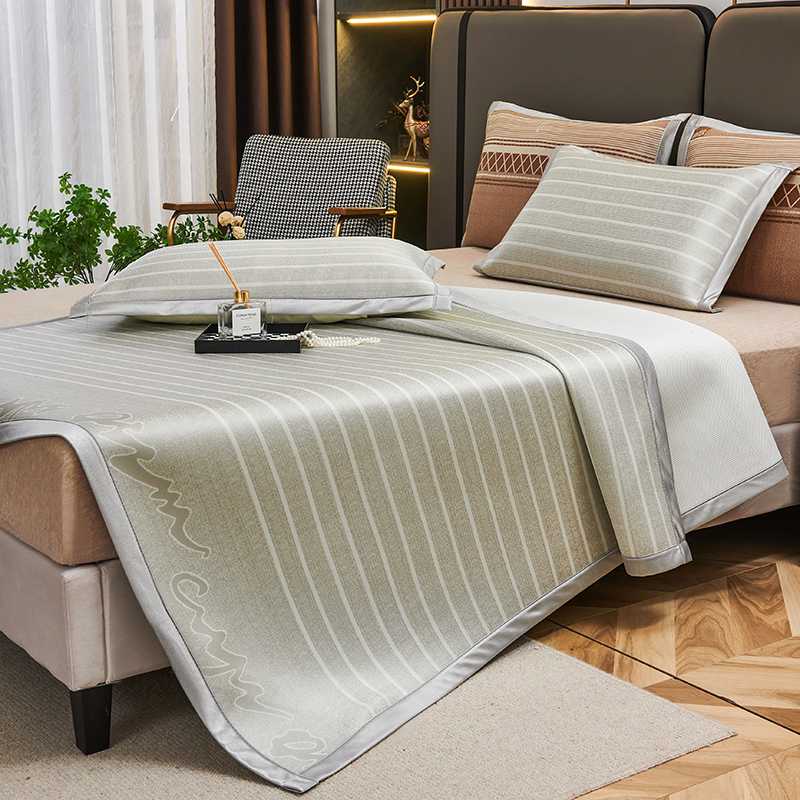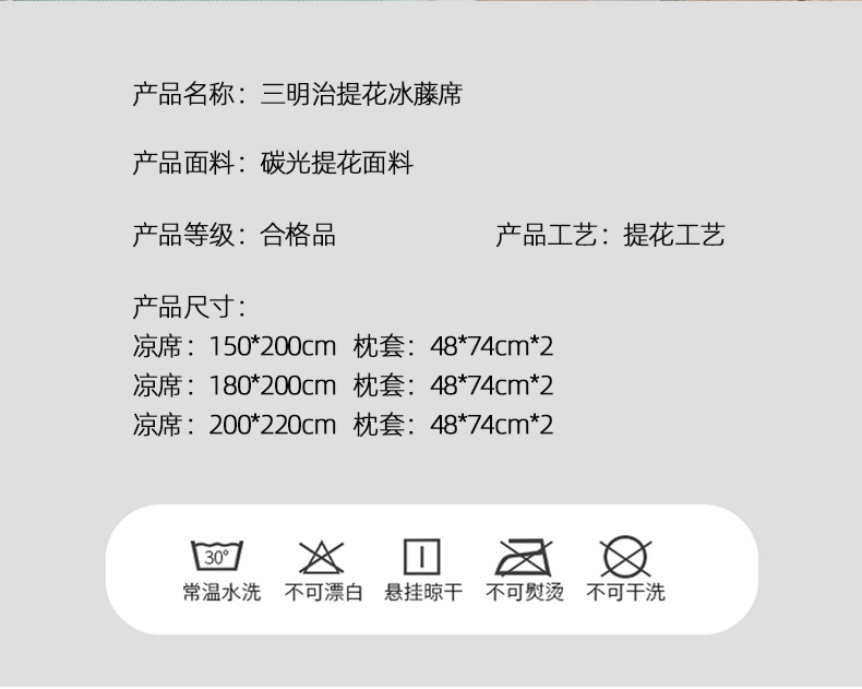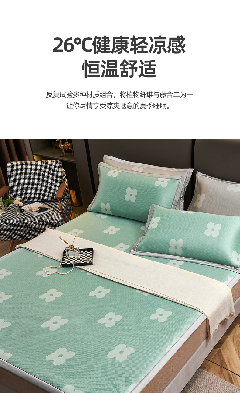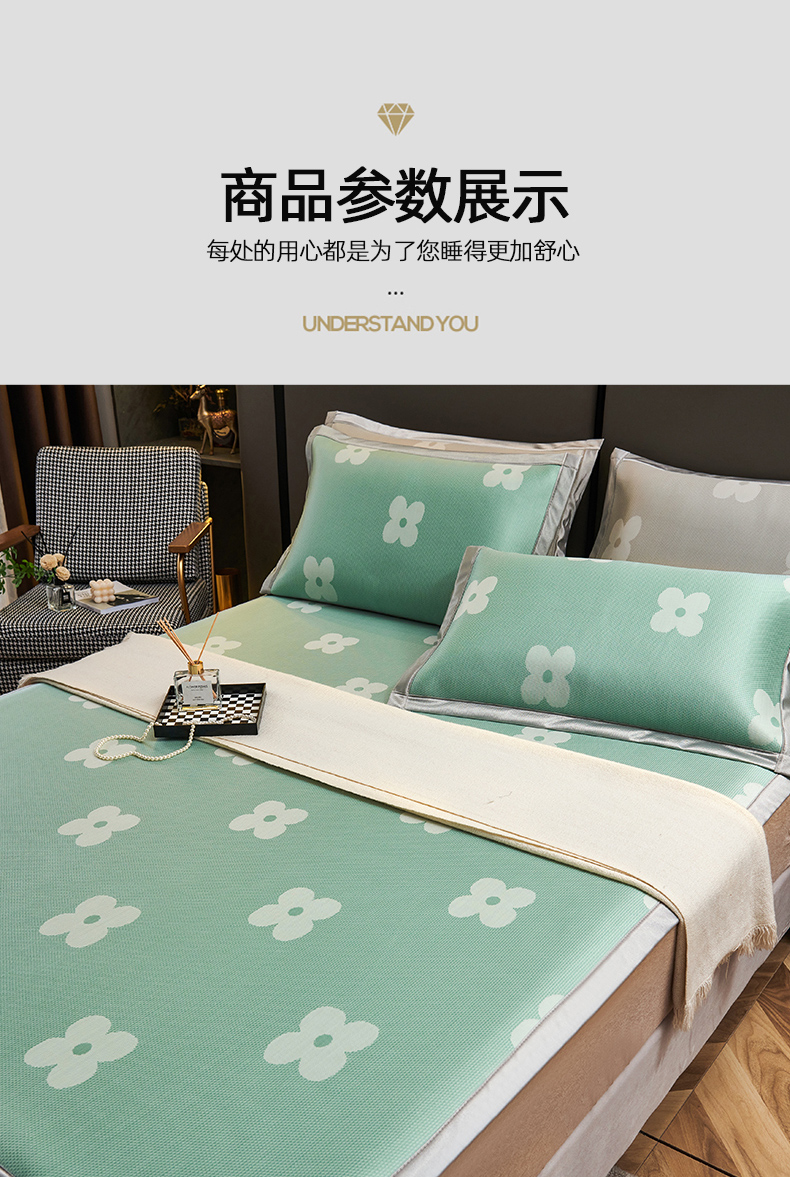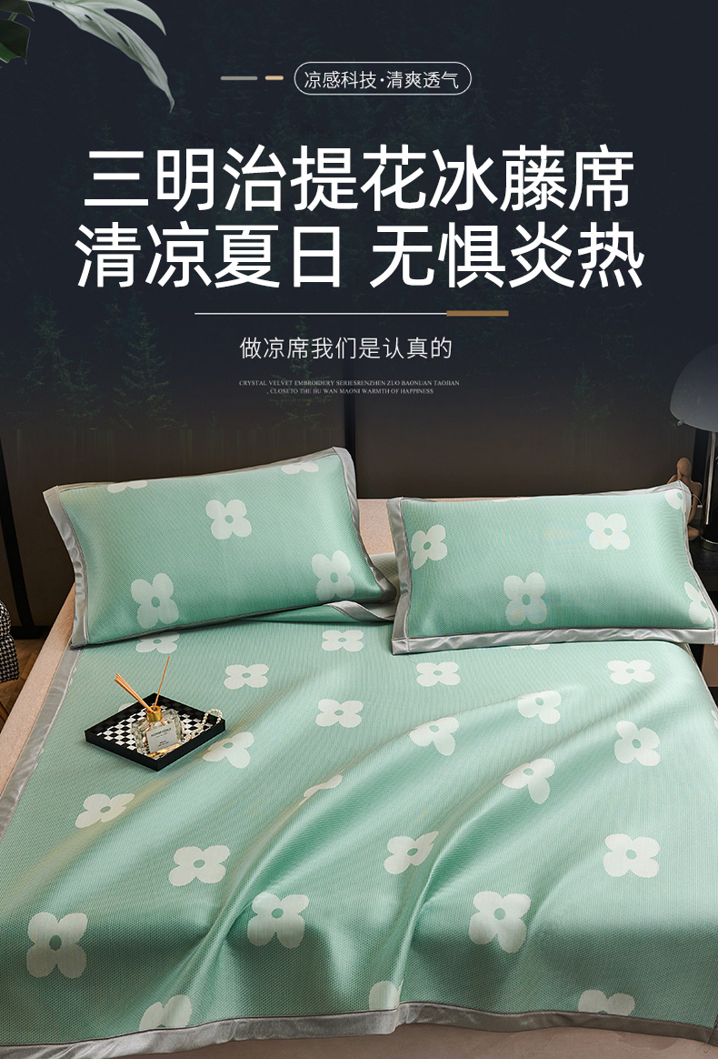 商品名称:(总)悦织湾家纺2025新款三明治碳光提花冰藤席三件套2025新款夏凉席冰丝席子藤席轻奢时尚电商直播热销款