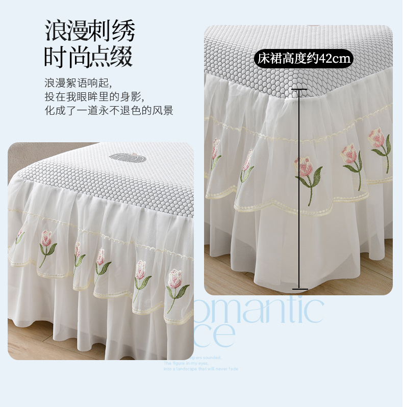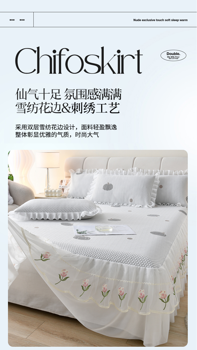 • 91家纺网 家纺一手货源 找家纺 优家居 2025新款床裙款--A类2025夏季冰丝席床裙款豆豆凉席三件套刺绣花边蕾丝花边床裙可机洗水洗 盛夏-南瓜青