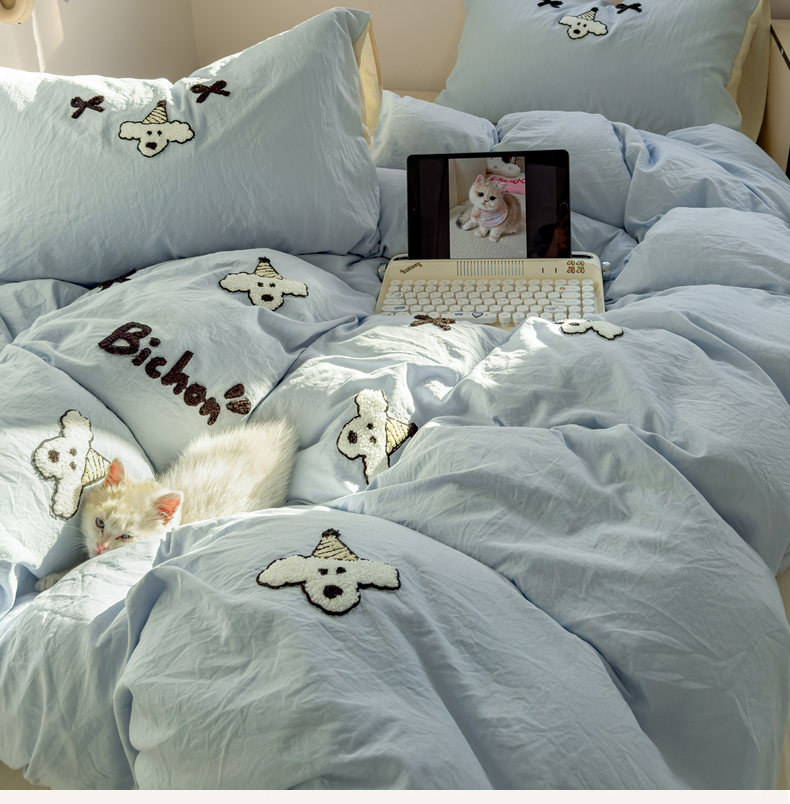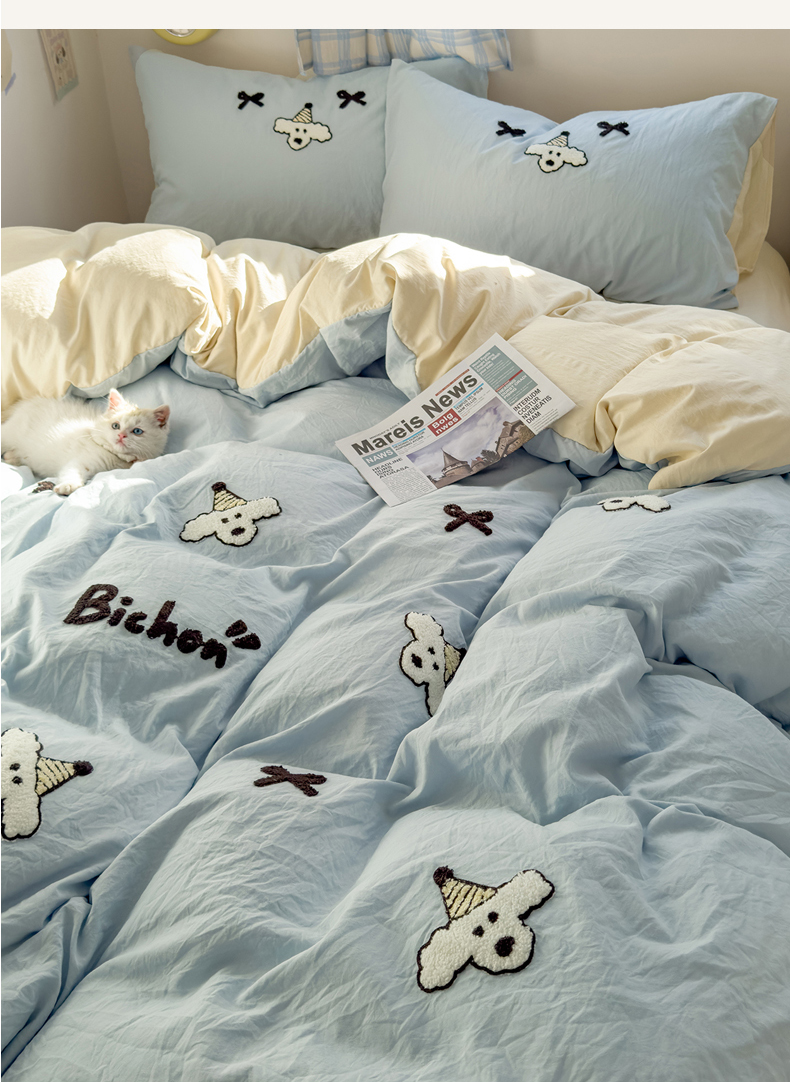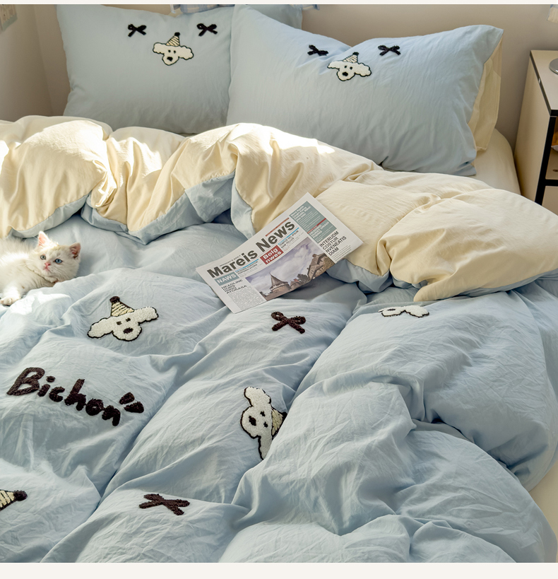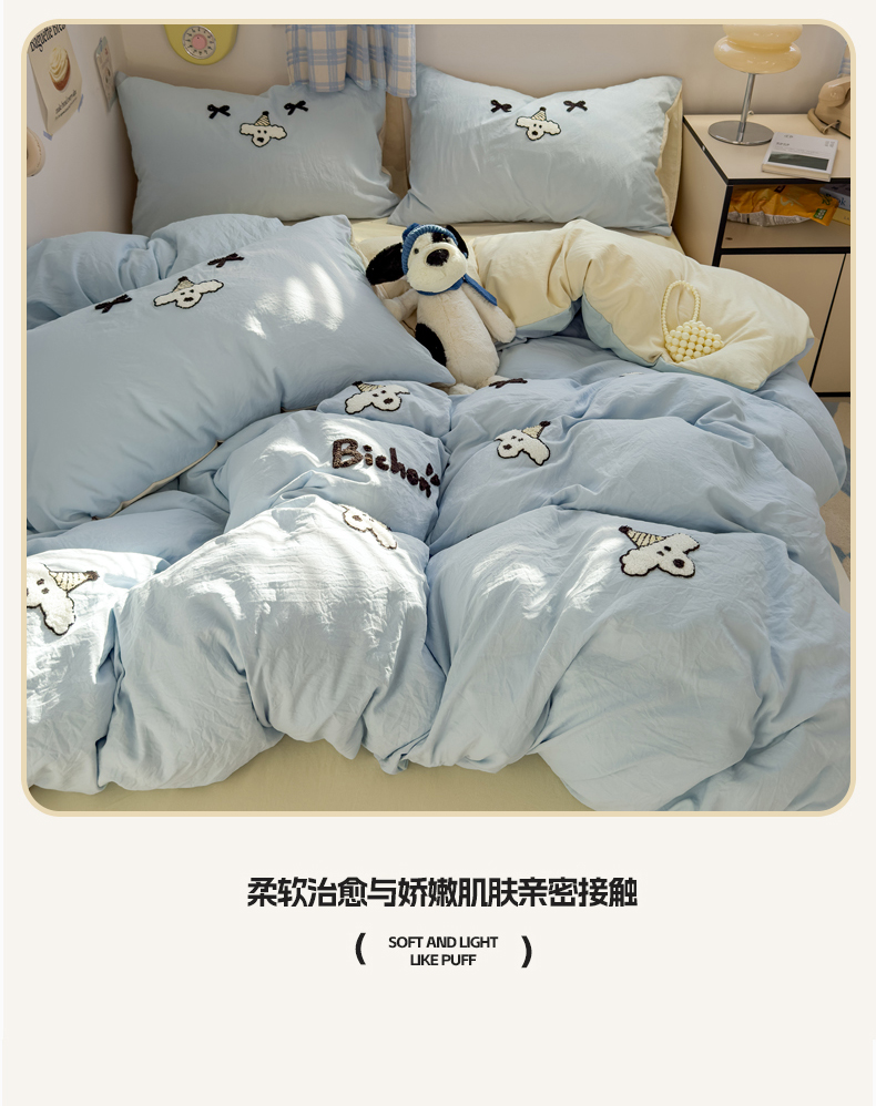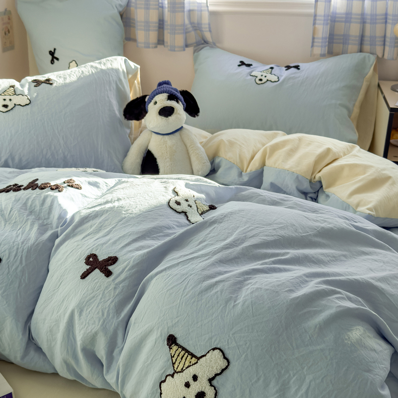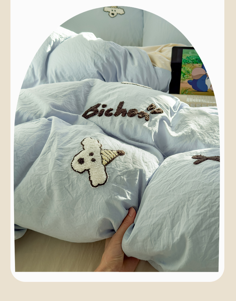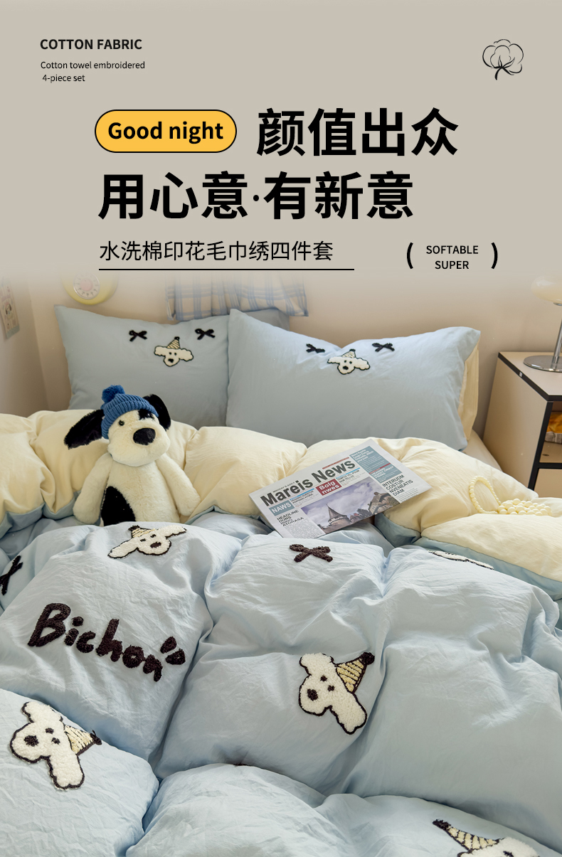 当前位置: 91家纺网 > 商品网购 > 床品套件 > 四件套 > 磨毛活性四件套 > 优兰朵 2025新款学生卡通水洗棉毛巾绣三件套床品四件套系列(提供买家秀) 魔法比熊-蓝