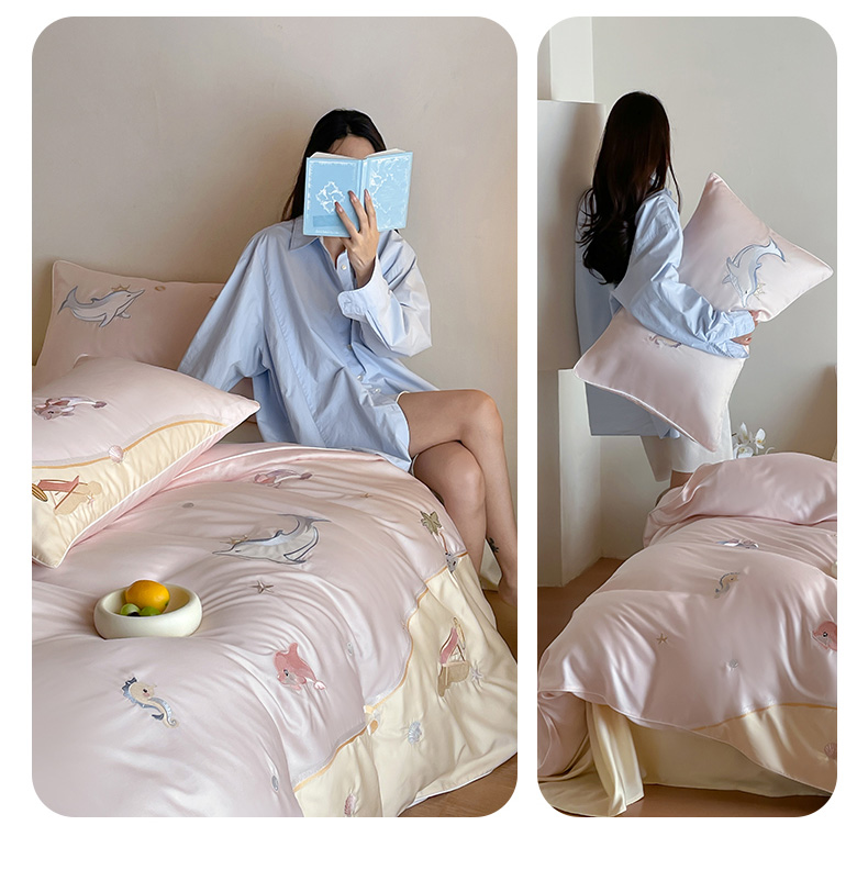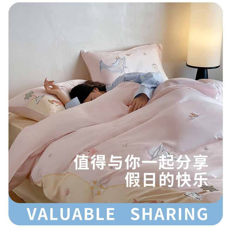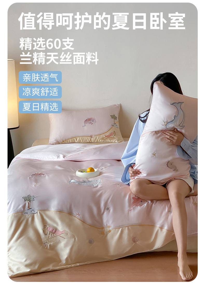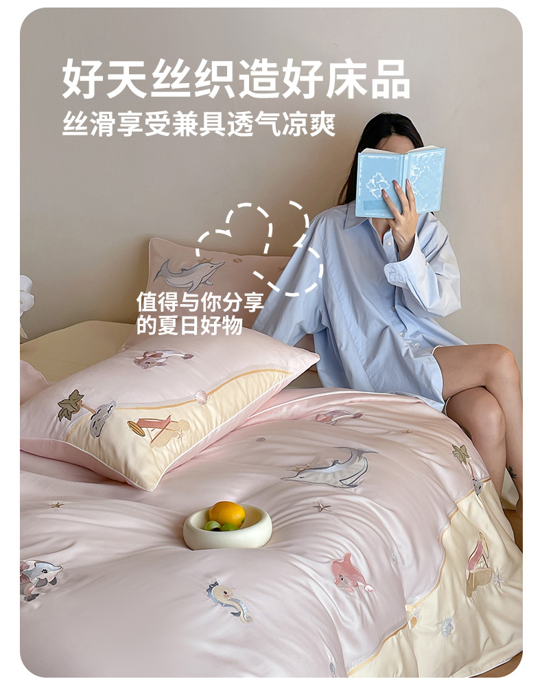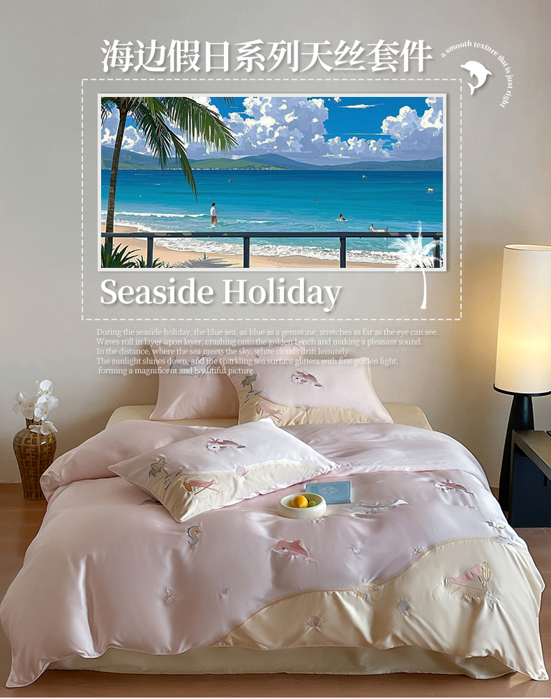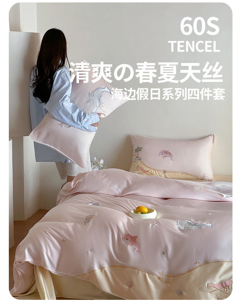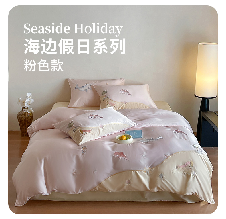 当前位置: 91家纺网 > 商品网购 > 床品套件 > 四件套 > 莱赛尔四件套 > 爱缦2025新款海边假日系列60支莱赛尔四件套风格一 粉