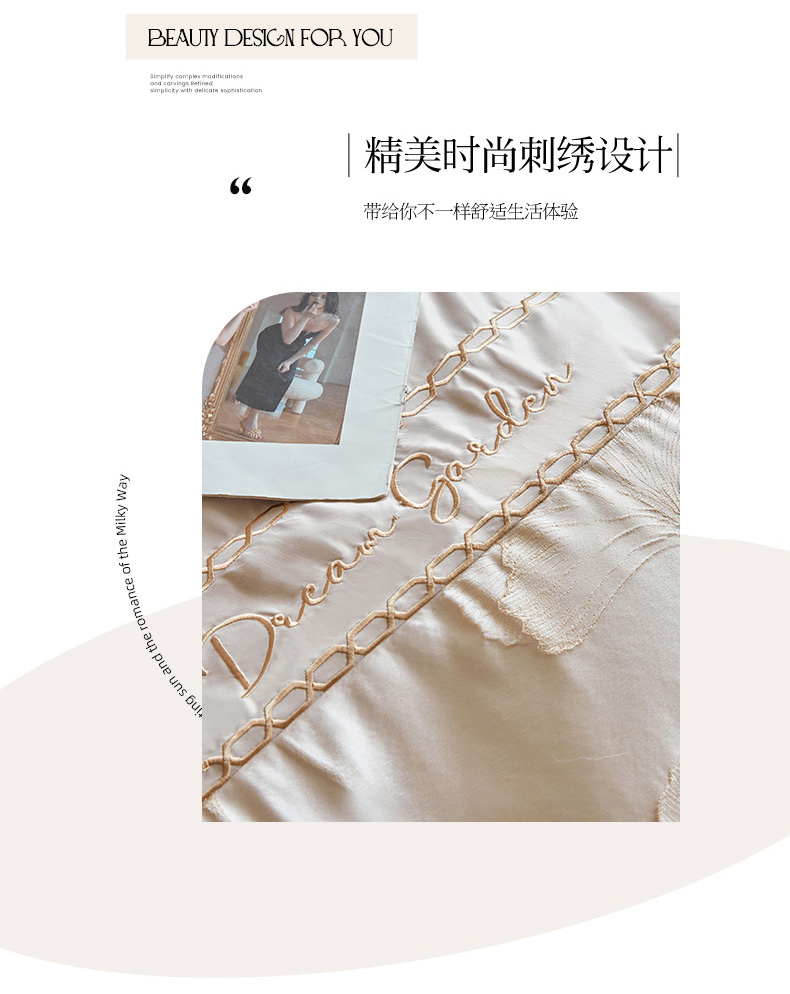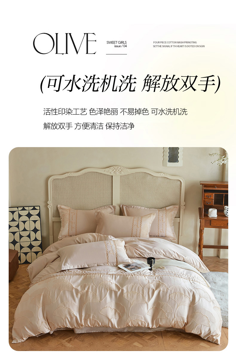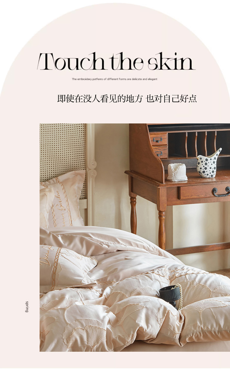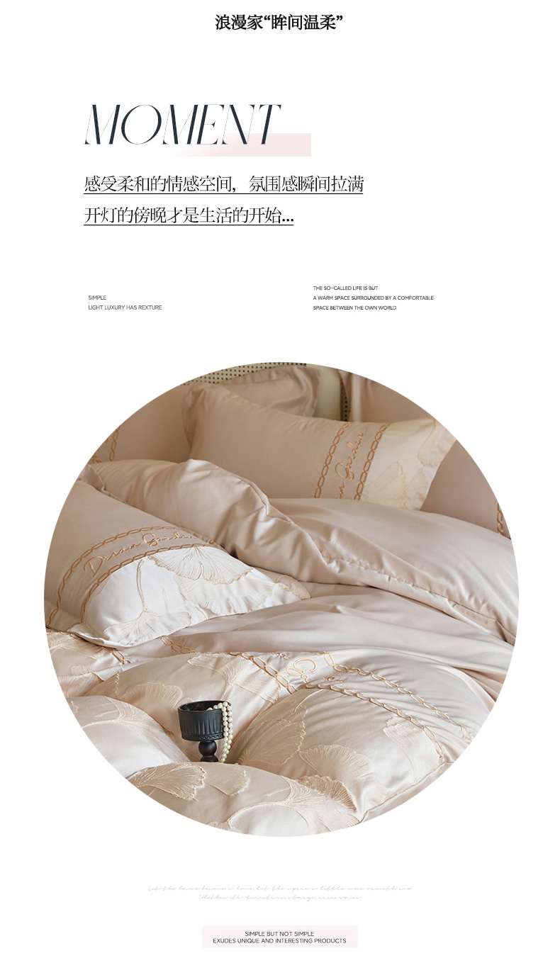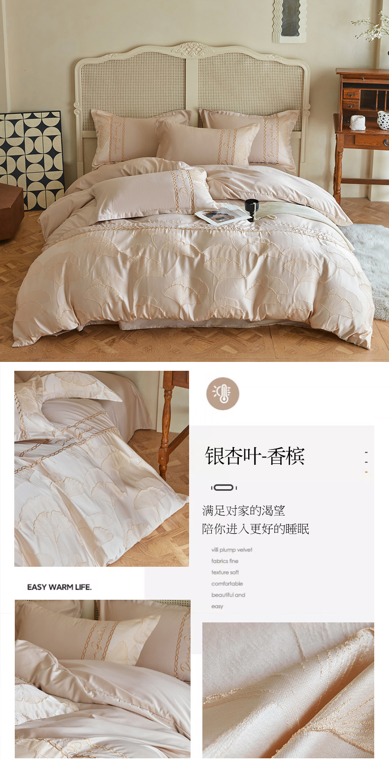 商品名称:菲儿2025新款冰丝浮雕提花绣花四件套 银杏叶-香槟