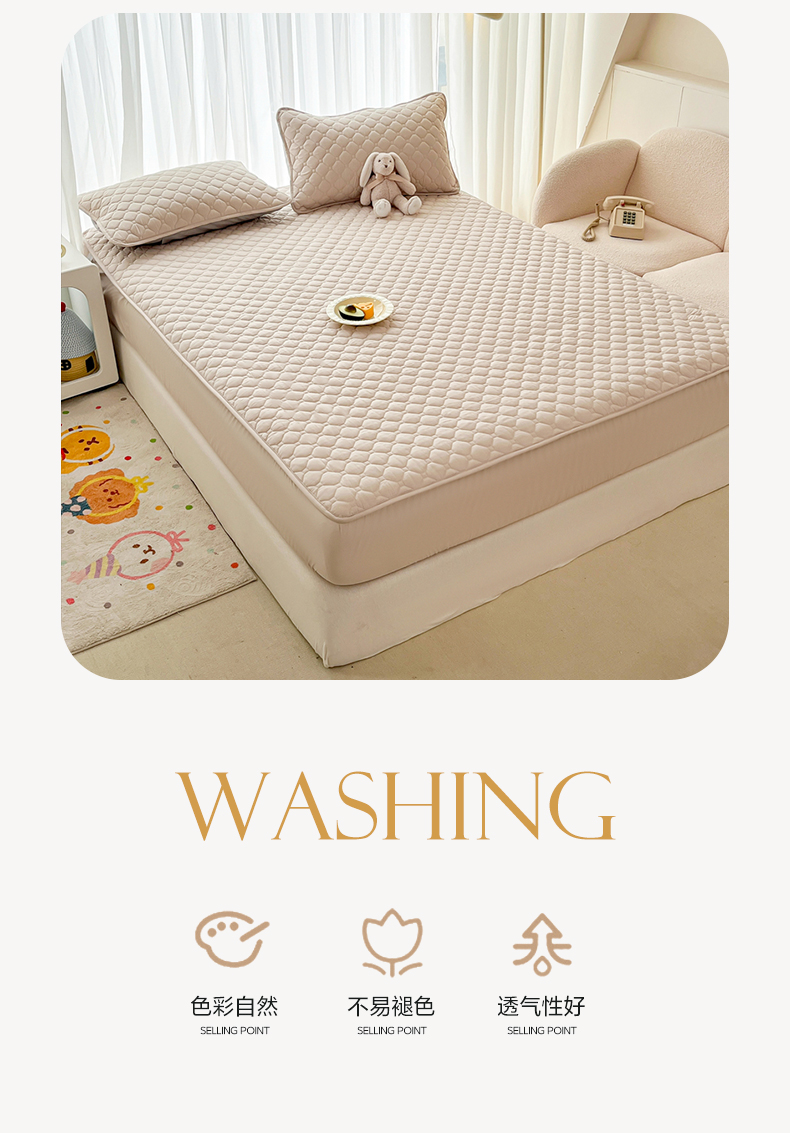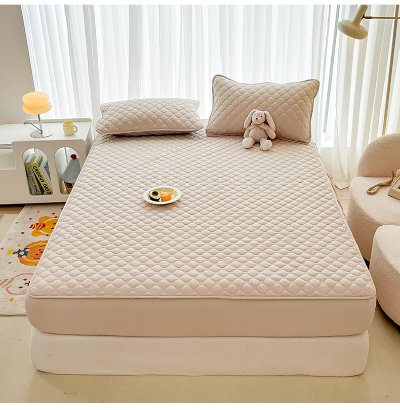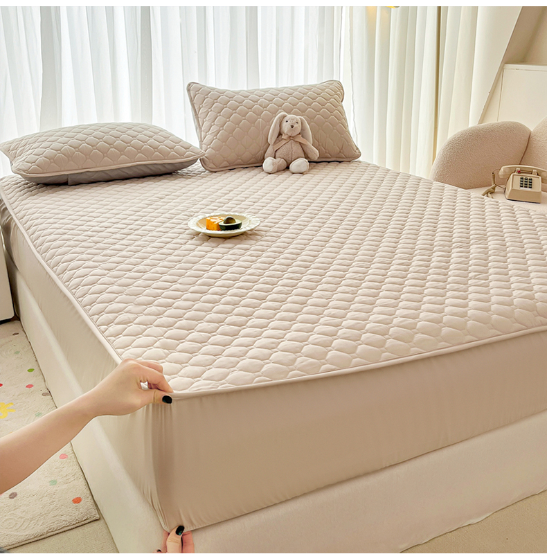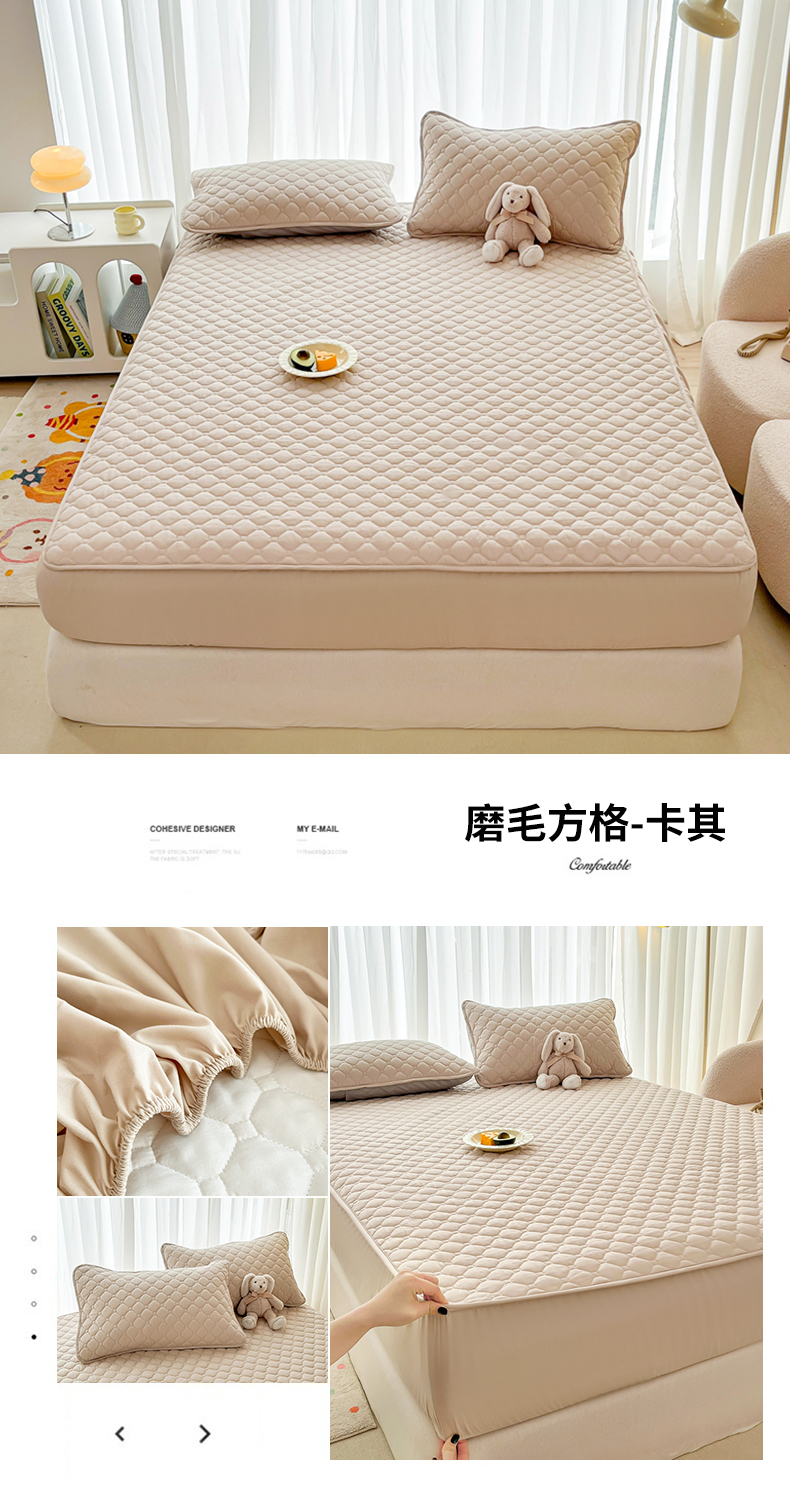 (总)云木里 2025新款速暖豆豆绒夹棉床笠,黑白,卡其,抹茶绿,浅灰,雾霾蓝,樱花粉