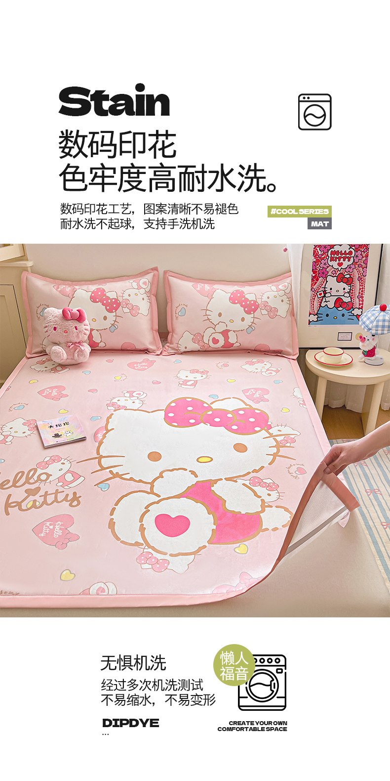 商品名称:金爱家 2025新款A类三丽鸥授权数码印花中分子1200D凉感冰丝宽边凉感软席 冰丝席-甜甜库洛米