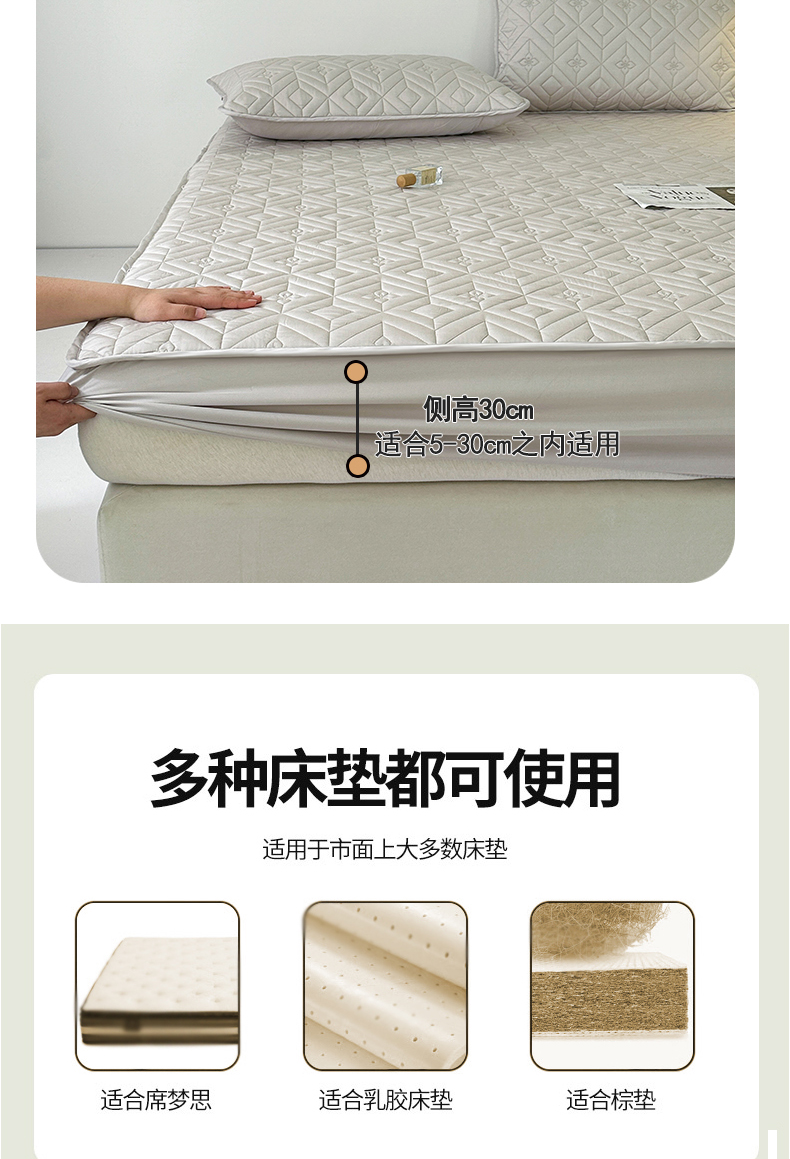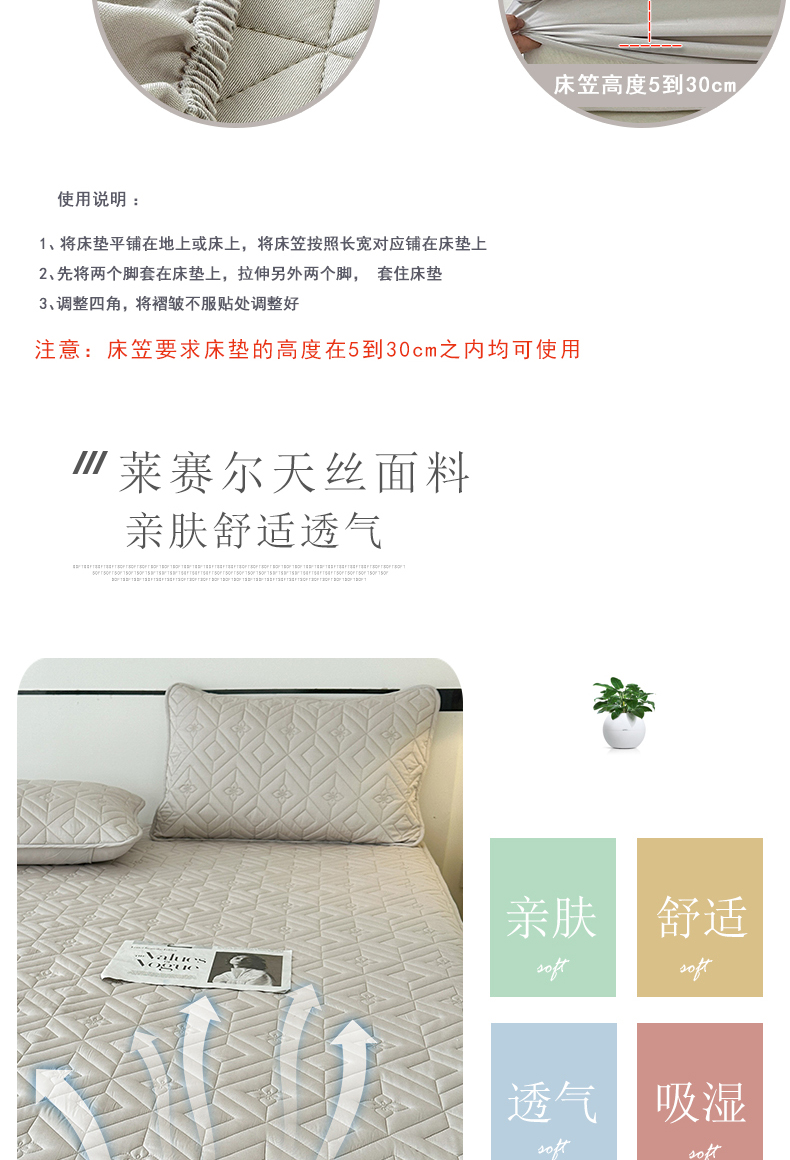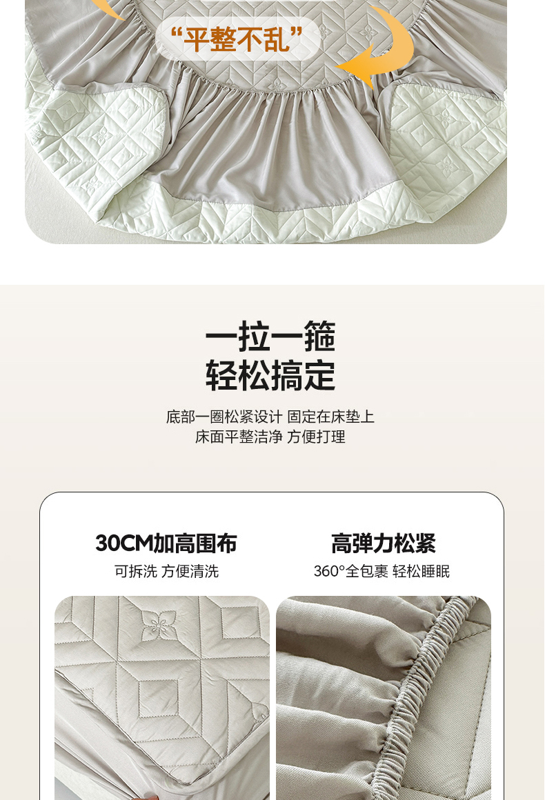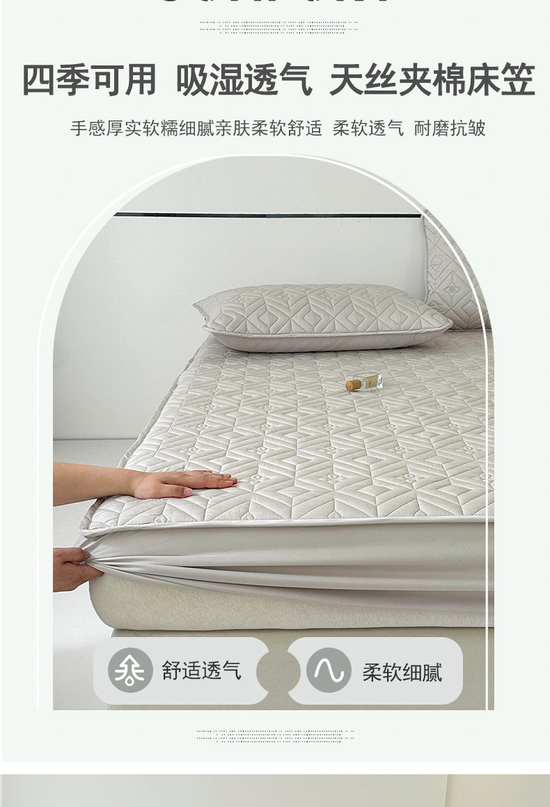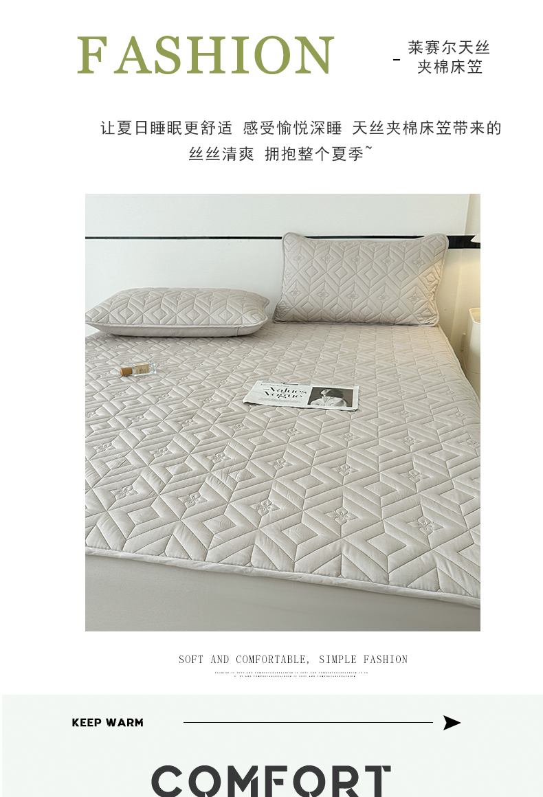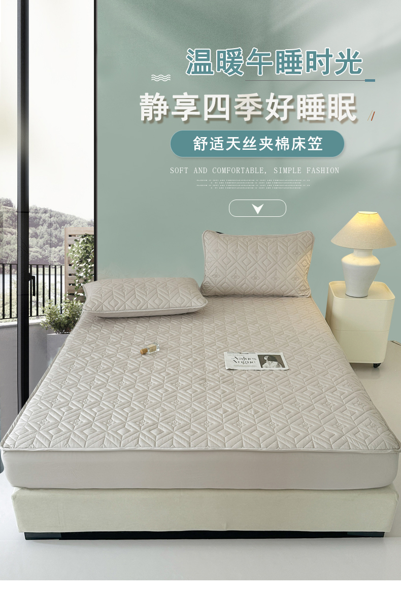 (总)云雀 2025新款舒适莱赛尔天丝夹棉床笠,菱格床笠-豆绿,菱格床笠-豆沙,菱格床笠-浅灰,菱格床笠-玉粉