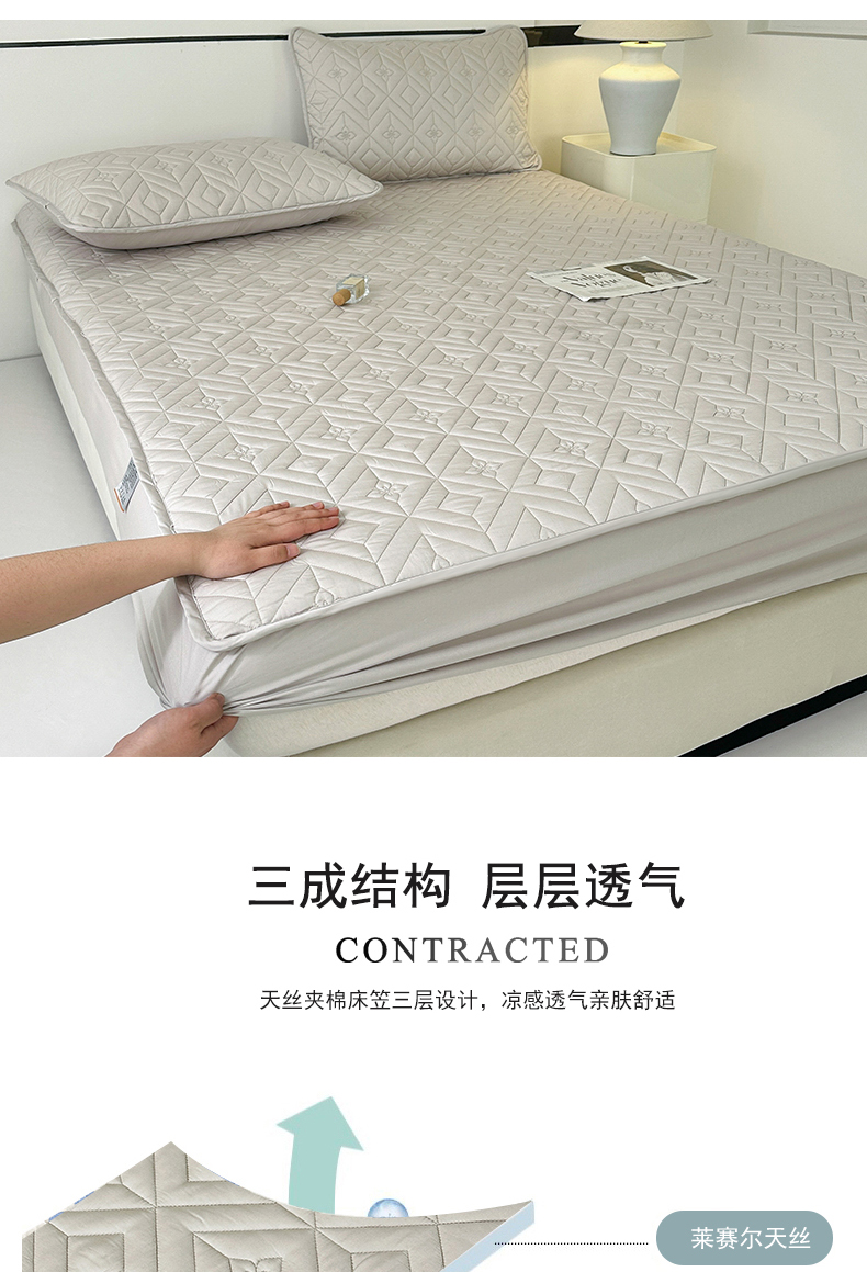 商品名称:云雀 2025新款舒适莱赛尔天丝夹棉床笠 菱格床笠-浅灰