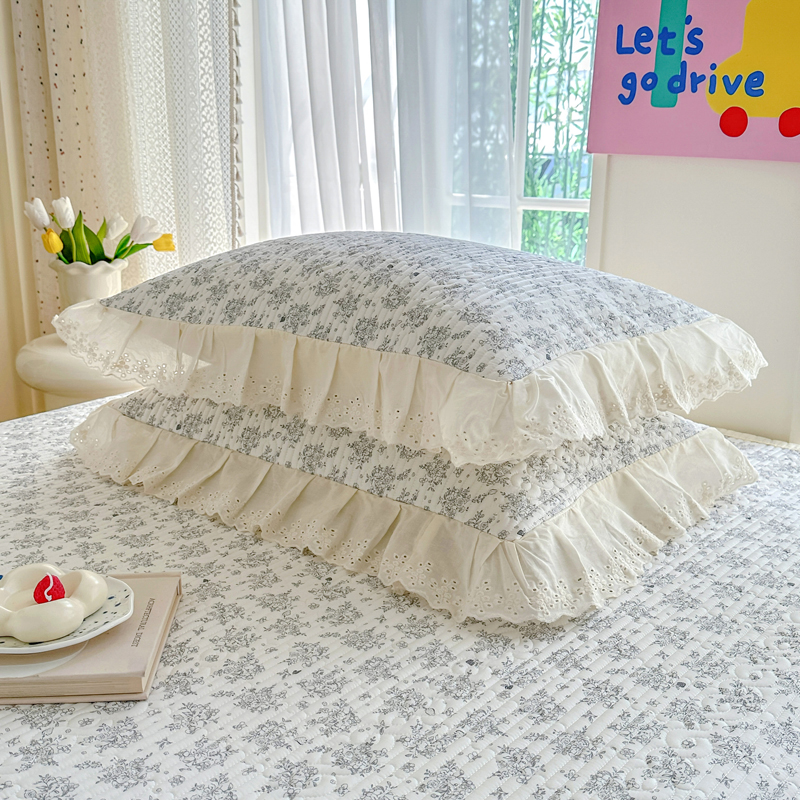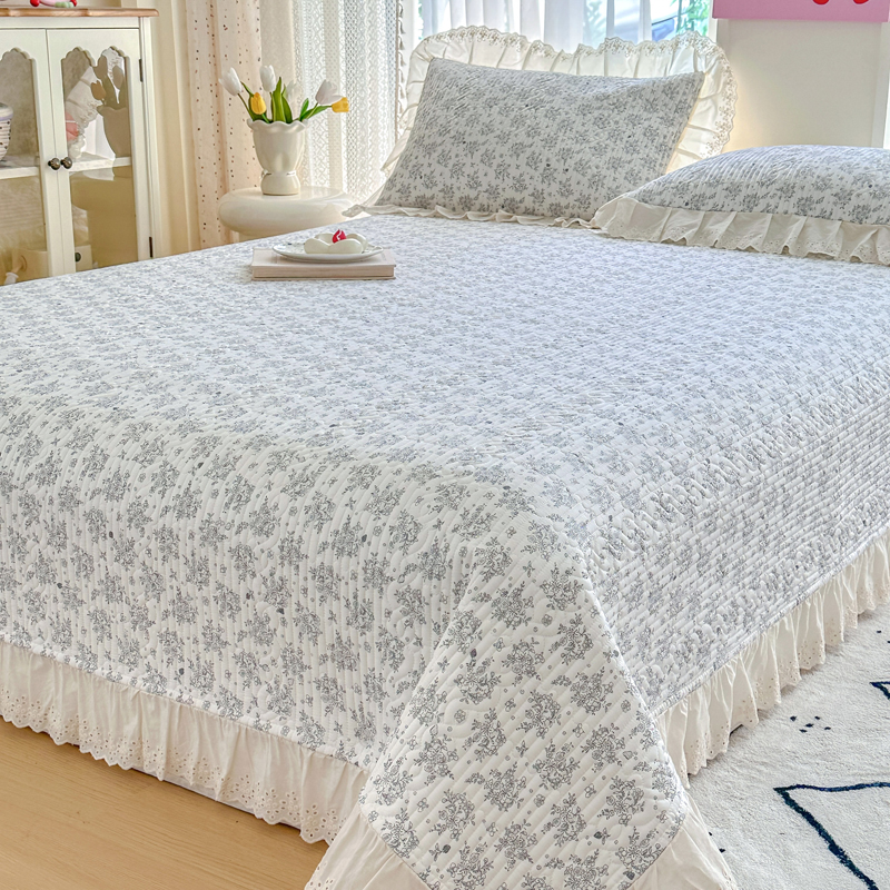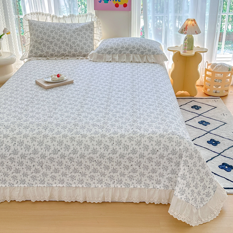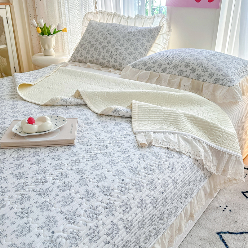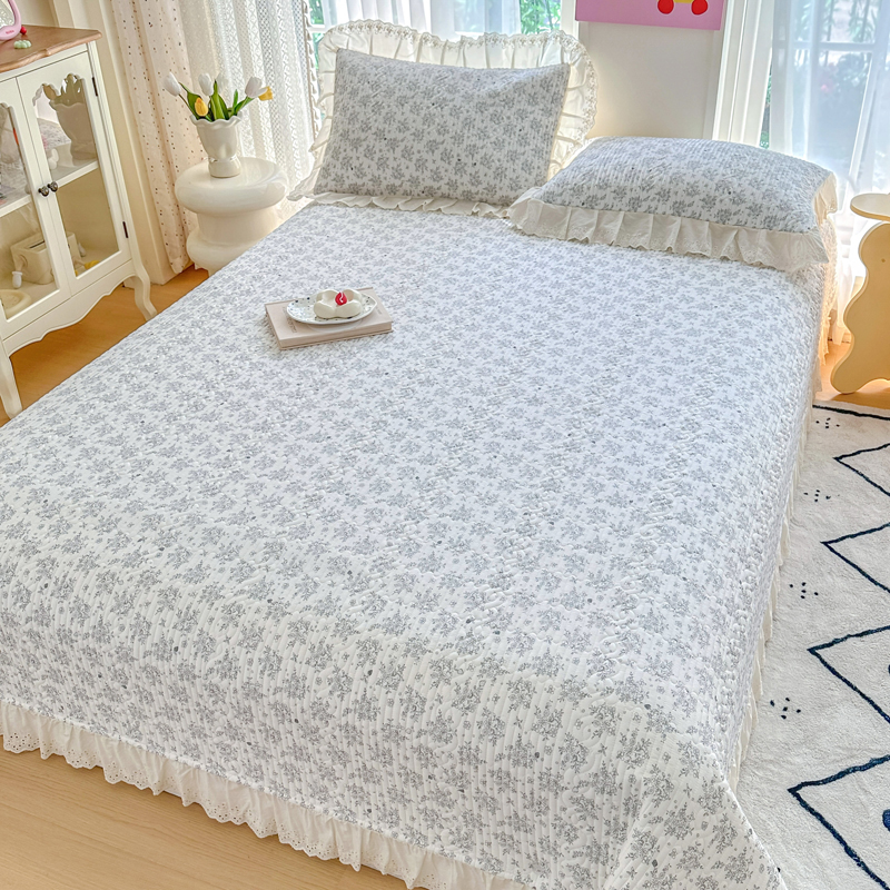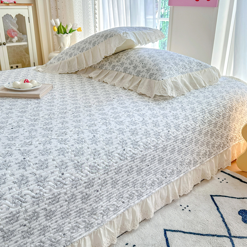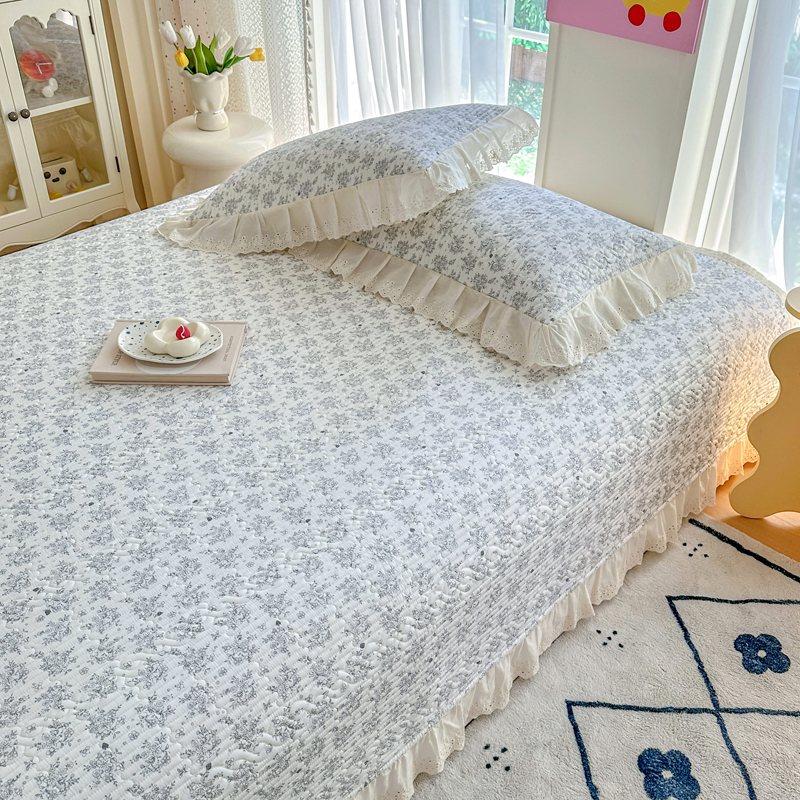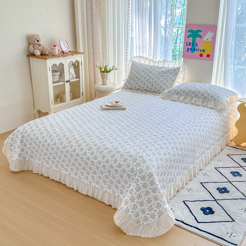 (总)岚吉 2025新款莫代尔纯色小花边床盖三件套,白桃粉,海风蓝,皓月黄,奶油绿,天青色,珍珠灰