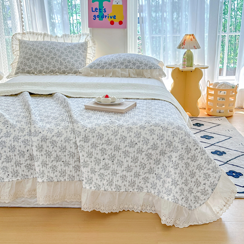 • 91家纺网 家纺一手货源 找家纺 (总)岚吉 2025新款莫代尔纯色小花边床盖三件套,白桃粉,海风蓝,皓月黄,奶油绿,天青色,珍珠灰