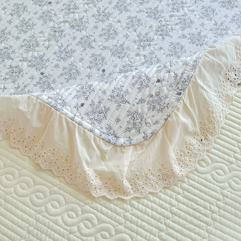 (总)岚吉家纺 2025新款全棉绗缝棉花床盖花边款三件套四件套,缤纷樱桃,草莓格子,花边兔,黄苏条,蓝美人,落落晨光,萌萌狮,蘑菇狗,秋日玫瑰,兔菲菲,向晚,小黑点点(米),游花间