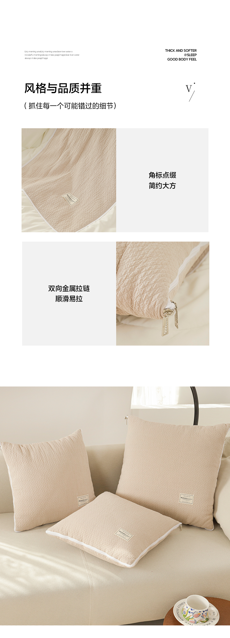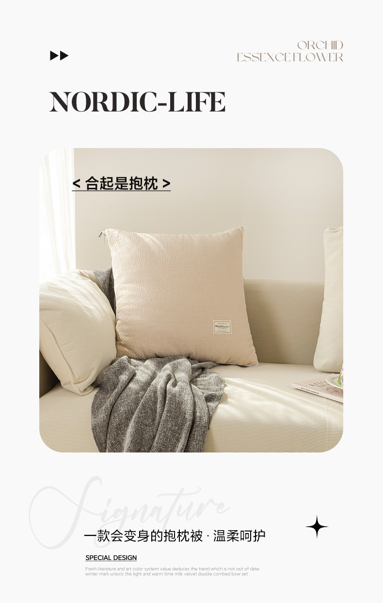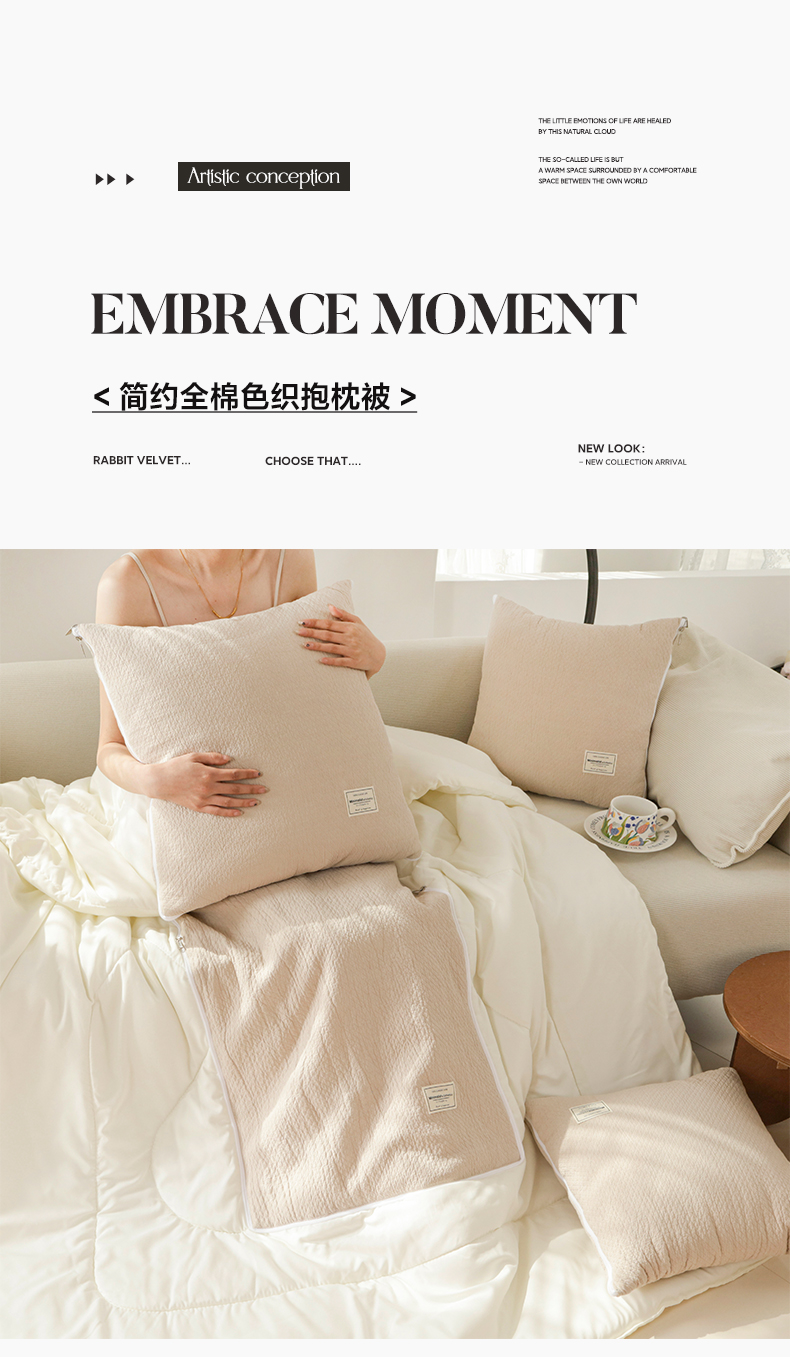 商品名称:番茄+ 2025新款简约全棉色织抱枕被 摩卡奶咖