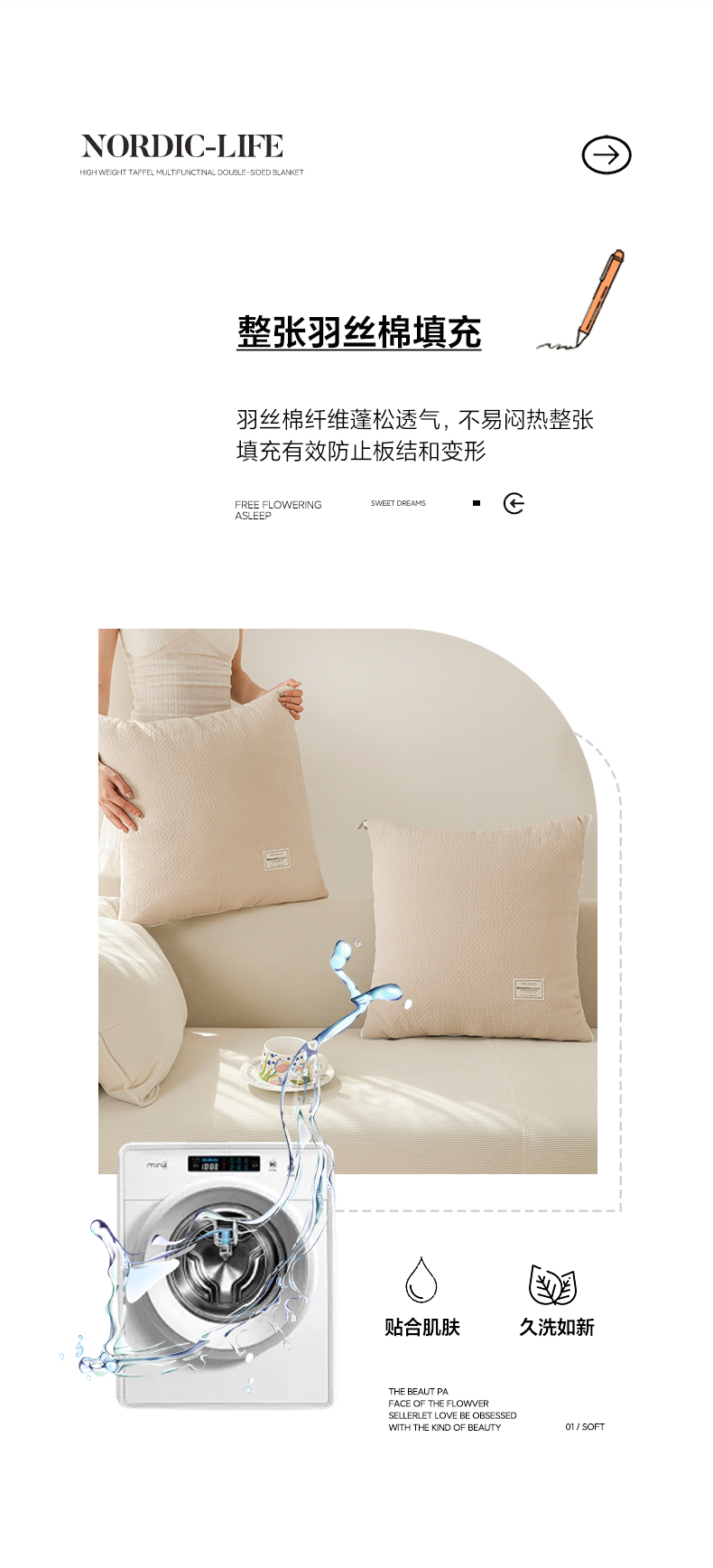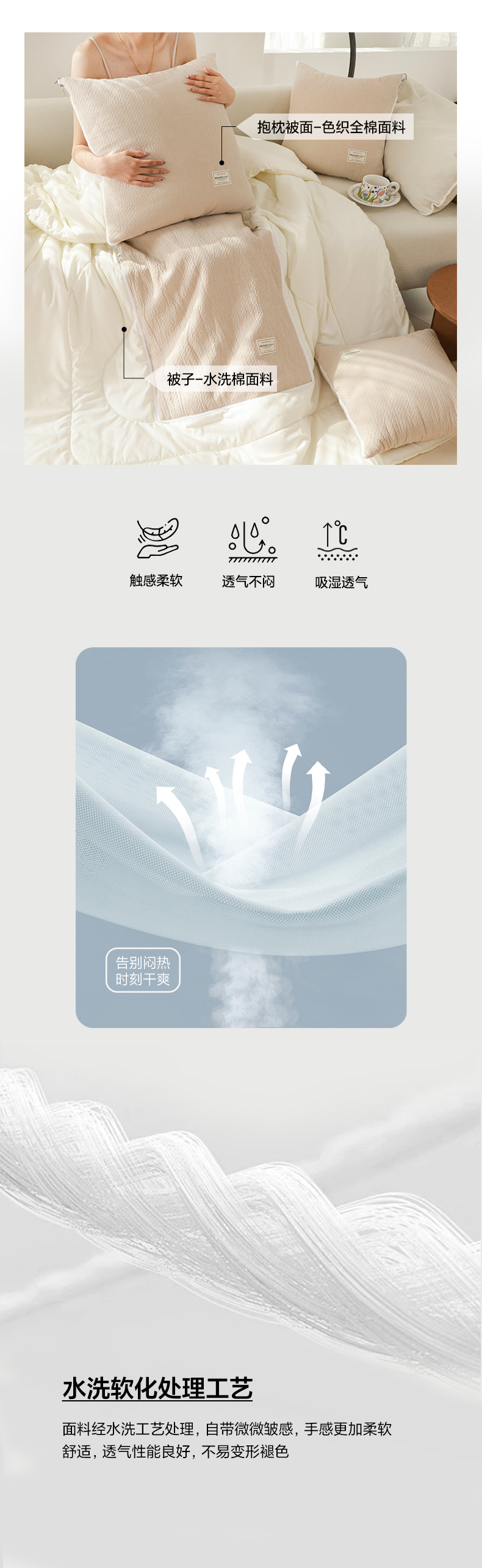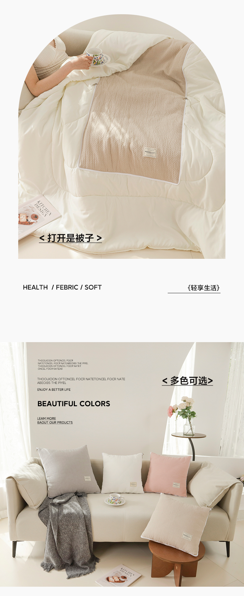 商品名称:番茄+ 2025新款简约全棉色织抱枕被 摩卡奶咖