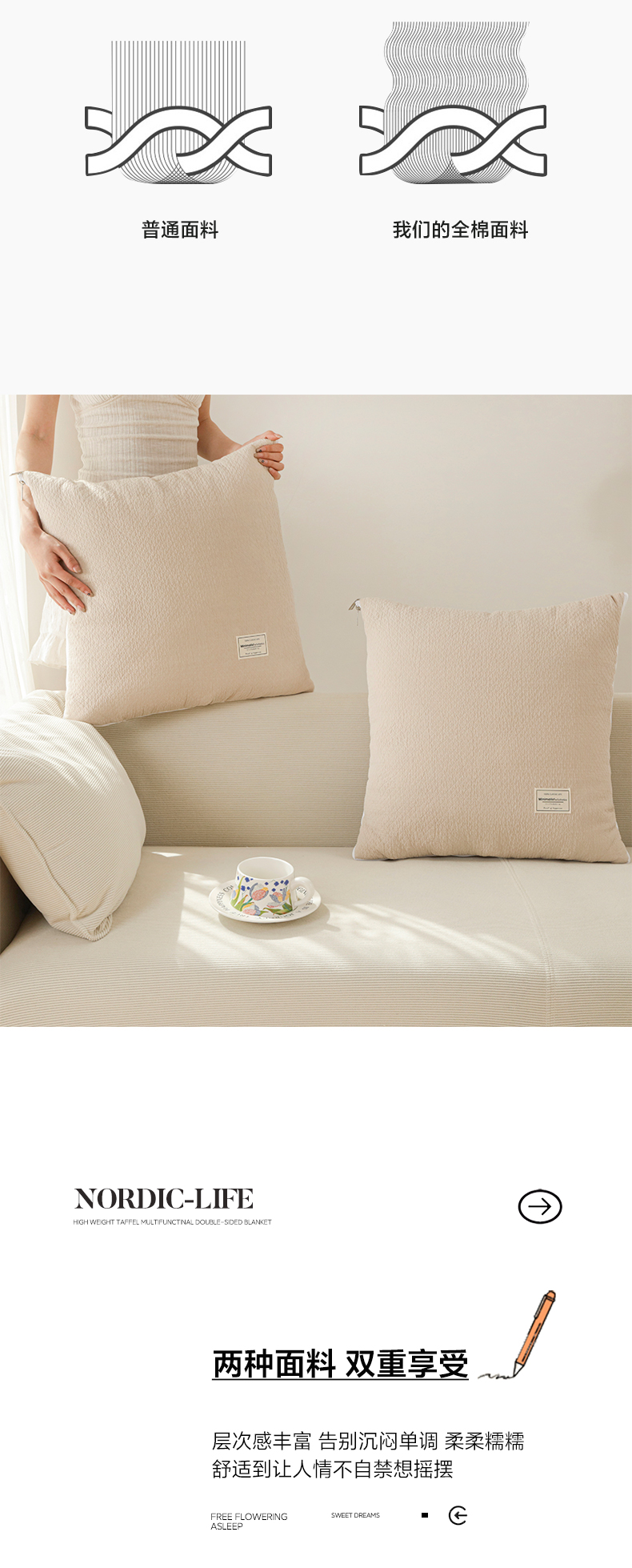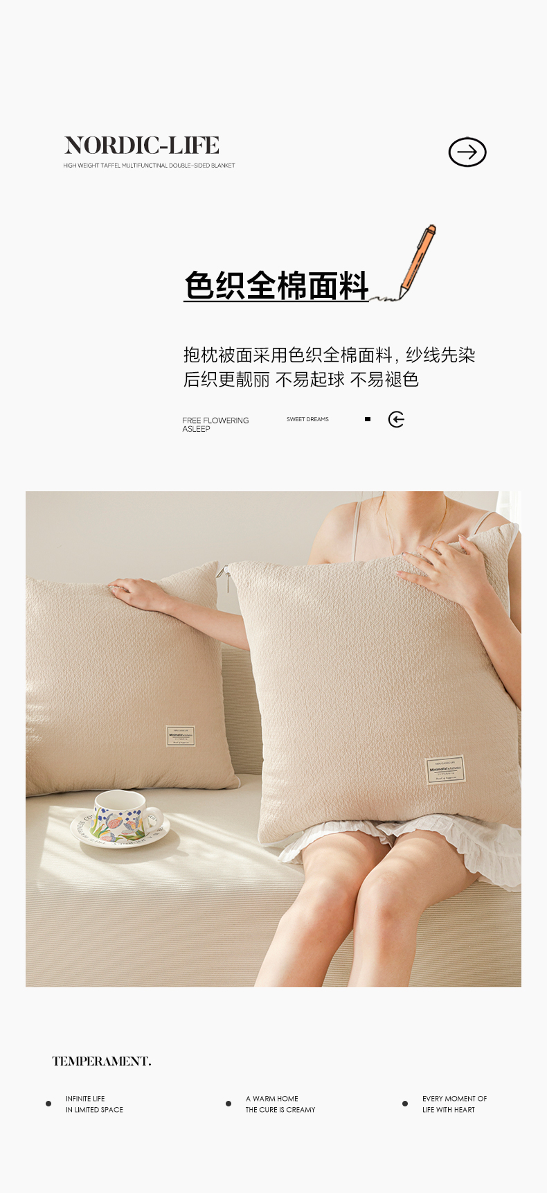 番茄+ 2025新款简约全棉色织抱枕被 摩卡奶咖