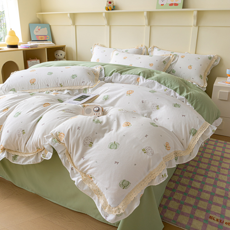 商品名称:南北家居 2025新款A类宝宝棉双层纱系列四件套-花边款 夏日限定