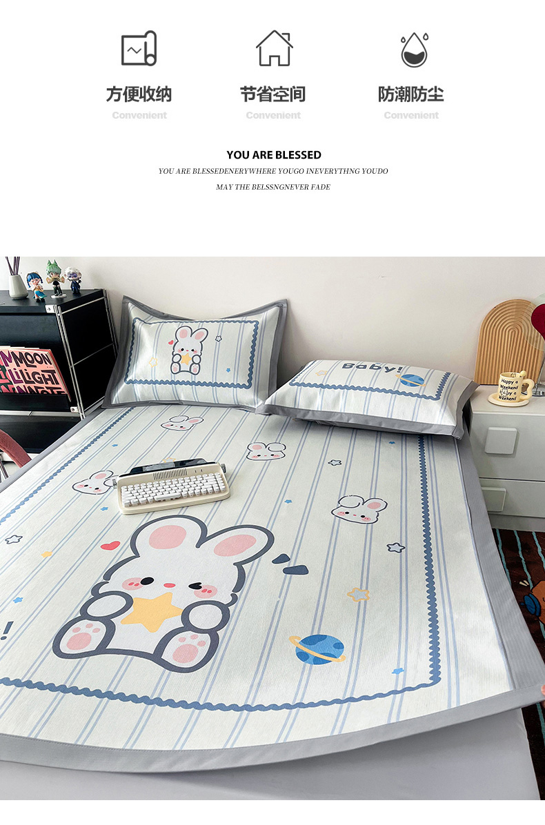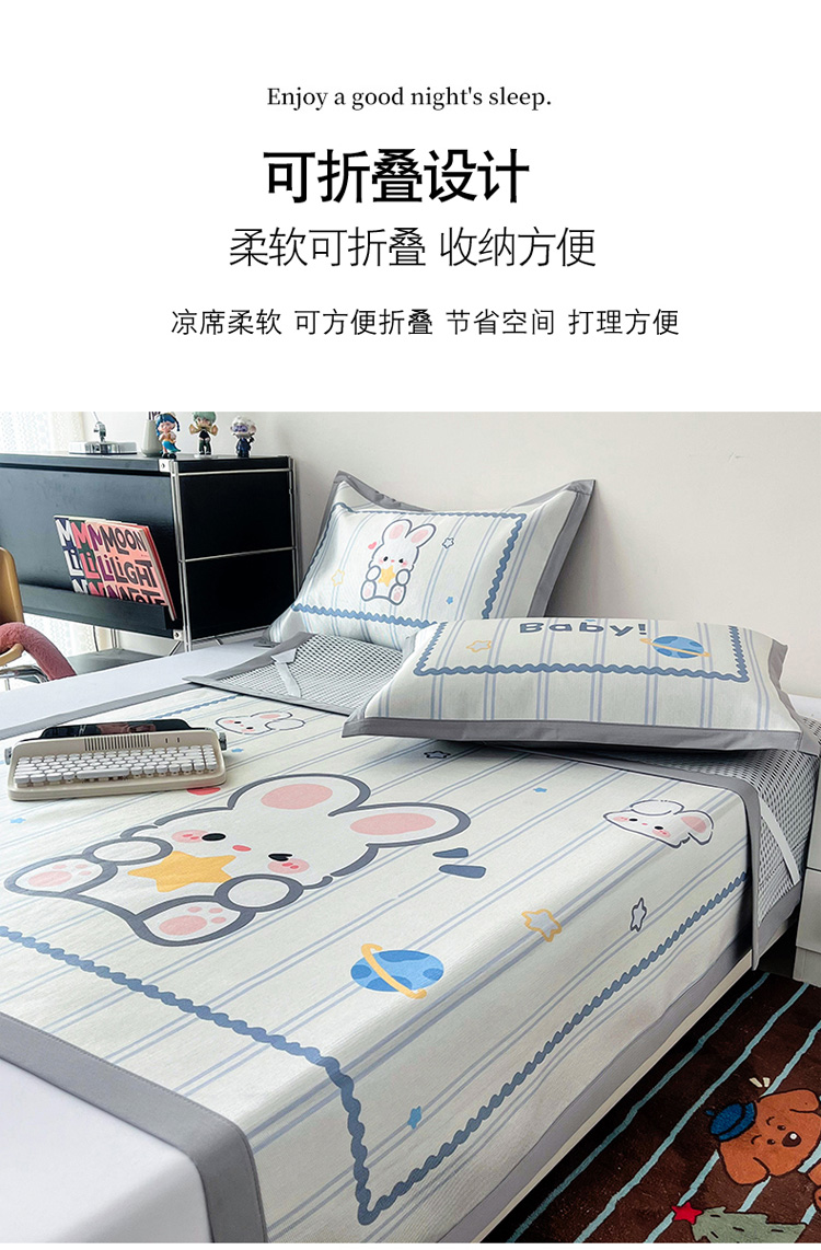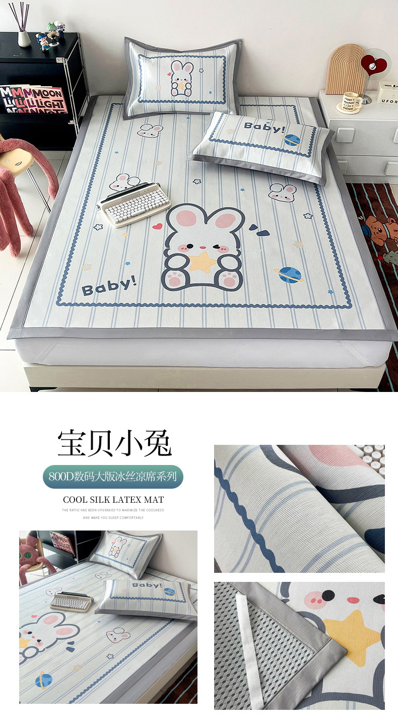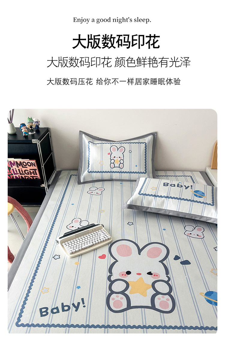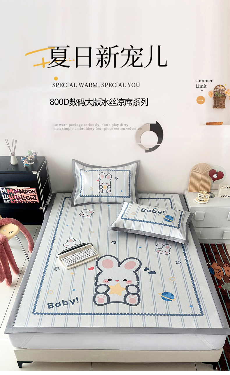 倾慕家纺 800D数码大版冰丝凉席 宝贝小兔