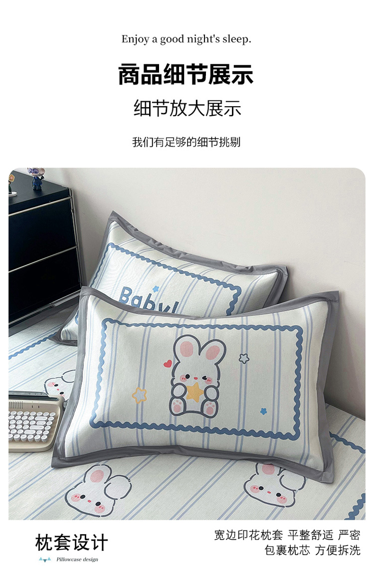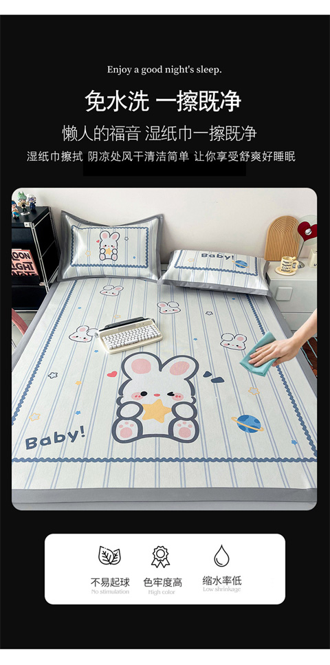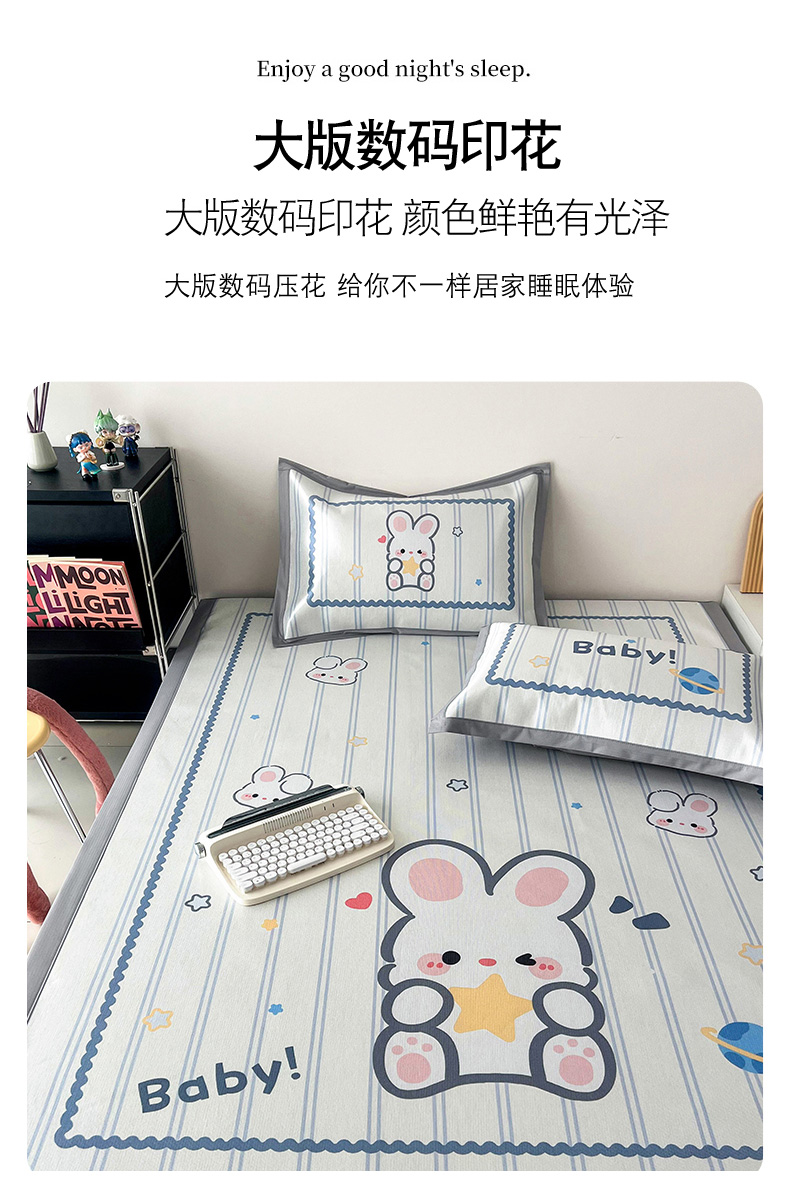 商品名称:倾慕家纺 800D数码大版冰丝凉席 宝贝小兔
