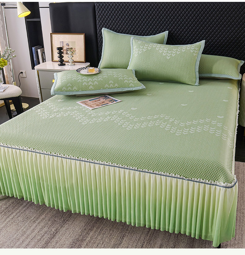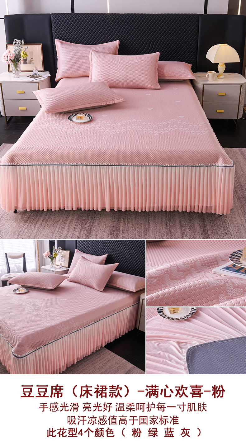 商品名称:尚品凤凰2025新款凉感床裙渐变色豆豆席床裙凉席直角席 凉席席子 爱心床裙 粉色