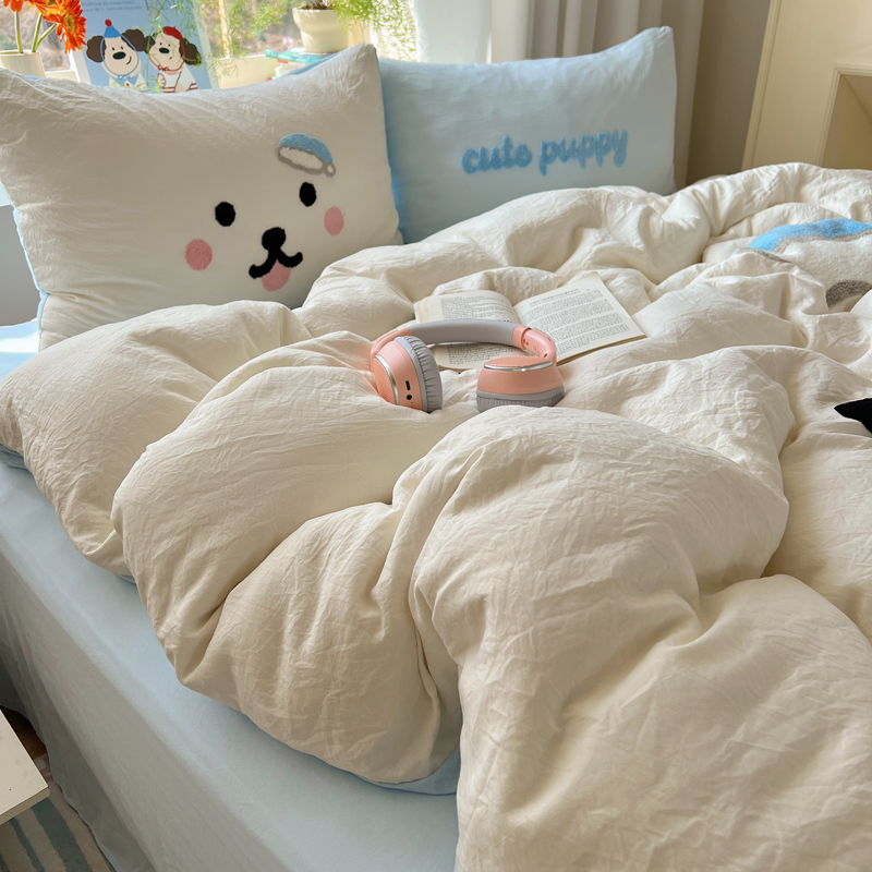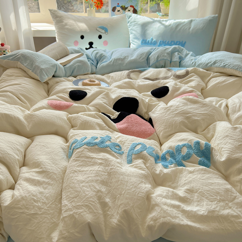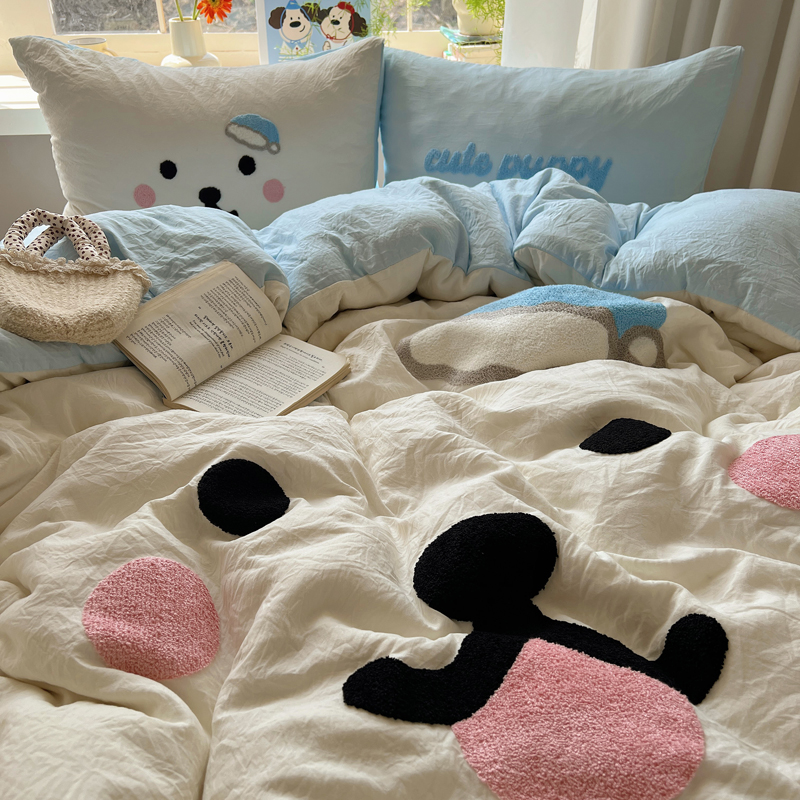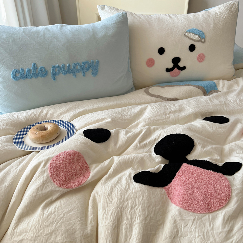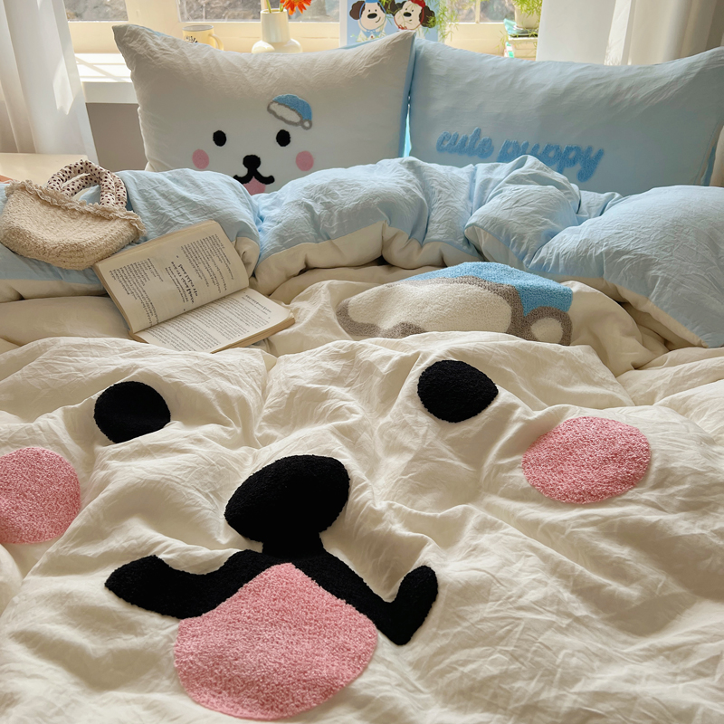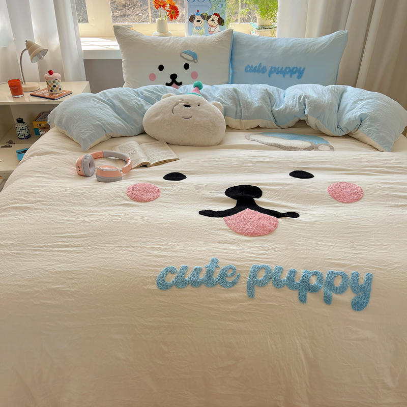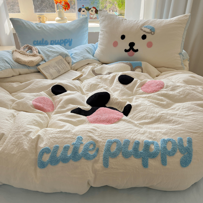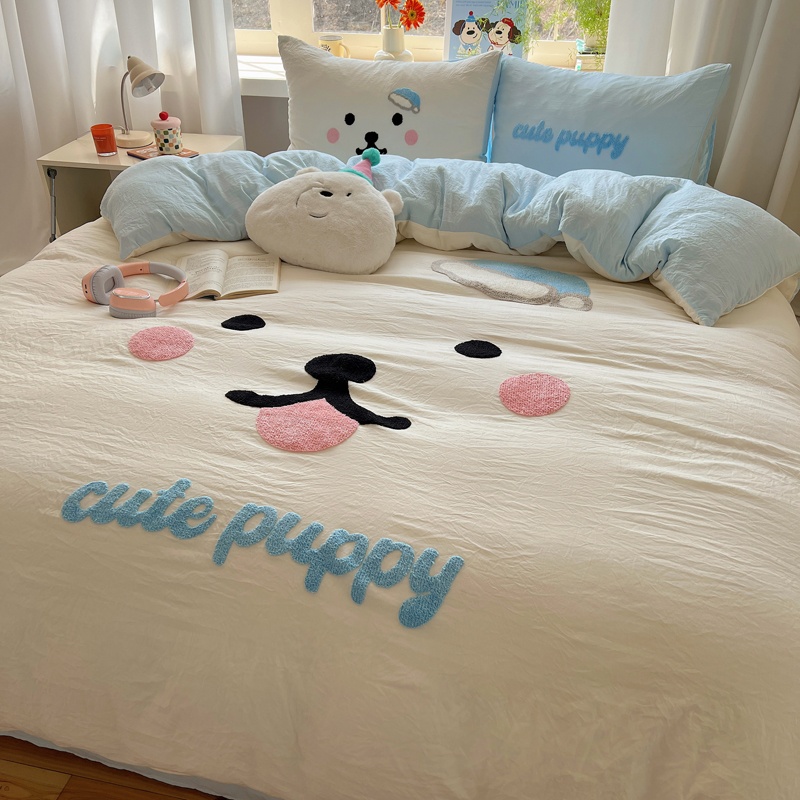 商品名称:顾里家纺 2025新款甜系表情包云朵棉毛巾绣四件套 可爱狗