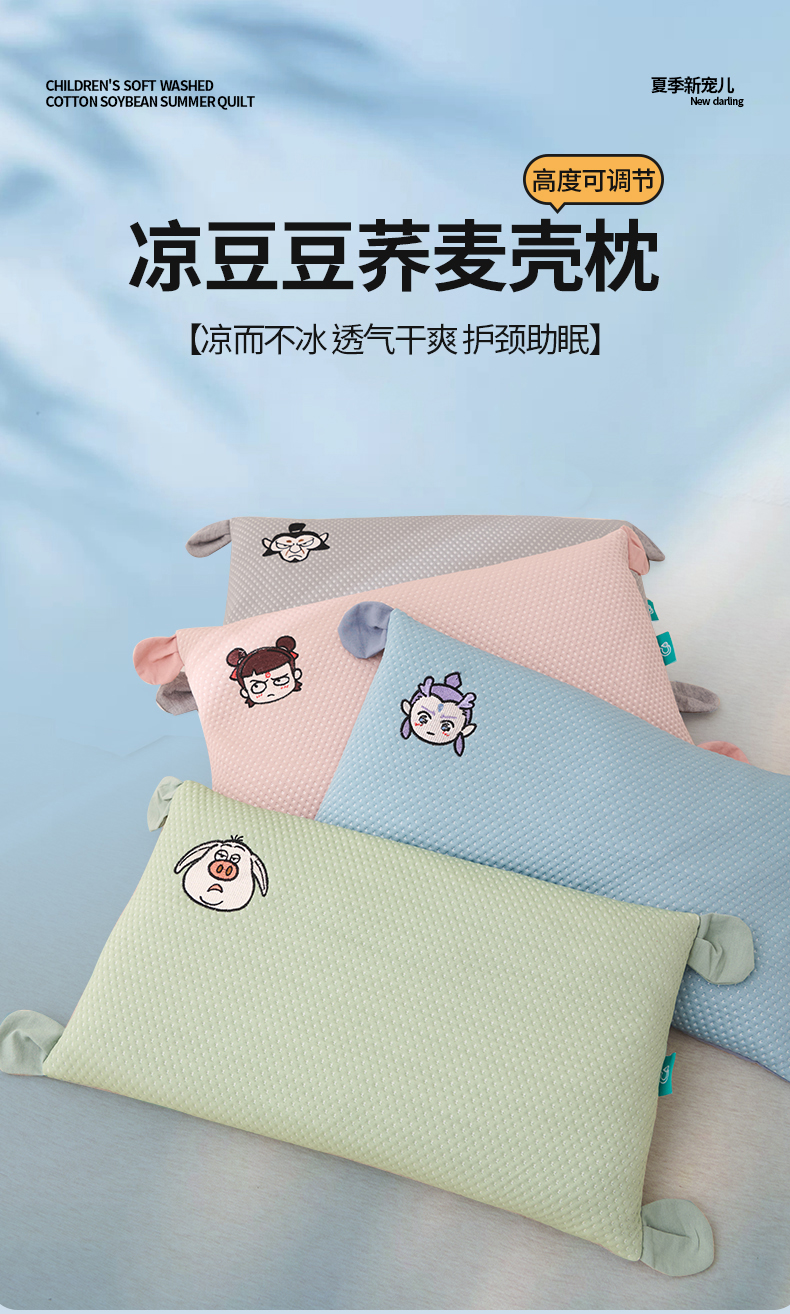 商品名称:(总)芯洲 2025新款儿童学生向夏季凉豆豆荞麦枕卡通可爱Q版枕头枕芯