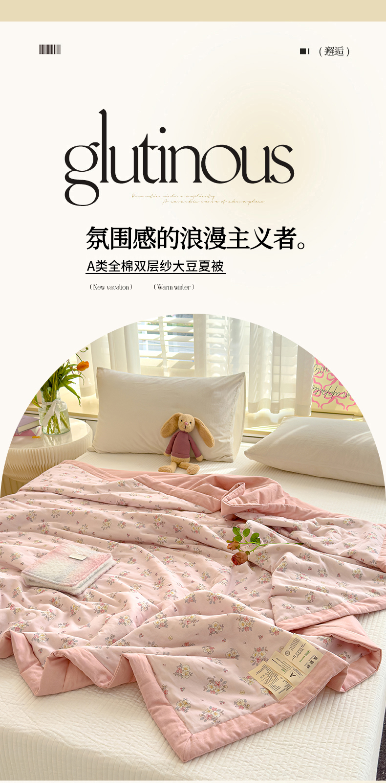 (总)2025新款A类印花泡泡纱大豆夏凉被被子被芯,叠拍图,爱心,蝴蝶结,花间光影,花韵,腊肠狗,七彩南瓜,樱桃,郁金香