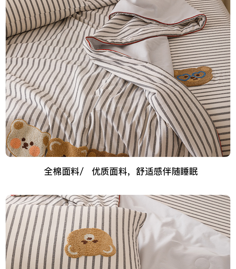 商品名称:卡姿家纺 2025新款色织水洗棉毛巾绣夏被夏凉被空调被 夏被黑白条纹