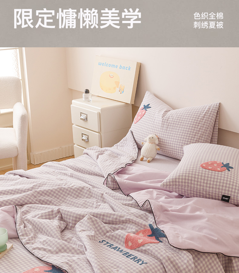 (总)卡姿家纺 2025新款色织水洗棉毛巾绣夏被夏凉被空调被,夏被粉小格,夏被黑白条纹,夏被红蓝小格,夏被紫小格