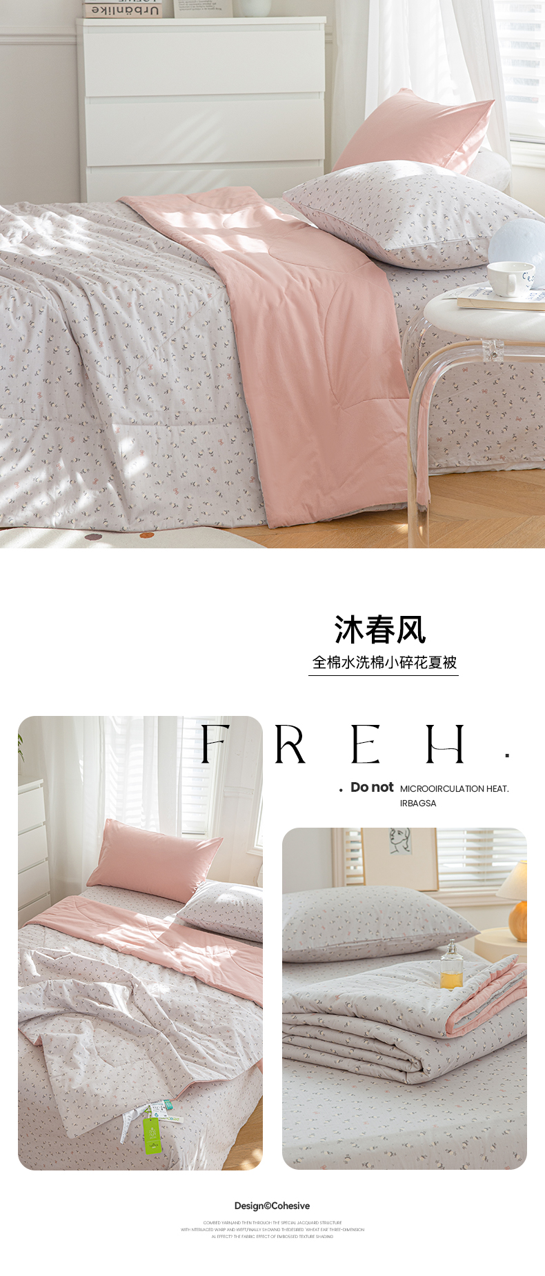 绫韵家纺 2025夏季全棉水洗棉混搭小碎花田园风夏被纯棉空调被套件系列 沐春风